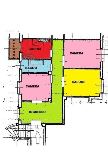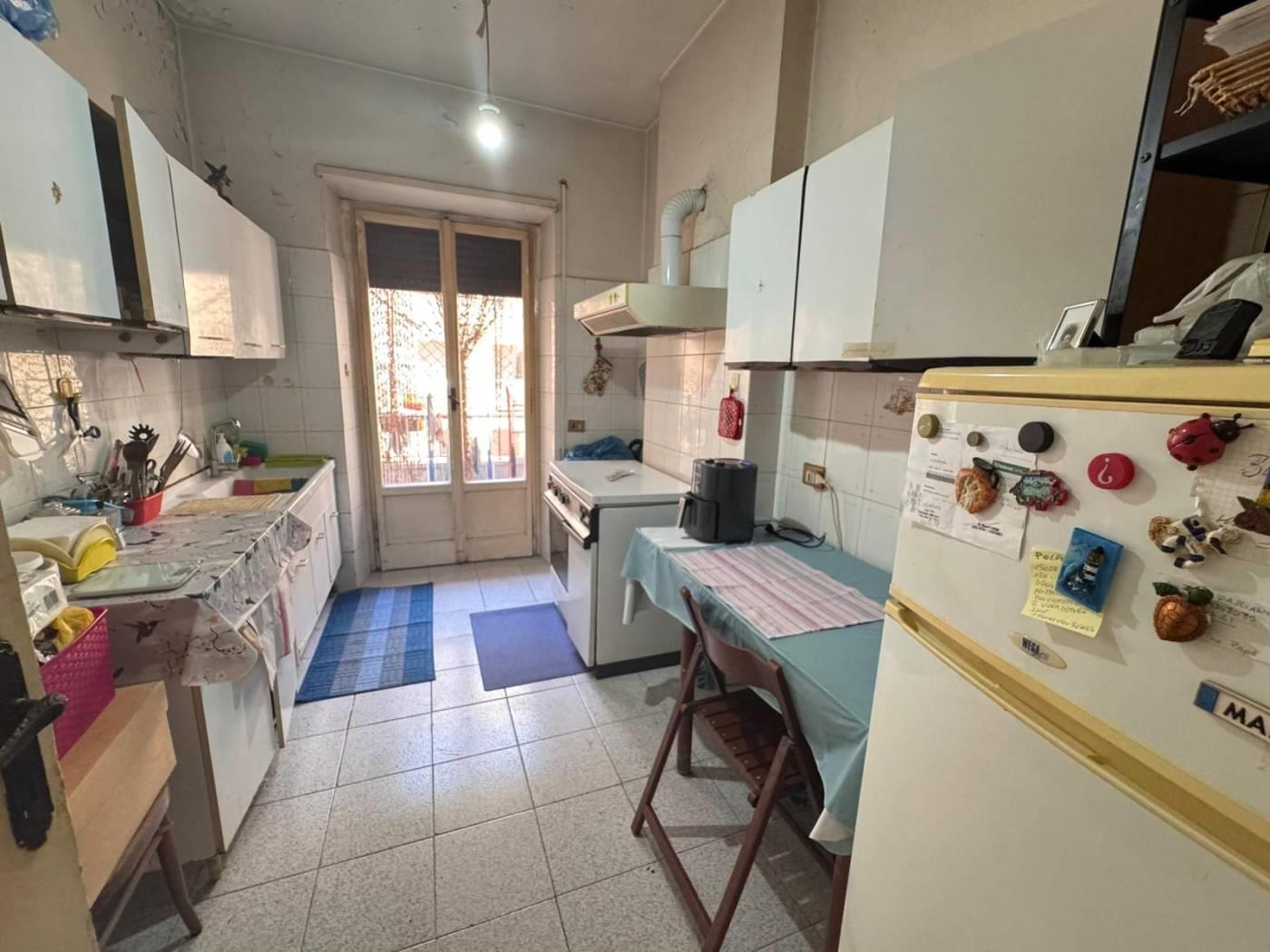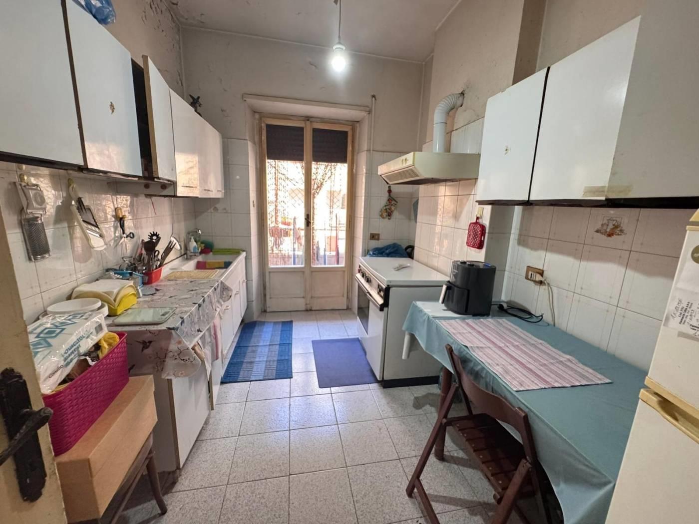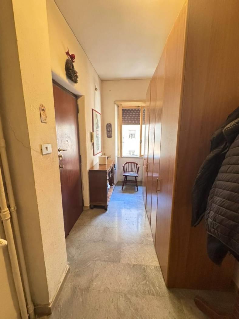 L'appartamento, attualmente da ristrutturare, offre grandi potenzialità di trasformazione grazie agli spazi generosi e ben distribuiti: un ampio ingresso con finestra introduce a un corridoio che conduce al salone luminoso, alla cucina abitabile con uscita sul balcone e a due spaziose camere matrimoniali.