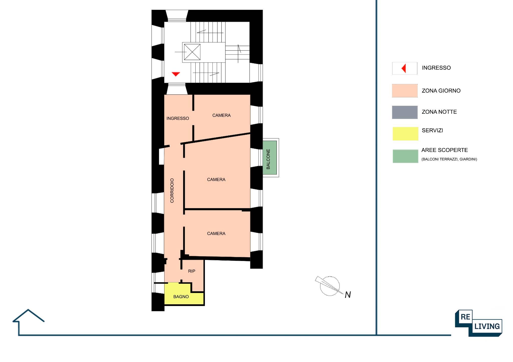 L’appartamento è attualmente utilizzato come studio professionale pur trattandosi di un immobile a destinazione residenziale, e risulta così suddiviso: ingresso, ampio corridoio completo di armadiature fisse, tre camere di cui una molto ampia con finestra e balcone, ripostiglio e bagno finestrato.