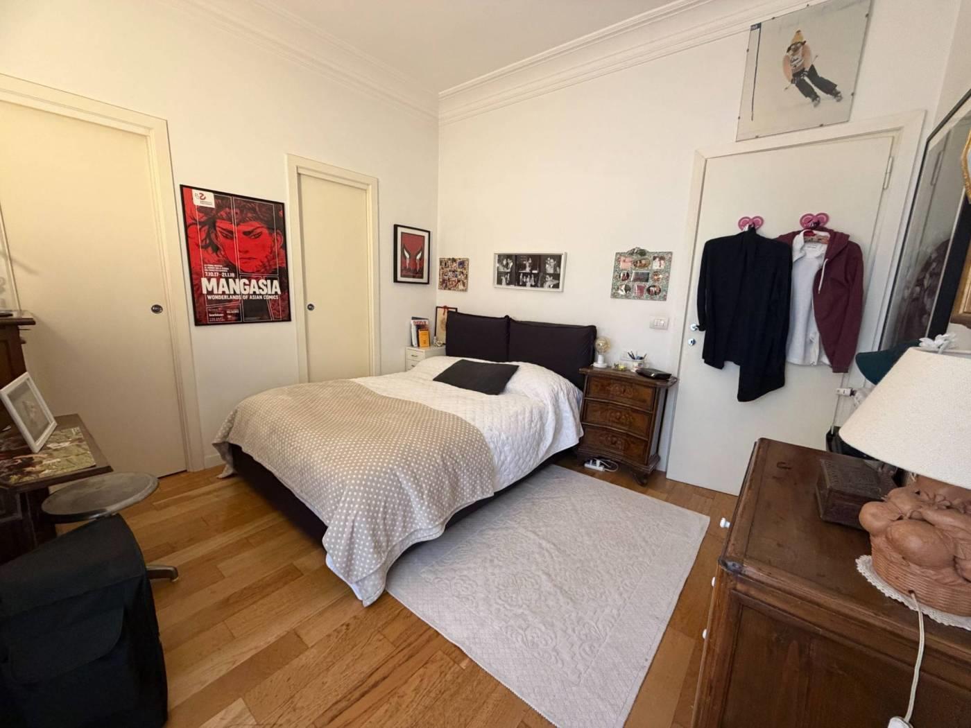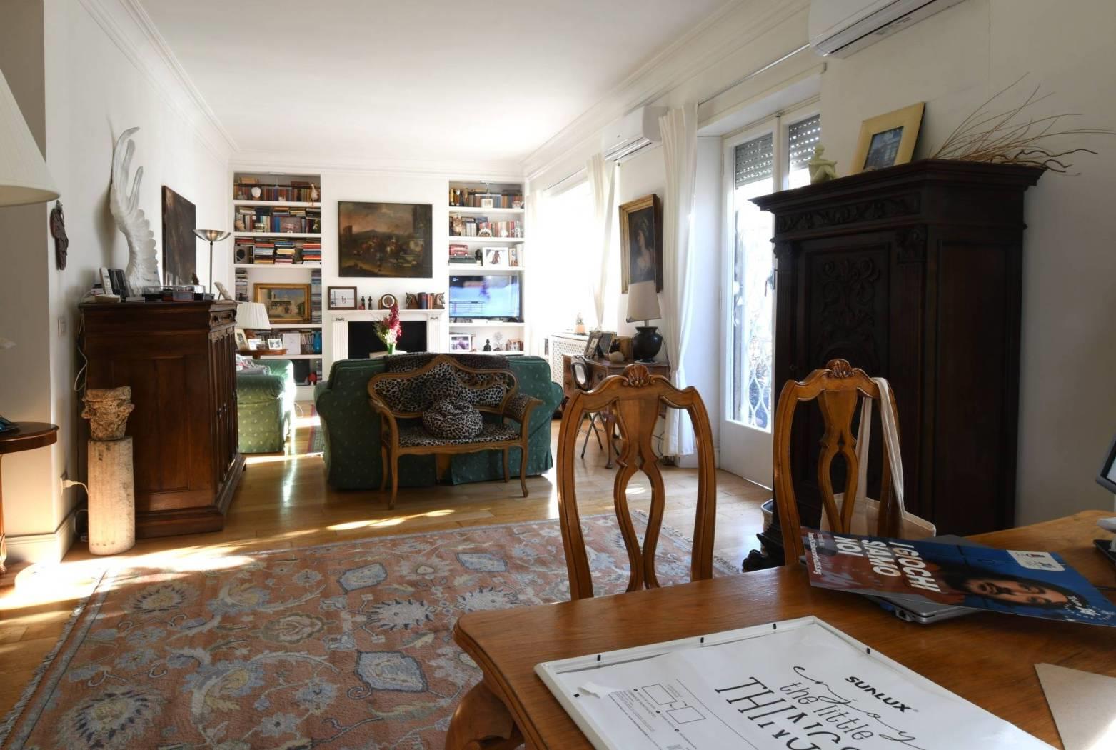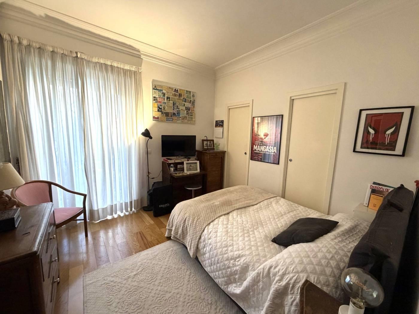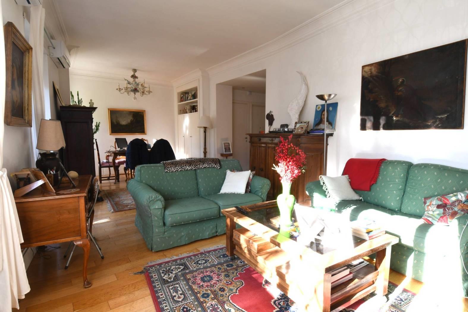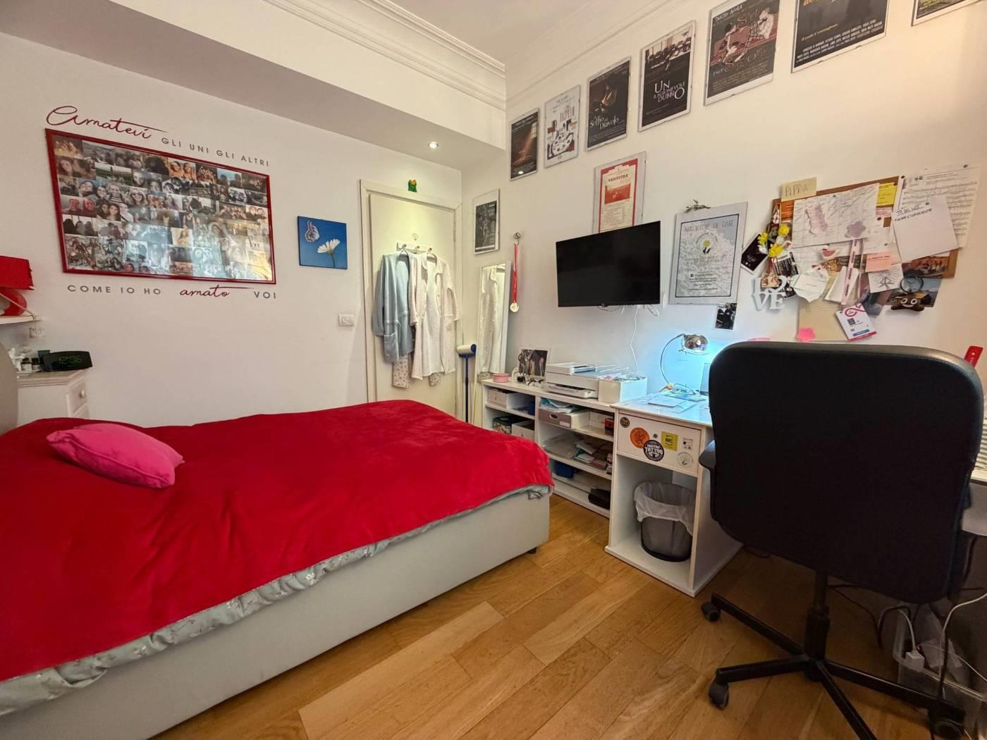 l'immobile e'composto da ampio ingresso che affaccia sul salone doppio, cucina abitabile e balcone/terrazzo, disimpegno tre camere da letto servite da doppi servizi, oltre cameretta con ulteriore bagno dedicato e due balconi. e' compresa nelle parti condominiali l'autorimessa comune che prevede il posto auto 9 mesi l'anno. completa la proprieta la soffitta sita al piano 5.