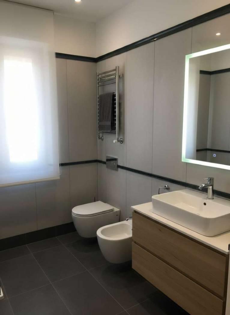 Dall’ampio corridoio con armadiatura a muro, si accede alla zona notte, costituita da tre camere da letto con balcone, due bagni e possibilità di realizzare una quarta camera.