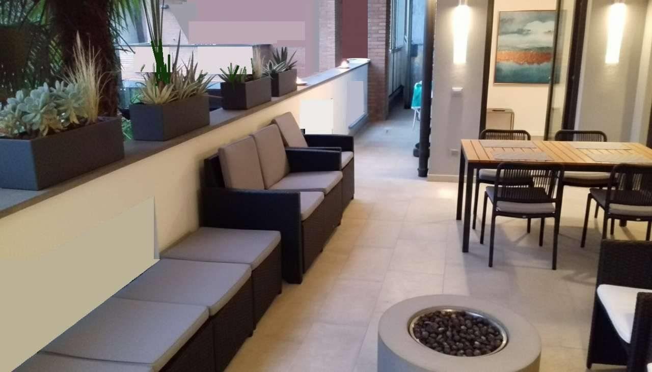 La zona giorno è costituita da un salone doppio, una zona pranzo con affaccio su un grande balcone terrazzato, cucina abitabile con tinello e balcone, camera e bagno di servizio.