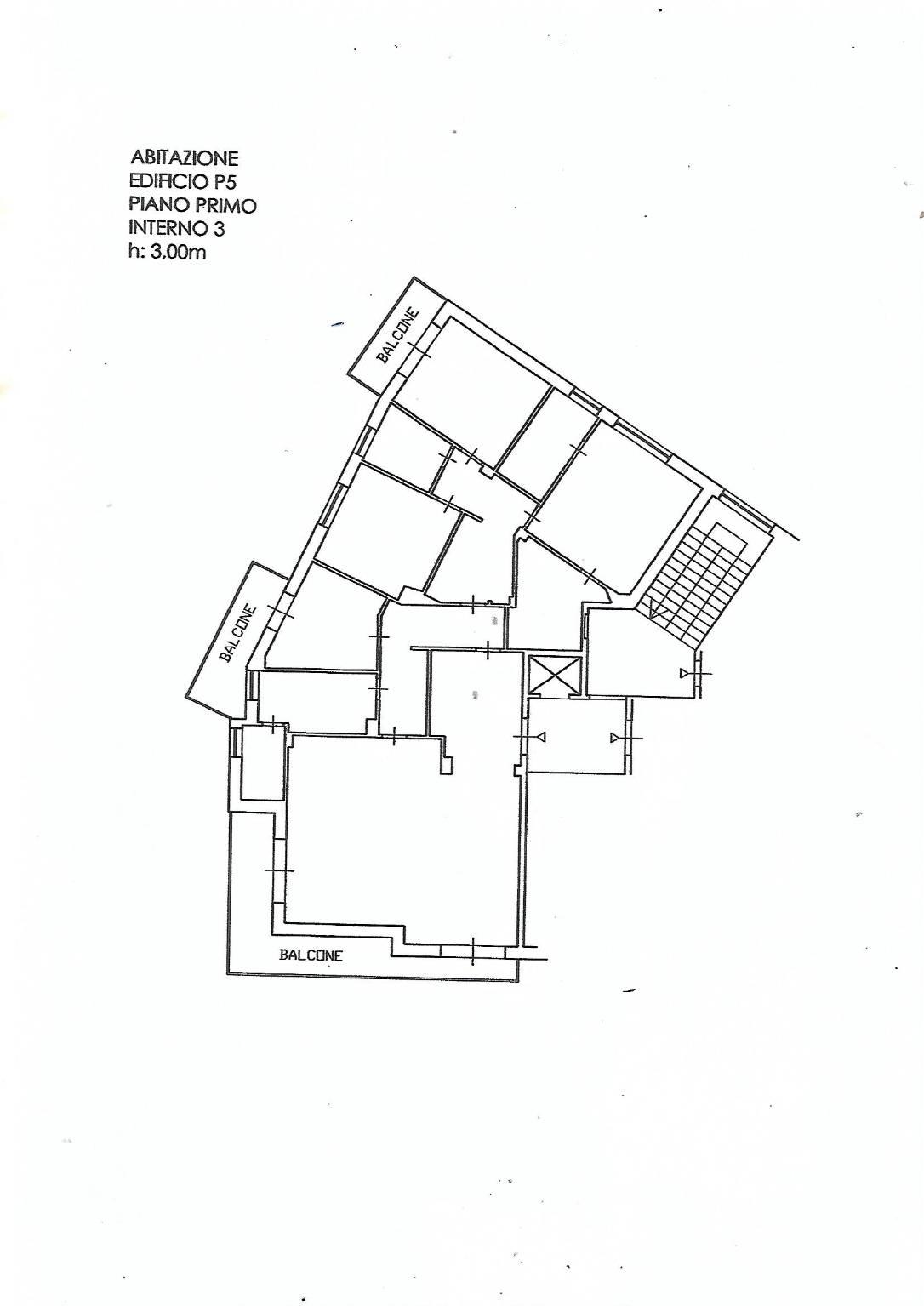 L’appartamento di circa 190 mq + balconi e cantina si trova al piano primo alto con ascensore ed è così composto: ingresso, salone-pranzo con balcone, cucina abitabile con balcone, cameretta e bagnetto servizio, tre camere da letto ( una con balcone), due bagni, una cabina armadio.