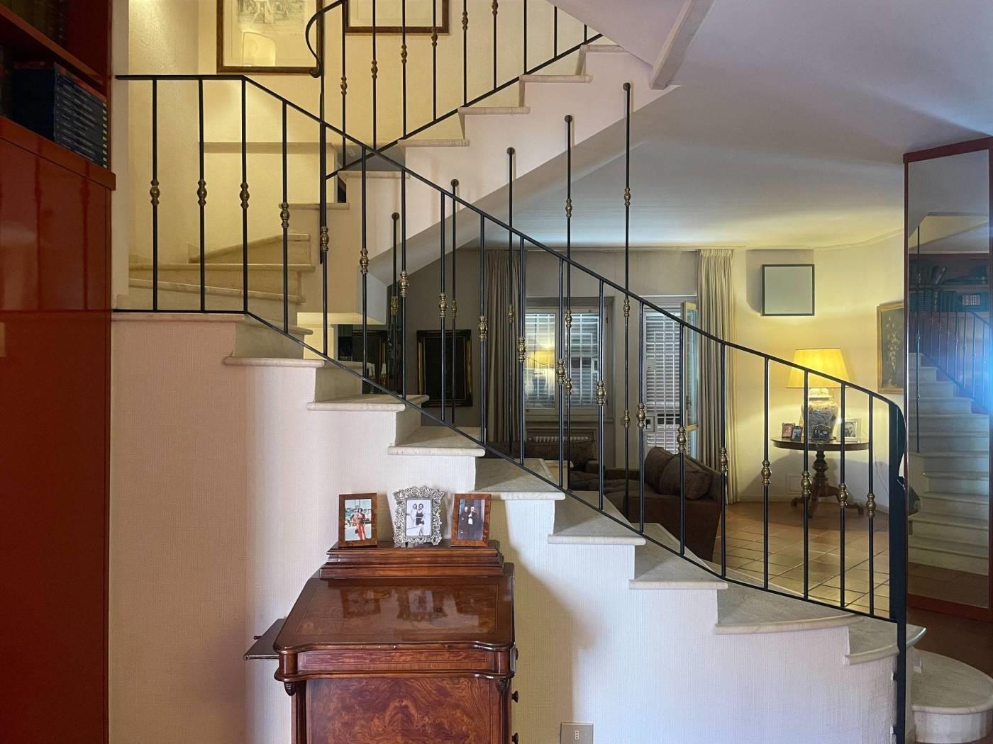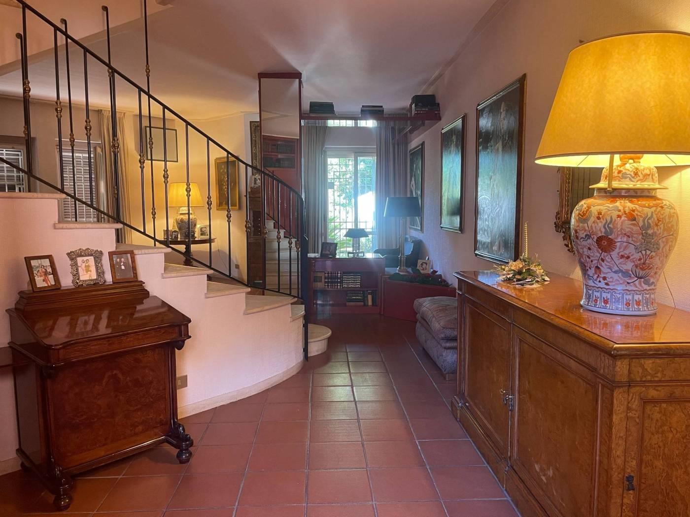 Via Leonida Reich- adiacenza viale Kant - In un prestigioso e riservato residence immerso nel verde e nel cuore del quartiere, con i maggiori servizi a pochi passi, la vicinanza alle metro Rebibbia e Ponte Mammolo, proponiamo in vendita una signorile ed elegante villa che si sviluppa su quattro livelli con doppio ingresso, sia dal comprensorio che indipendente. Si accede all'appartamento dal piano terra, che si compone come segue : ingresso, ampio salone con camino e accesso ad un primo balcone e giardino, i diversi piani dell'appartamento sono collegati e raggiungibili tramite una scala in muratura con gradini in travertino. La zona giorno dell'immobile trova seguito scendendo al piano seminterrato tramite la scala interna, arrivati al piano troviamo un ampio ripostiglio ricavato nel sottoscala, salone con camino e soggiorno, cucina abitabile, lavanderia e bagno. Da questo piano si accede ad un secondo spazio esterno composto da zona veranda, coperta e pavimentata e salendo pochi gradini si raggiunge un secondo giardino che si collega con il giardino posto al livello superiore. Dallo stesso piano seminterrato si ha accesso diretto all'autorimessa e quindi al posto auto coperto di proprietà. Percorrendo la scala interna, si sale al primo piano dello stabile raggiungendo la zona notte che si articola attorno al pianerottolo di arrivo ed è composta da prima camera matrimoniale con cabina armadio e ampio bagno finestrato, seconda camera matrimoniale con bagno privato anch'esso finestrato e accesso ad un balcone esclusivo; la pavimentazione dell'intero piano, facendo eccezione per quella dei bagni è costituita da parquet. Dal piano primo si raggiunge il piano mansarda che si compone di un'unica sala, attrezzata con armadiature a muro e finestrata. Inoltre l'appartamento presenta riscaldamento autonomo, condizionatori, grate di sicurezza ,porta e persiane blindate. Completa la proprietà un posto auto coperto in autorimessa, in aggiunta possibilità di parcheggio all'interno del consorzio. L'importo annuo del Consorzio Colle dell'Aniene è di 400 €