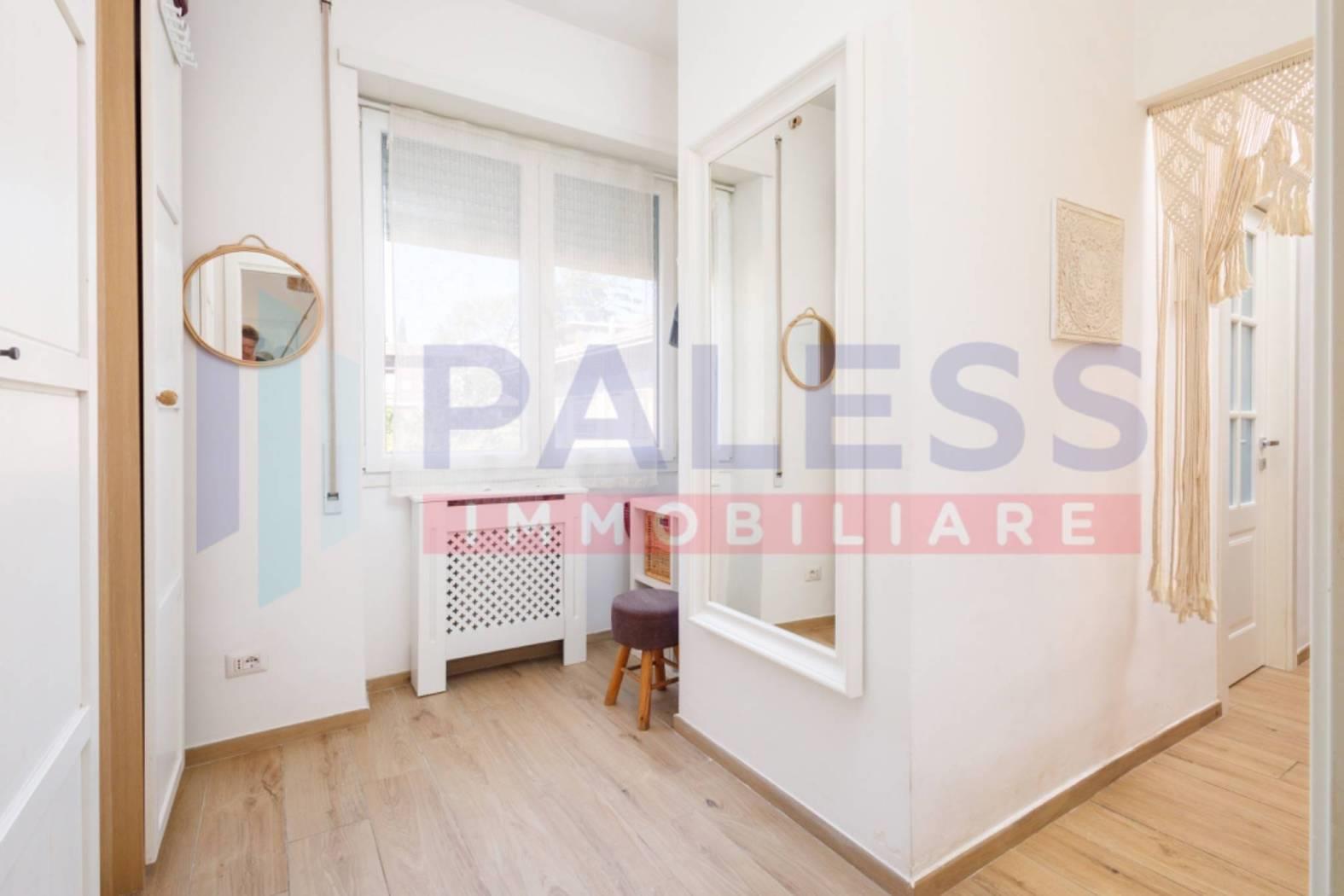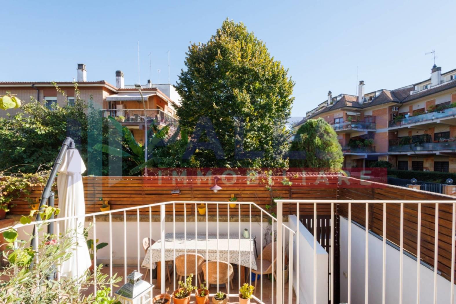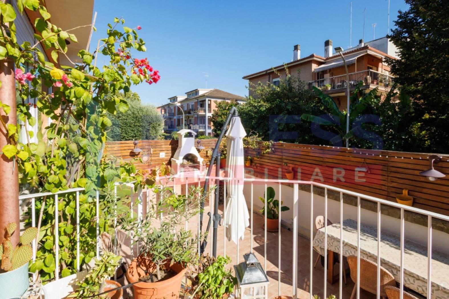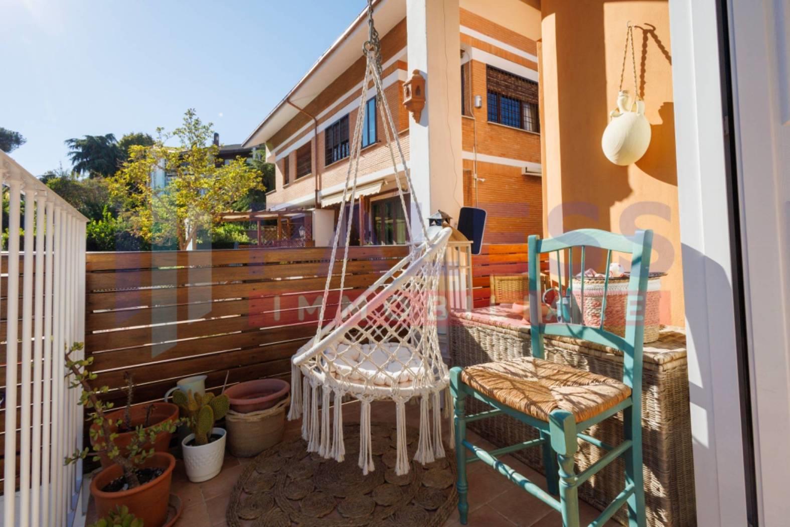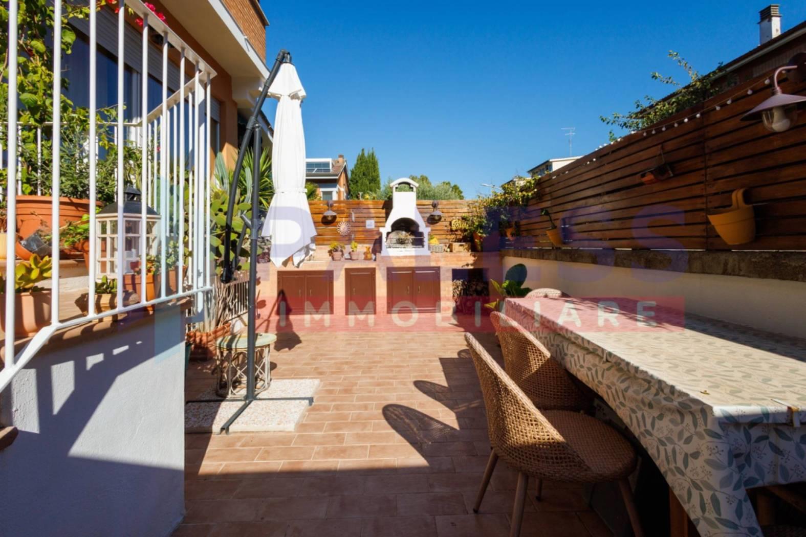 - To short distance from EUR, in an area well-connected to the Cristoforo Colombo highway, the Pontina state road, and Via Ostiense, in the Villaggio Azzurro neighborhood, we offer for sale a beautiful two-level apartment of approximately 150 square meters inside and 35 square meters outside. The recently renovated apartment comprises an entrance hall, a spacious living room, a kitchen with a small balcony, and a staircase leading to the upper floor. The sleeping area is located on the first floor, comprising a large double bedroom, a hallway, a hallway, and a master bathroom. This bedroom's beauty lies in its privacy and the double-exposure windows that capture maximum light. Two additional bedrooms and another bathroom are available on this floor. One of the bedrooms opens onto a small but comfortable balcony. The ground floor also includes a comfortable terrace of approximately 30 square meters with a barbecue. The property enjoys excellent light thanks to its quadruple exposure. The living area, the terrace and the two bedrooms on the upper level have a direct south exposure.