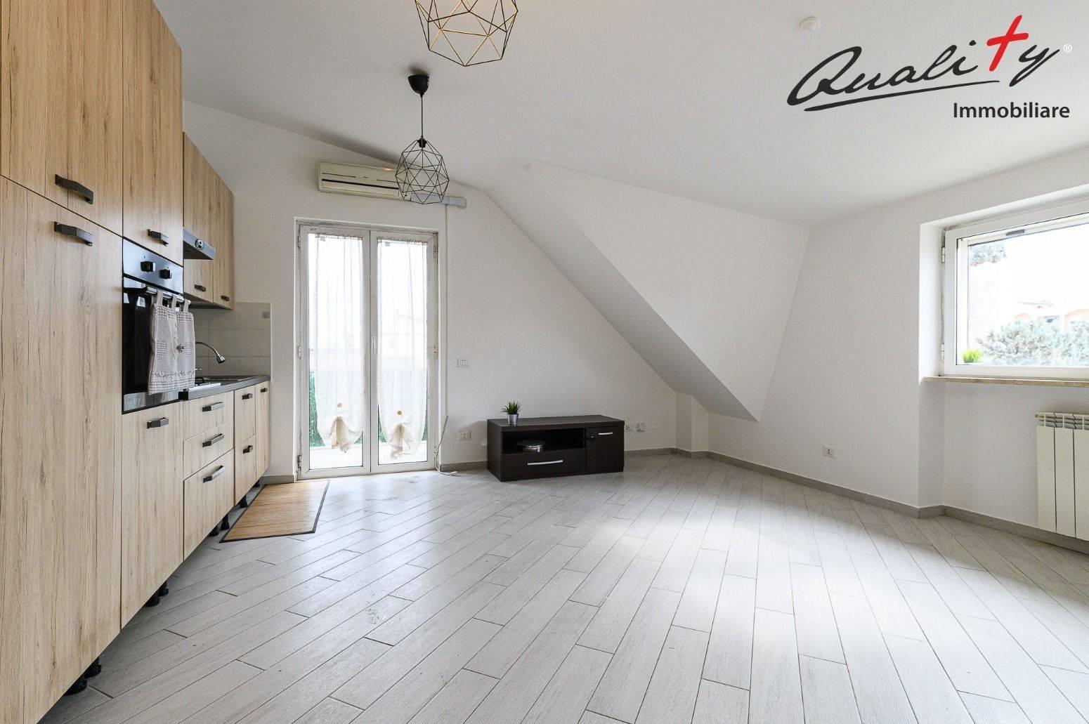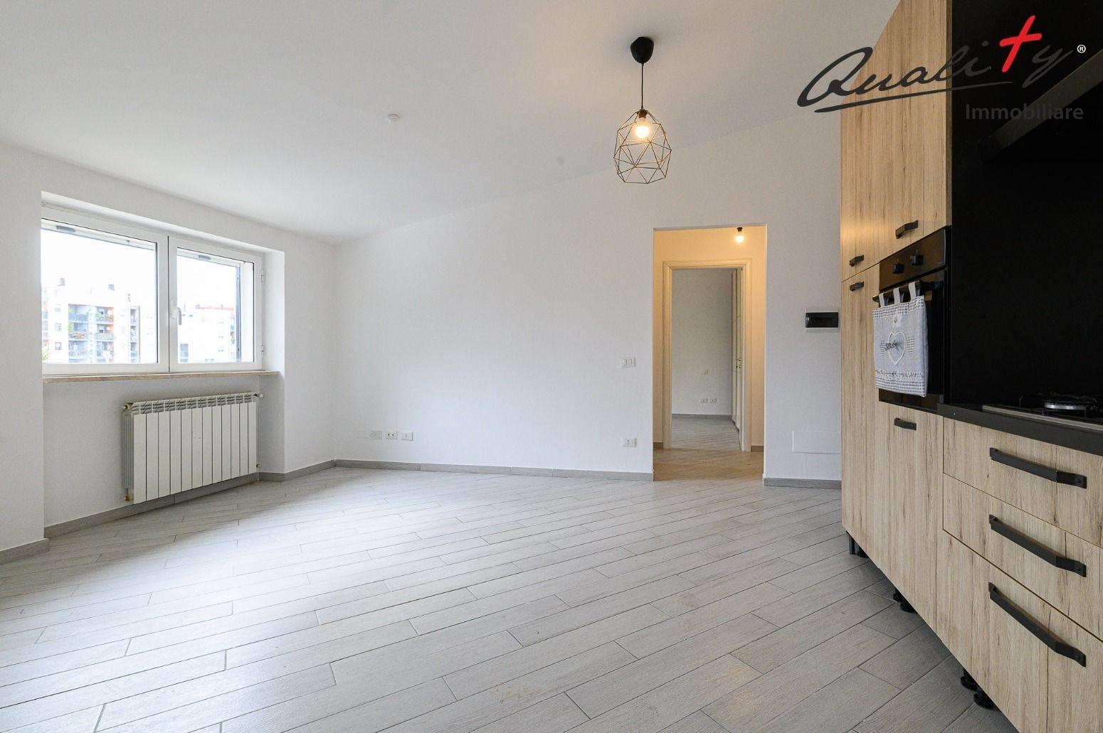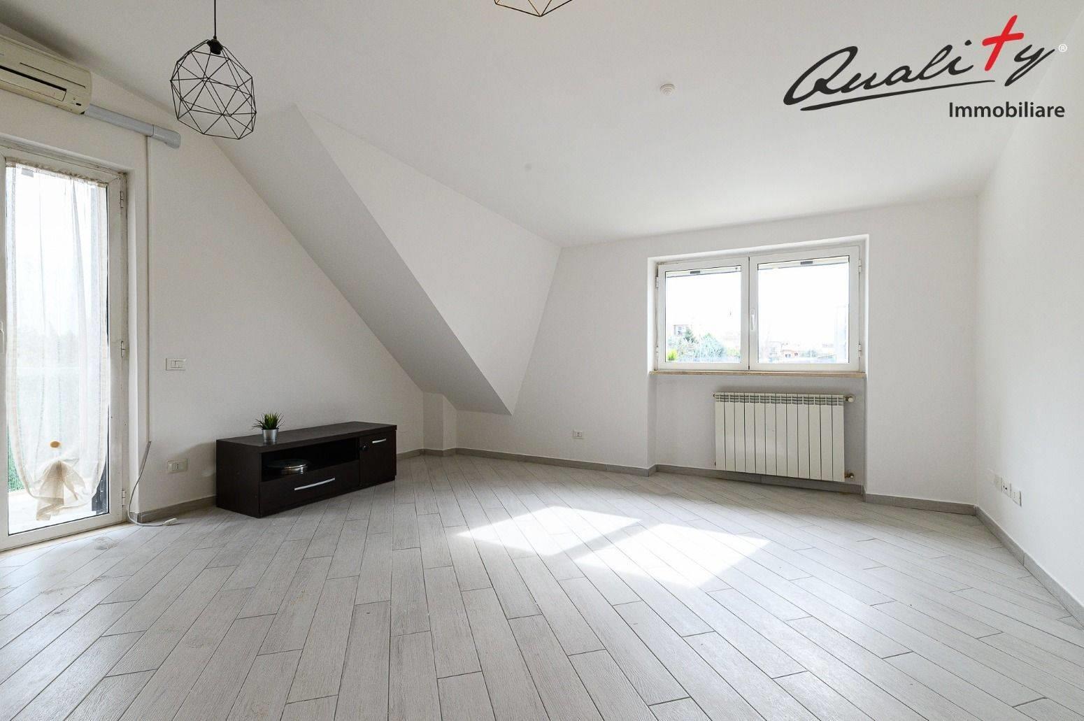VILLAGGIO PRENESTINO, e precisamente in via Abbateggio, Quality Immobiliare propone in vendita luminoso bilocale di 59 mq. Posto al primo e ultimo piano di uno stabile di sole due unità abitative, l'appartamento risulta così composto: ingresso su soggiorno con angolo cottura, camera matrimoniale, disimpegno, dal quale è possibile ricavare una piccola zona lavanderia, bagno finestrato con doccia e balcone abitabile.