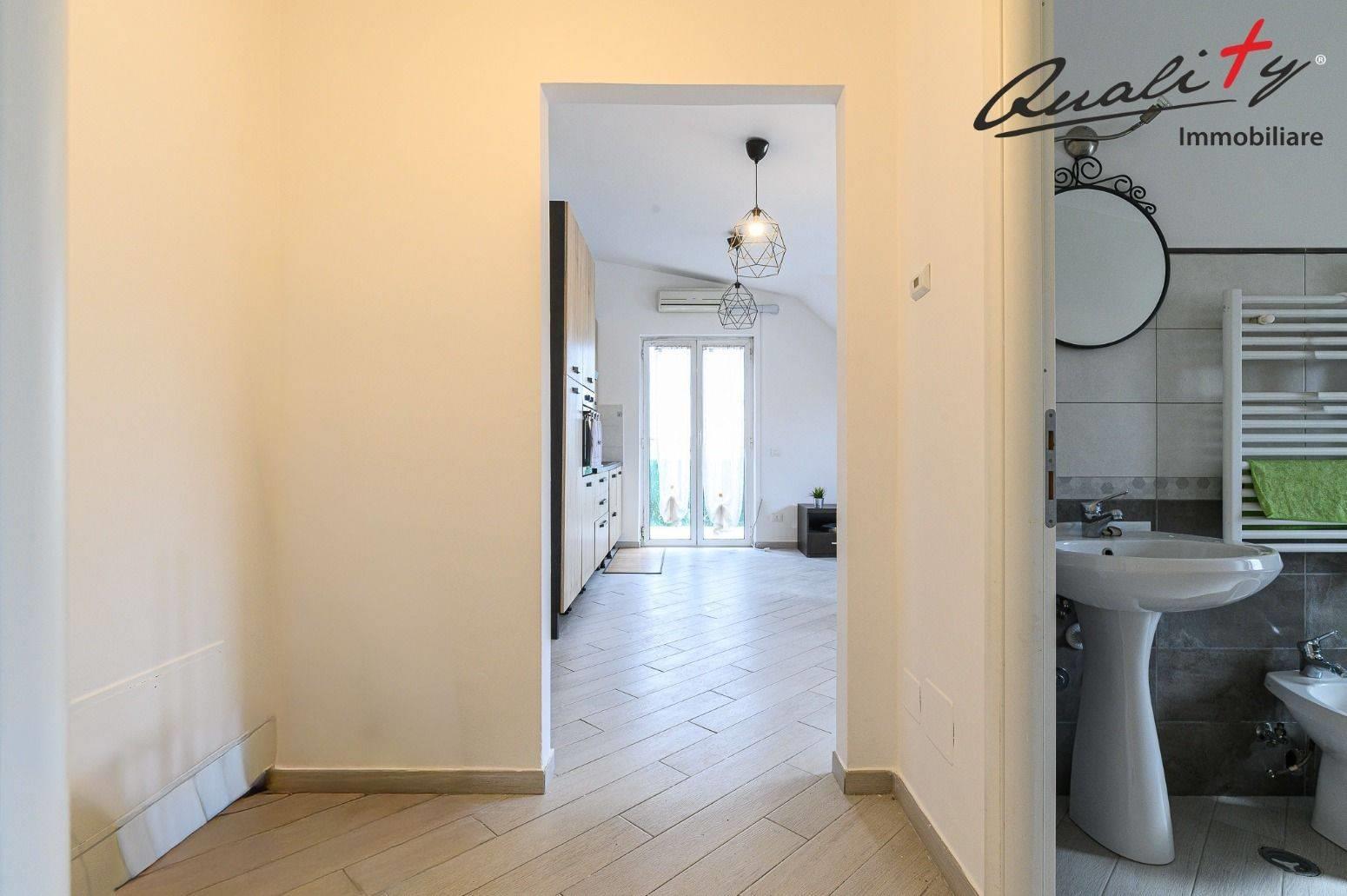 L'immobile si presenta in buono stato e dispone di infissi in doppio vetro alluminio, persiane nel soggiorno e nella camera matrimoniale, riscaldamento autonomo, aria condizionata in soggiorno e porta blindata.