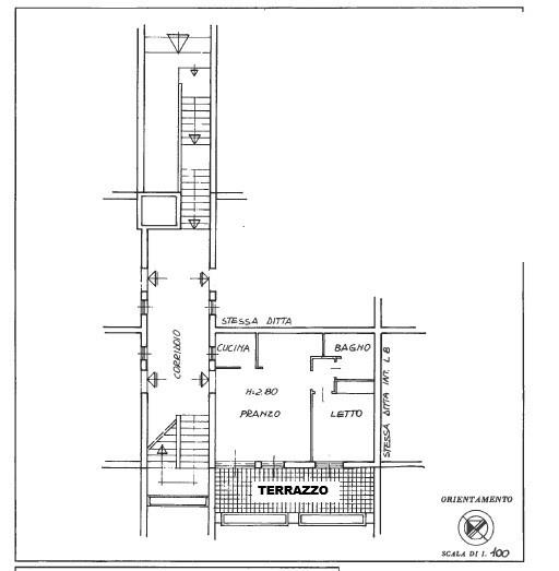Accediamo all’immobile e troviamo ad accoglierci un luminoso salone con cucinotto a vista, dotato di sfogo esterno sull’ampio terrazzo di 25 mq circa. Procedendo verso la zona notte, troviamo una camera da letto matrimoniale con sfogo esterno sul medesimo terrazzo, ed infine il bagno servito da doccia.
