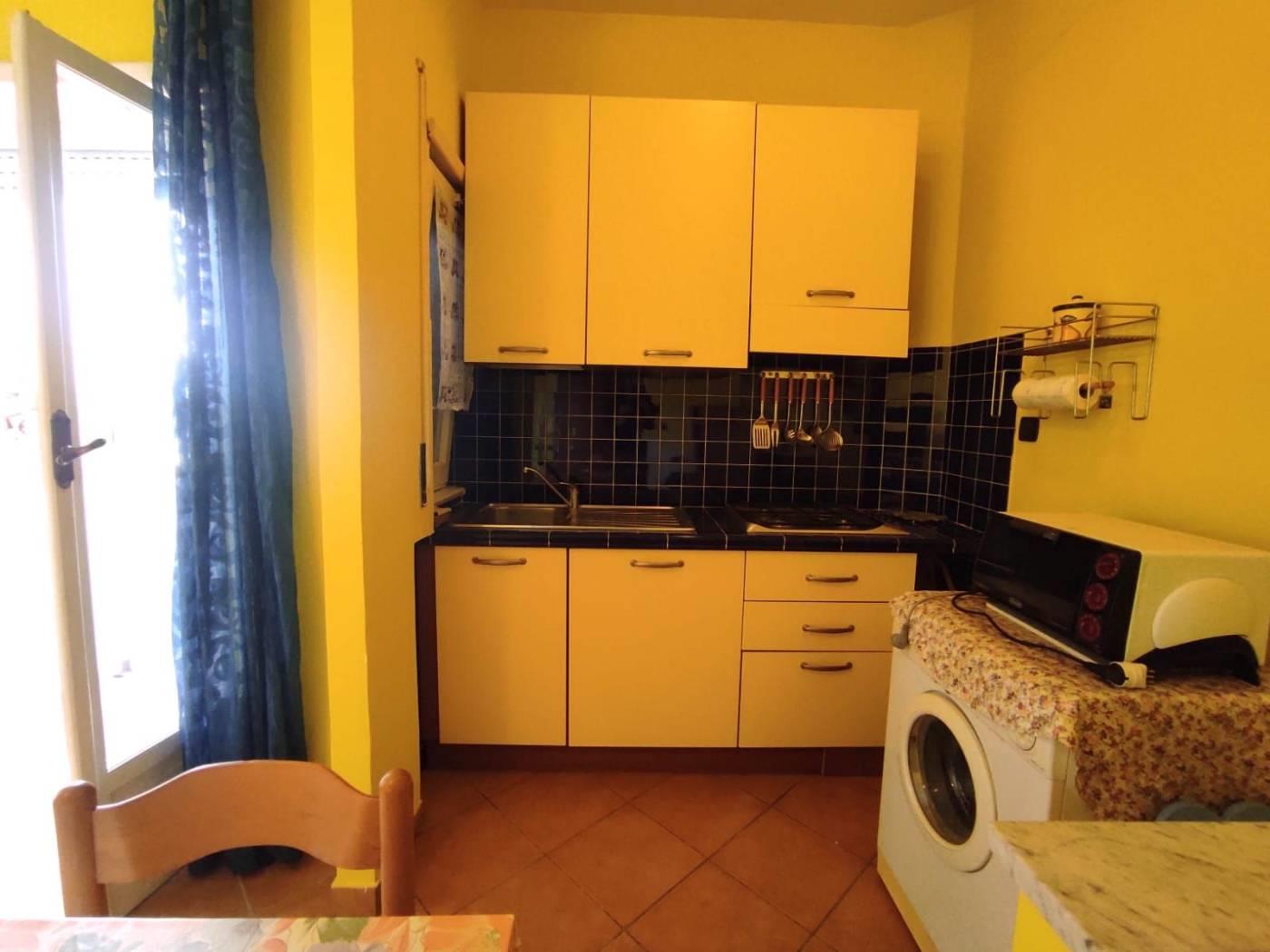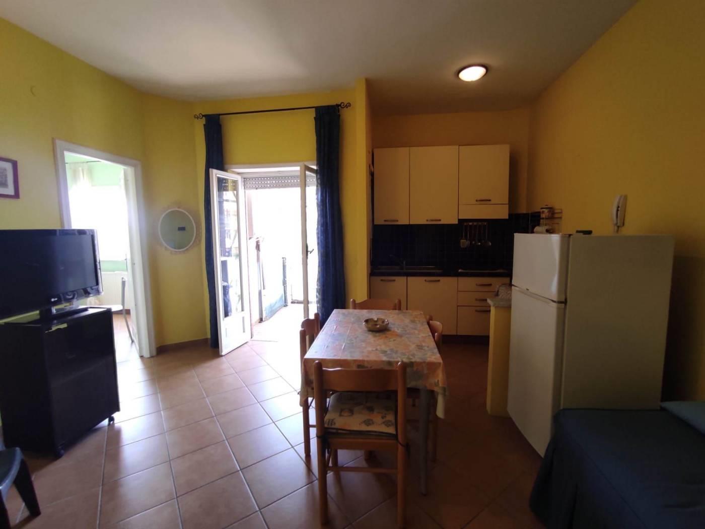 Accediamo all’immobile attraverso la porta blindata ed internamente troviamo ad accoglierci il soggiorno con cucina a vista e sfogo esterno su un balcone di 5 mq; procediamo verso la zona notte passando per il disimpegno, e troviamo una camera da letto ed infine il bagno servito da doccia.