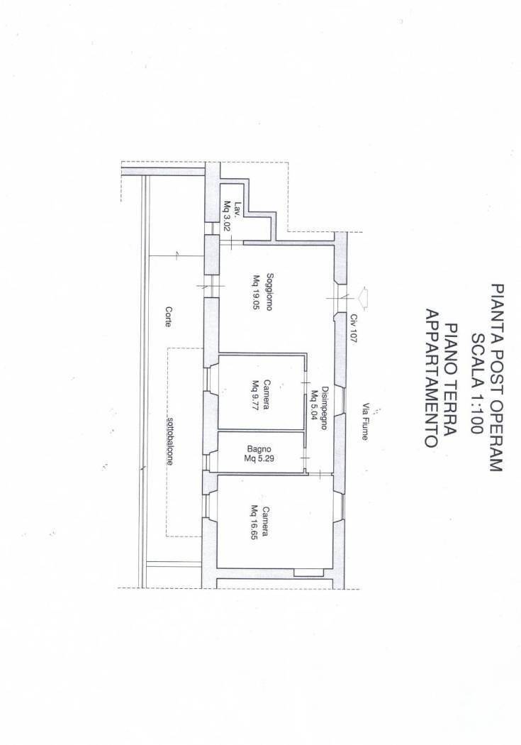 Accediamo all’immobile ed internamente troviamo ad accoglierci l’ampio soggiorno con cucina a vista, servita da un comodo ripostiglio, e con sfogo esterno un ampio giardino di circa 40 mq; procediamo verso la zona notte passando per il disimpegno, e troviamo la camera da letto matrimoniale, la cameretta, ed infine il bagno servito da doccia.