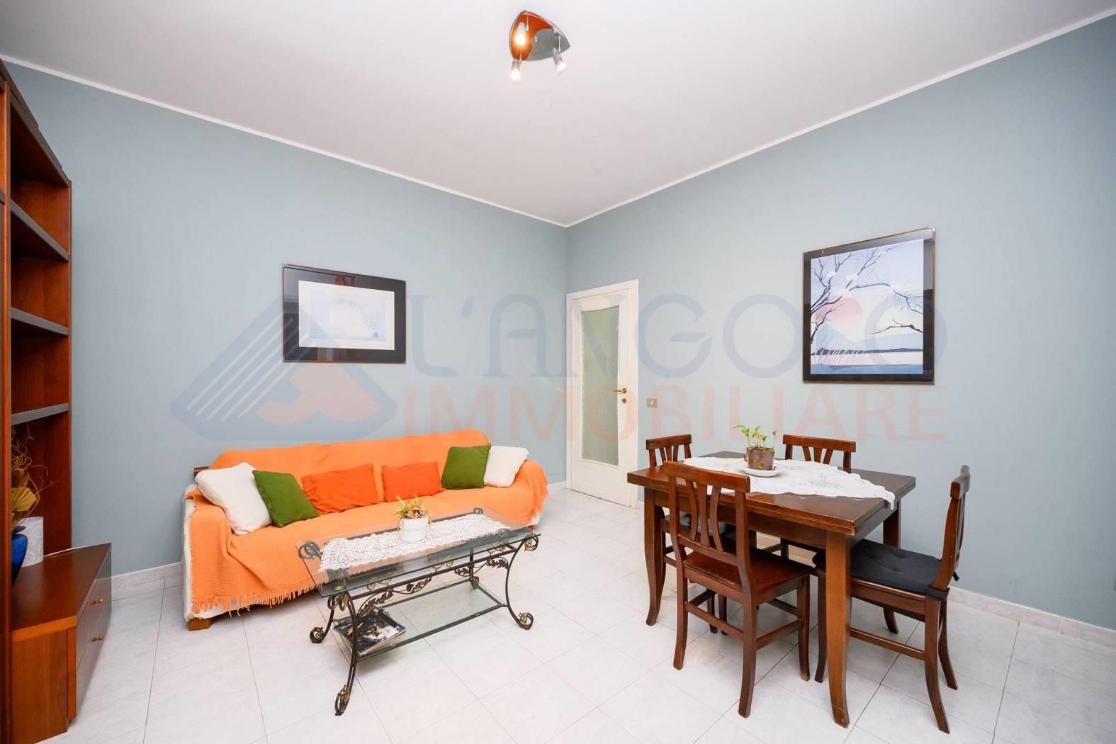 Accedendo all’immobile troviamo ad accoglierci un ampio ingresso, che ci conduce al salone, alla cucina abitabile, entrambe con sfogo esterno su balconi diversi, un balcone di 3mq per quanto riguarda la cucina e un balcone di 6mq per quanto riguarda il salone, dai quali si apprezza uno scorcio sul mare. Proseguendo all’interno dell’abitazione troviamo, la zona notte composta da due ampie camere da letto, di cui una dotata di sfogo esterno sul terzo ulteriore balcone verandato di 7mq. Infine troviamo un bagno servito da vasca ed un comodo ripostiglio.