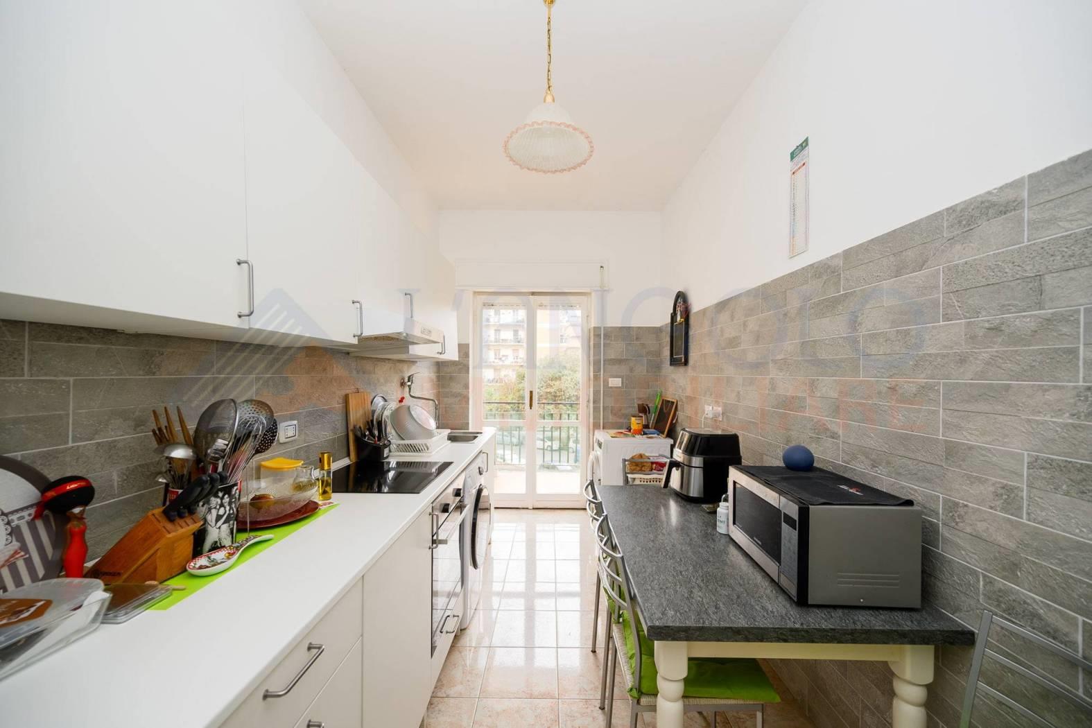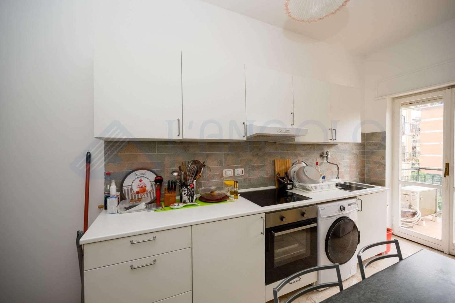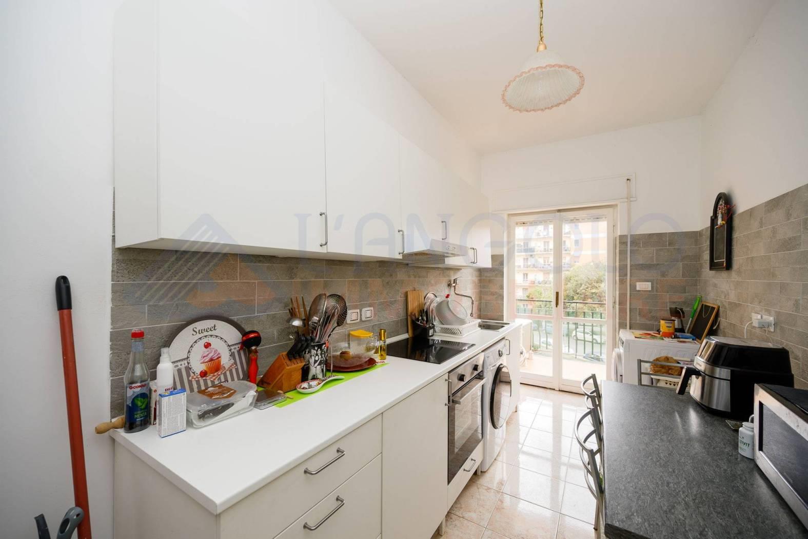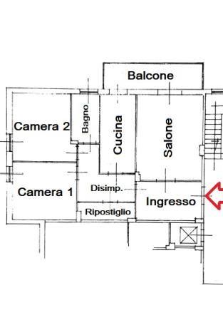 Accediamo all’immobile tramite l’ingresso che ci conduce al luminoso soggiorno, con sfogo esterno su un balcone di 12 mq, e la cucina abitabile; procediamo per il disimpegno, servito da un comodo ripostiglio, troviamo la zona notte composta da camera da letto matrimoniale, cameretta ed infine il bagno recentemente ristrutturato servito da doccia.