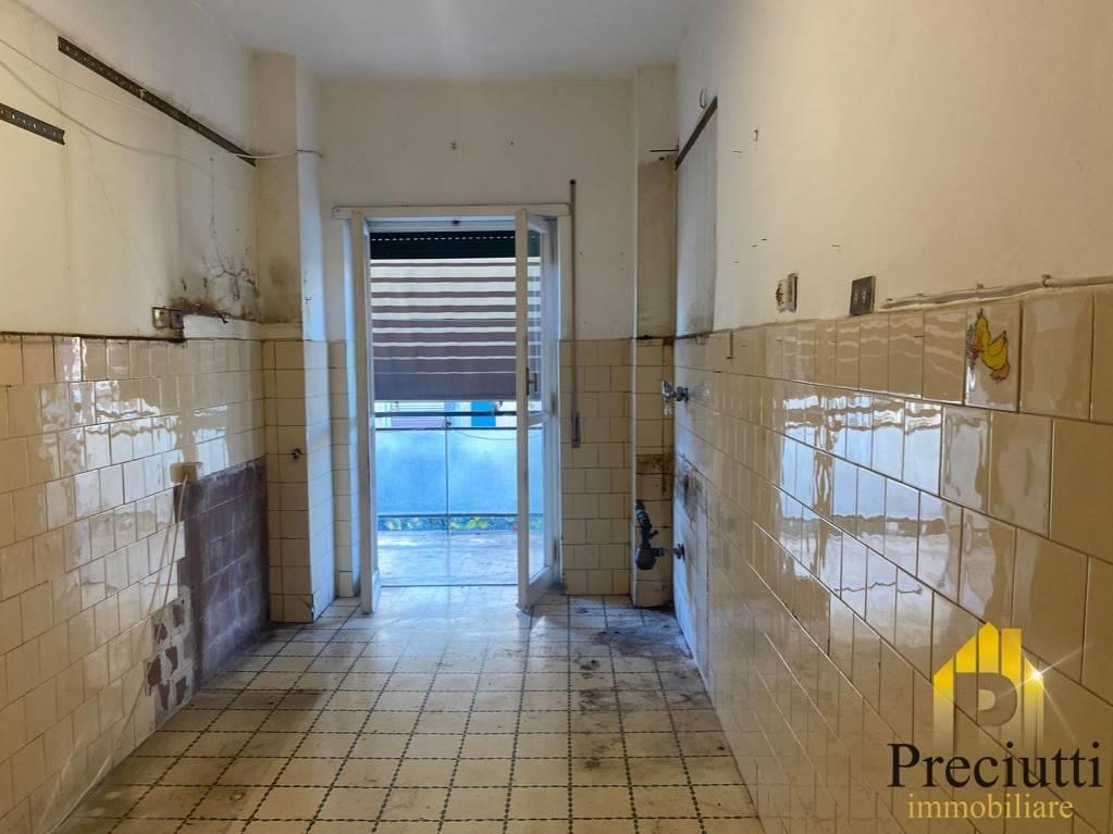Marconi Via Francesco Grimaldi, adiacente via Oderisi da Gubbio, in zona servita da tutti i servizi commerciali e vicino università, palazzo in ottimo stato, terzo piano, libero subito, ampio ingresso, soggiorno, disimpegno con finestra, cucina abitabile con ripostiglio, camera matrimoniale e ampio bagno ristrutturato, balconata abitabile, possibilita' di creare la seconda cameretta e secondo bagno, l'immobile è da ristrutturare ad eccezione del bagno.