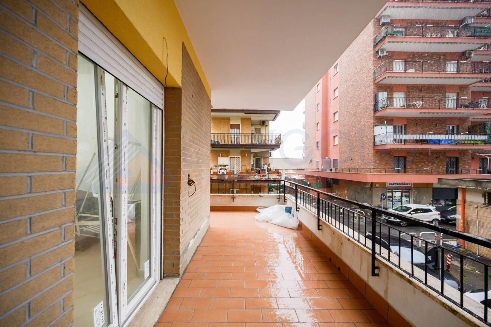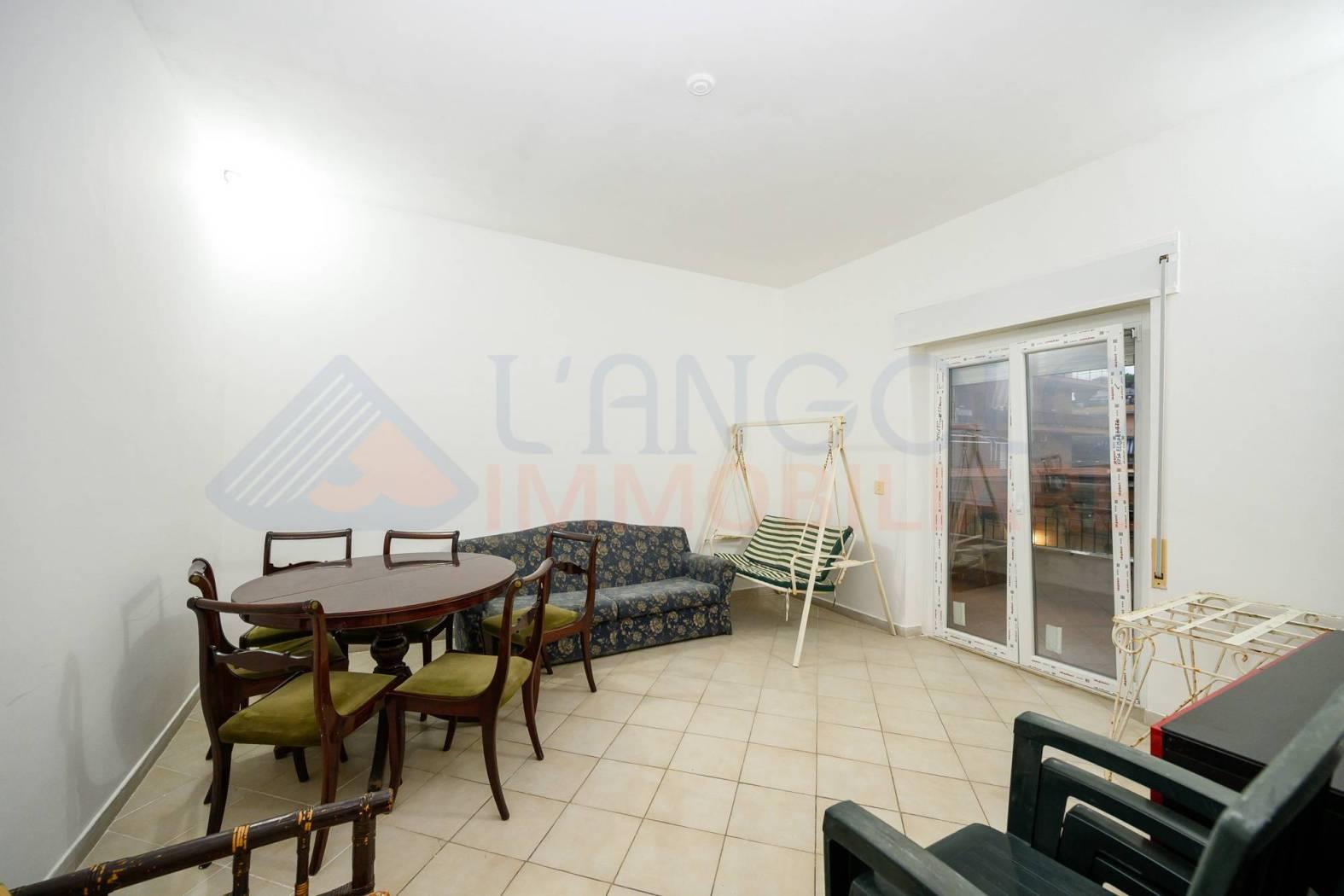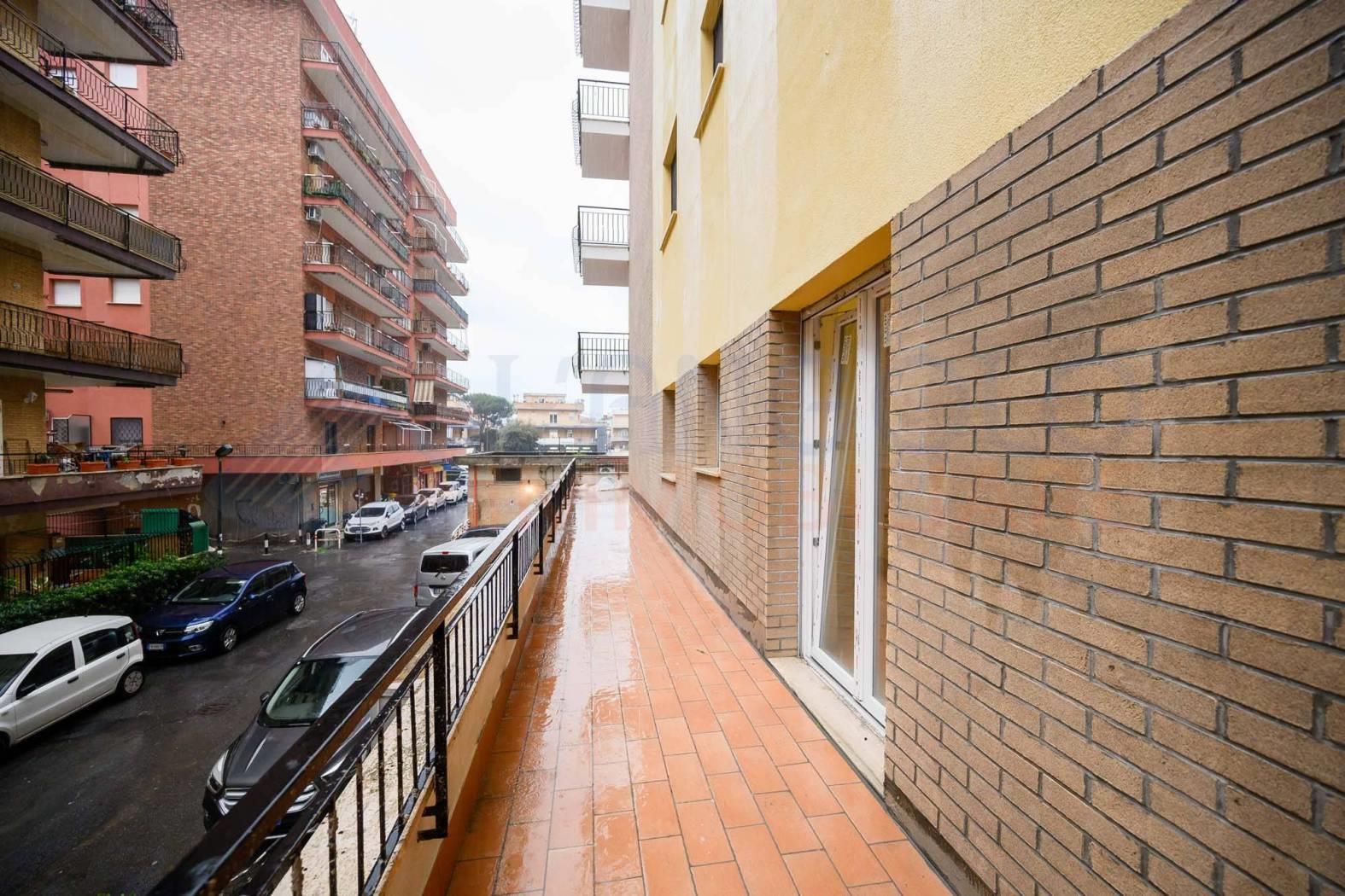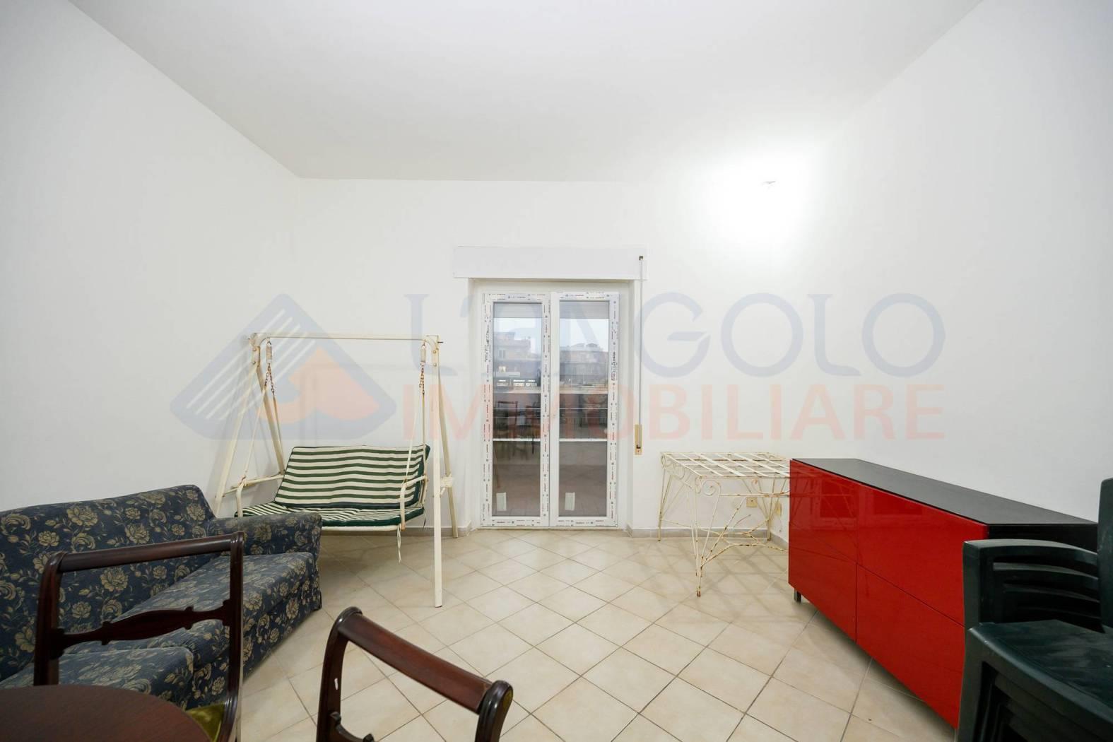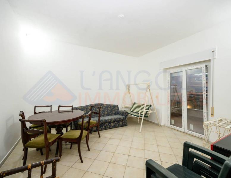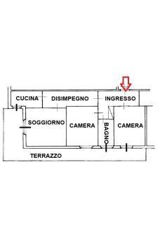 Accediamo all’immobile e troviamo ad accoglierci un ampio ingresso servito da armadio a muro, che ci conduce all'ampio soggiorno ed alla cucina abitabile, entrambe con sfogo esterno su un ampio terrazzo perimetrale di circa 45 mq. Proseguendo all’interno dell’abitazione percorrendo il disimpegno, e troviamo la zona notte composta da camera da letto matrimoniale con sfogo esterno sul medesimo terrazzo, una seconda camera matrimoniale ed infine l’ampio bagno servito da vasca.