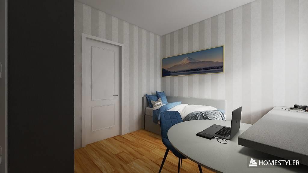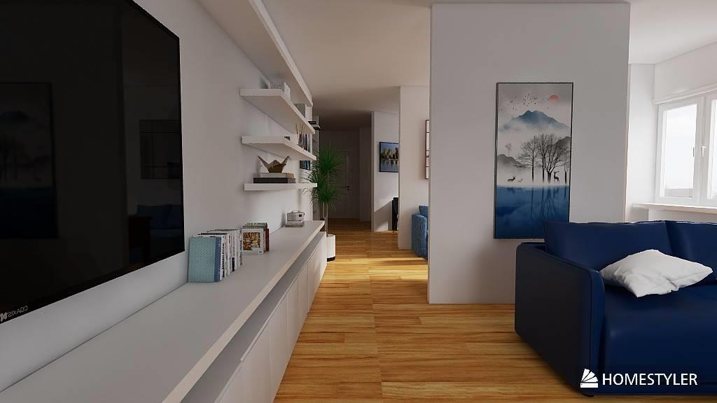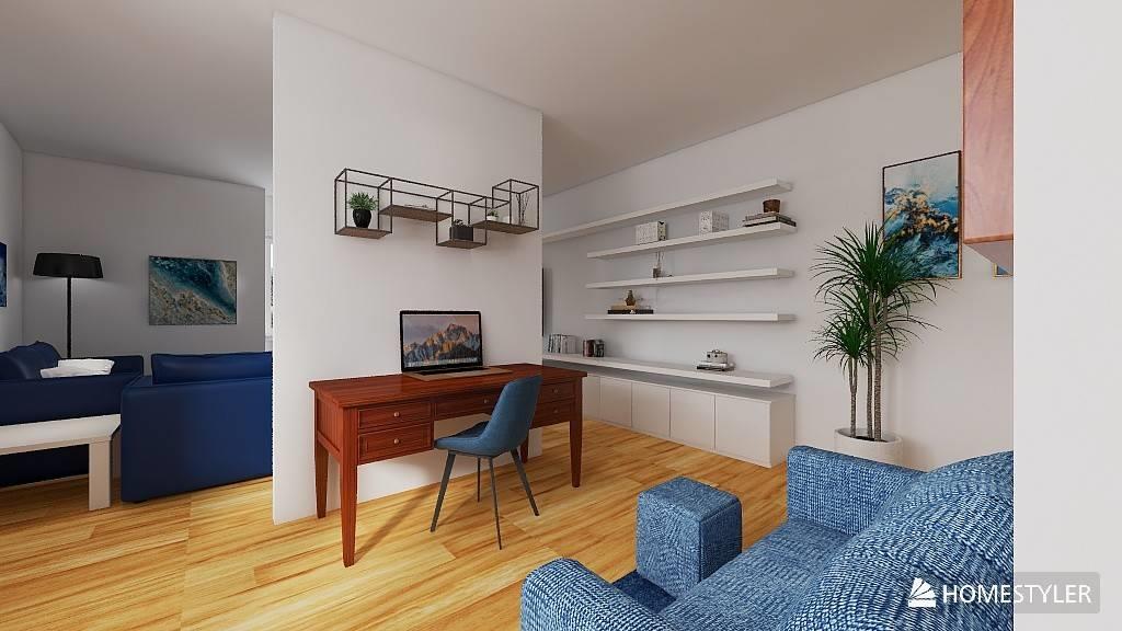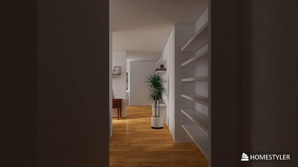 Varcando la porta d'ingresso a destra troviamo ingresso, un bagno, una camera da letto e infondo un salone con l'angolo cottura..