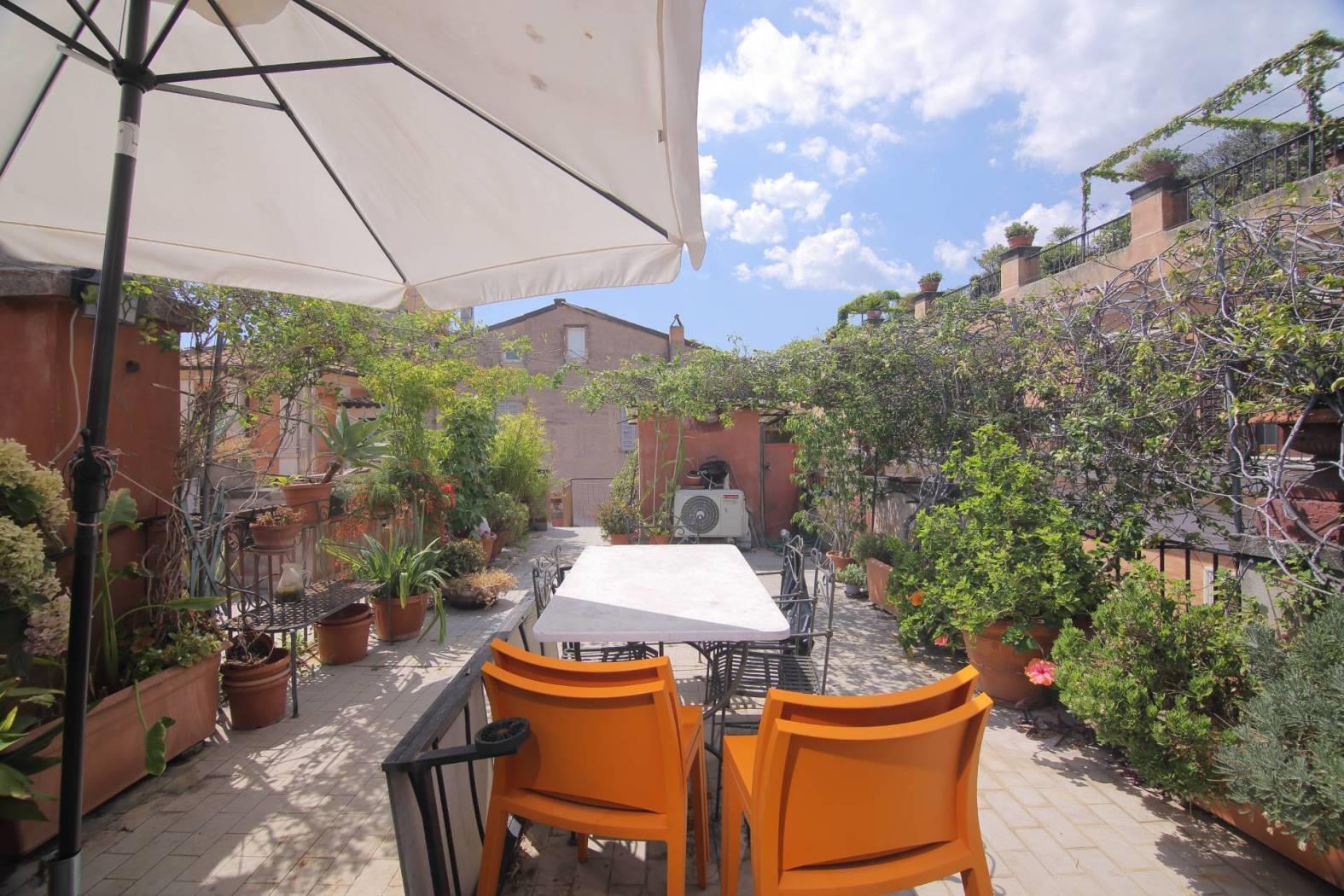 Nel fascinoso della Roma storica, tra l'affascinante Piazza del Paradiso e la suggestiva Piazza del Teatro di Pompeo, a due passi dalla meravigliosa Campo de' Fiori proponiamo un attico situato al quarto piano senza ascensore e due meravigliosi terrazzi situati al piano superiore con accesso attraverso una scala esterna.