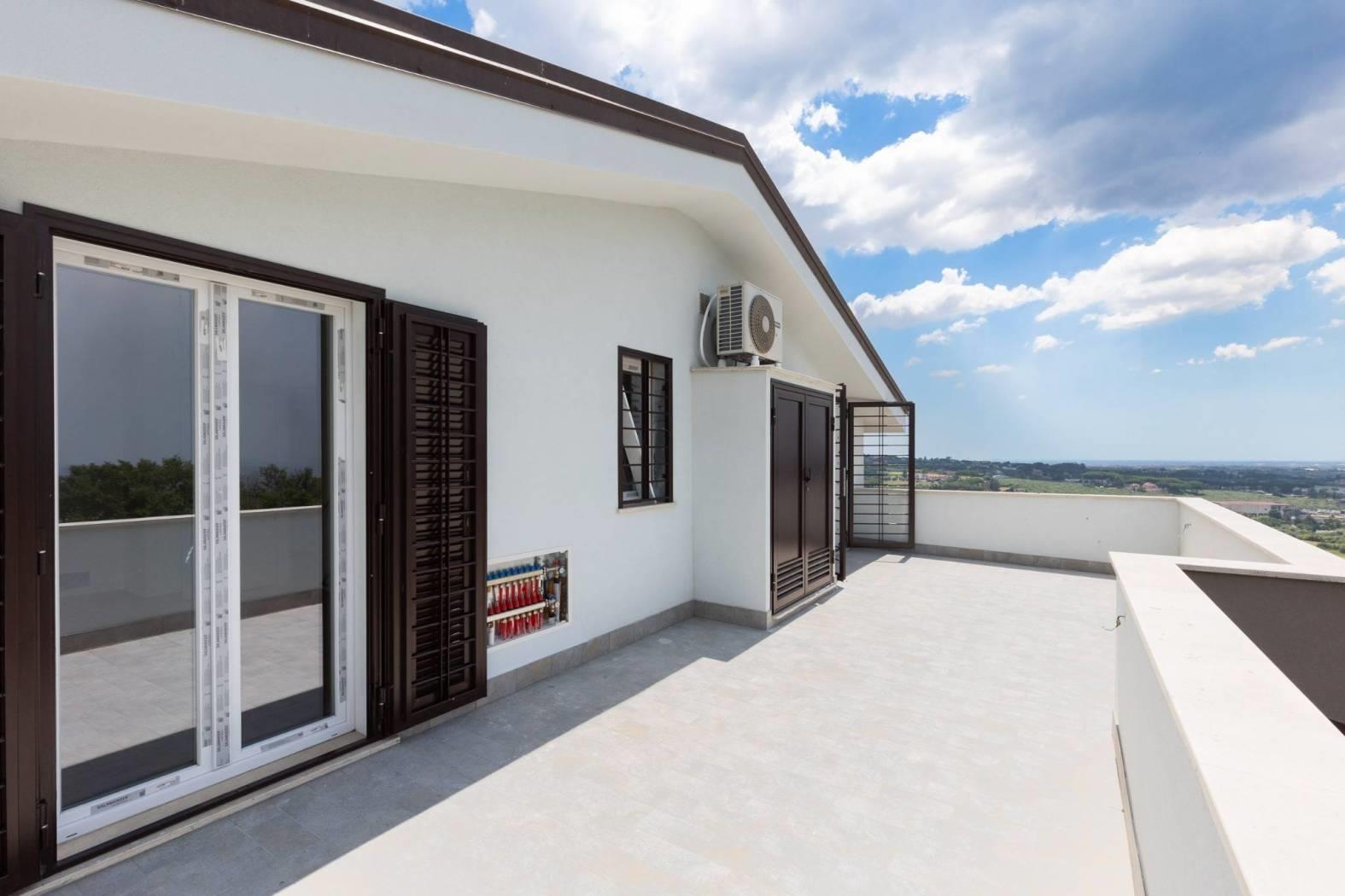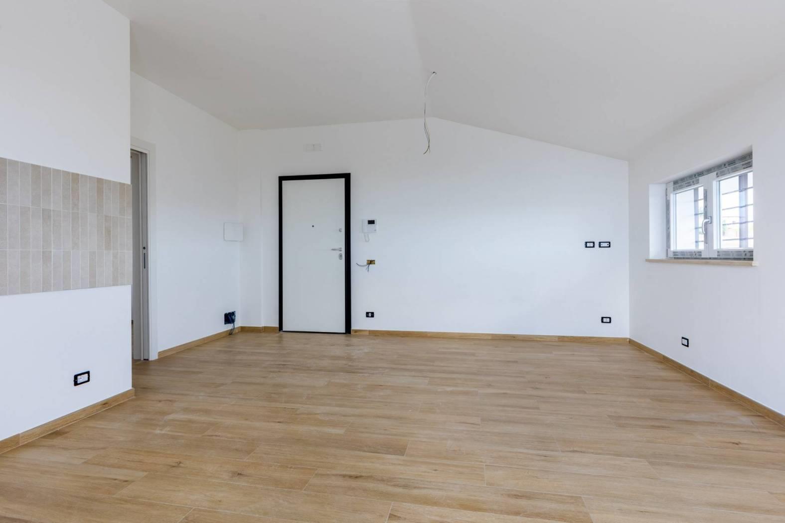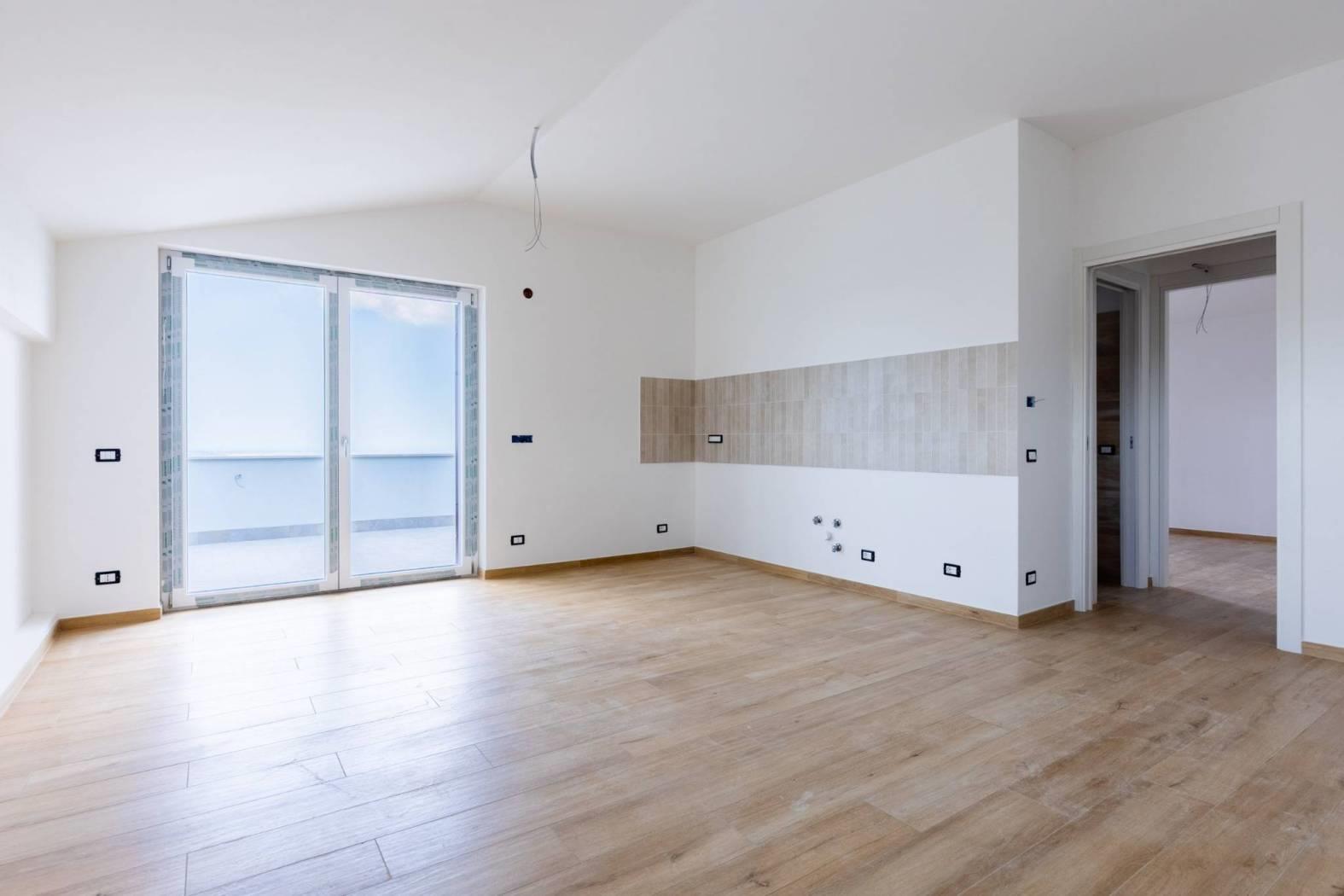Esempio di appartamento: Interno 10, attico panoramicissimo e molto luminoso, composto di soggiorno con angolo cottura, camera matrimoniale , studio, bagno finestrato terrazza di 35 mq estremamente panoramica ed ariosa. La proprietà include un posto auto scoperto, con possibilità di acquistare un secondo posto auto.