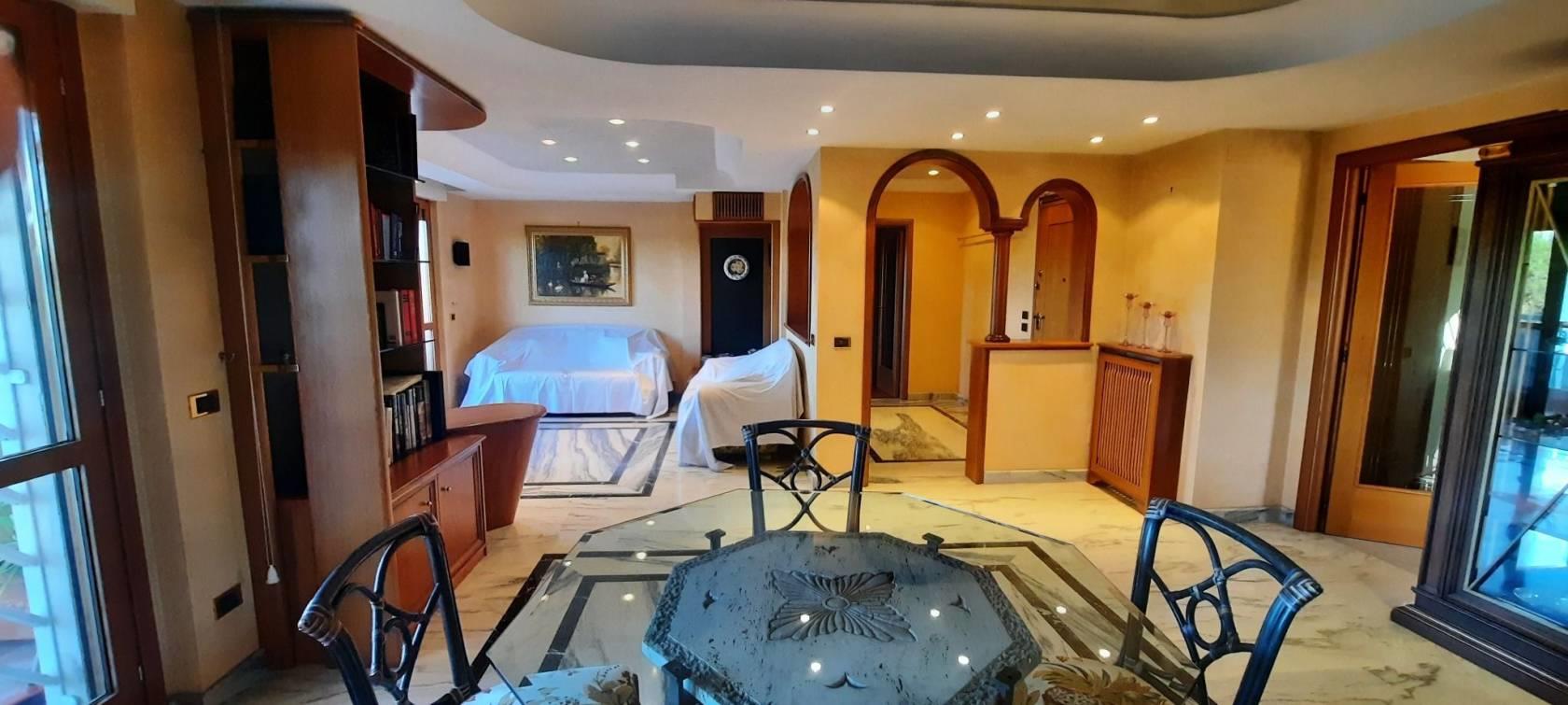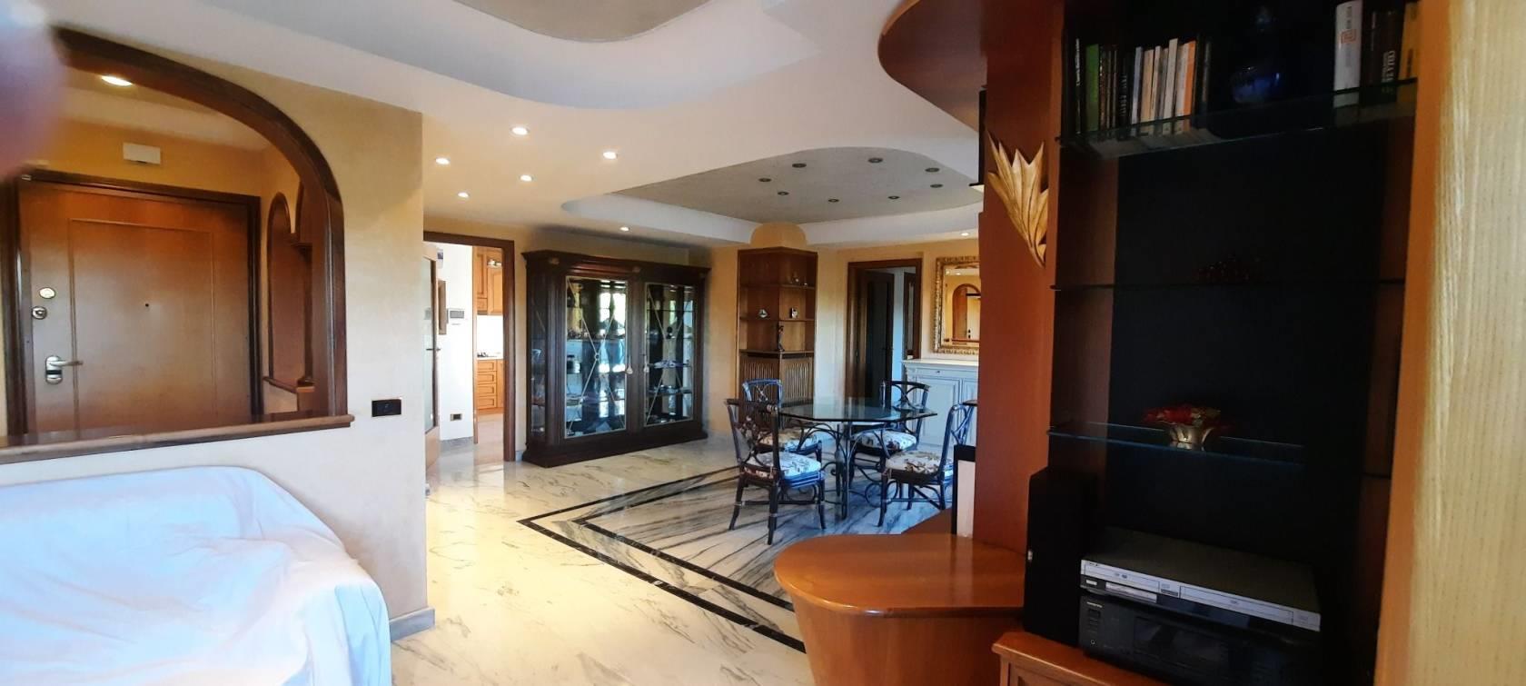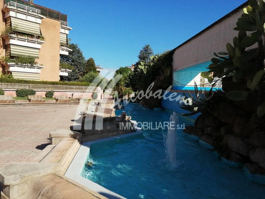 Ardeatina Via Andrea Millevoi residenza il Giglio in complesso residenziale con parco e piscina condominiale, ottimo stato ultimo piano composto da ingresso, ampio salone, ampio studio, tre camere, cucina abitabile, doppi servizi ( uno con finestra l'altro cieco), tre balconi e mediante accesso da scala esterna il terrazzo sovrastante dove insiste una tettoia regolarmente autorizzata con certificazione in possesso da porre in visione e un lavatoio privato, completa la proprietà un box auto doppio per due autovetture con annessa serranda elettric automatizzata. Per informazioni e visite antonio panci 3332161798 www.antoniopanci @immobiliarearcobaleno.eu. Informazioni indicative non costituiscono elemento contrattuale