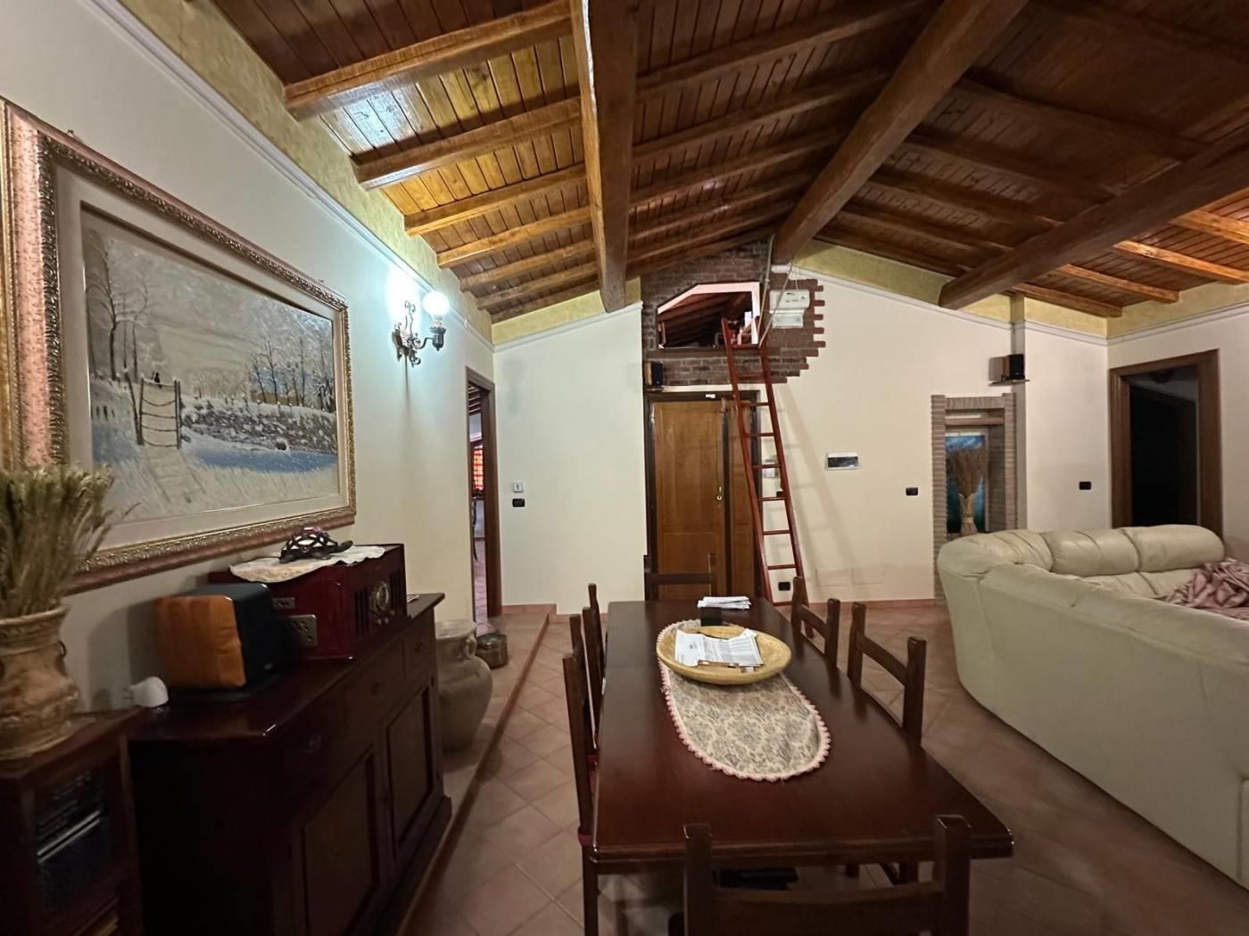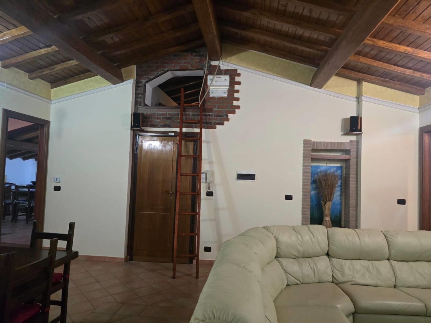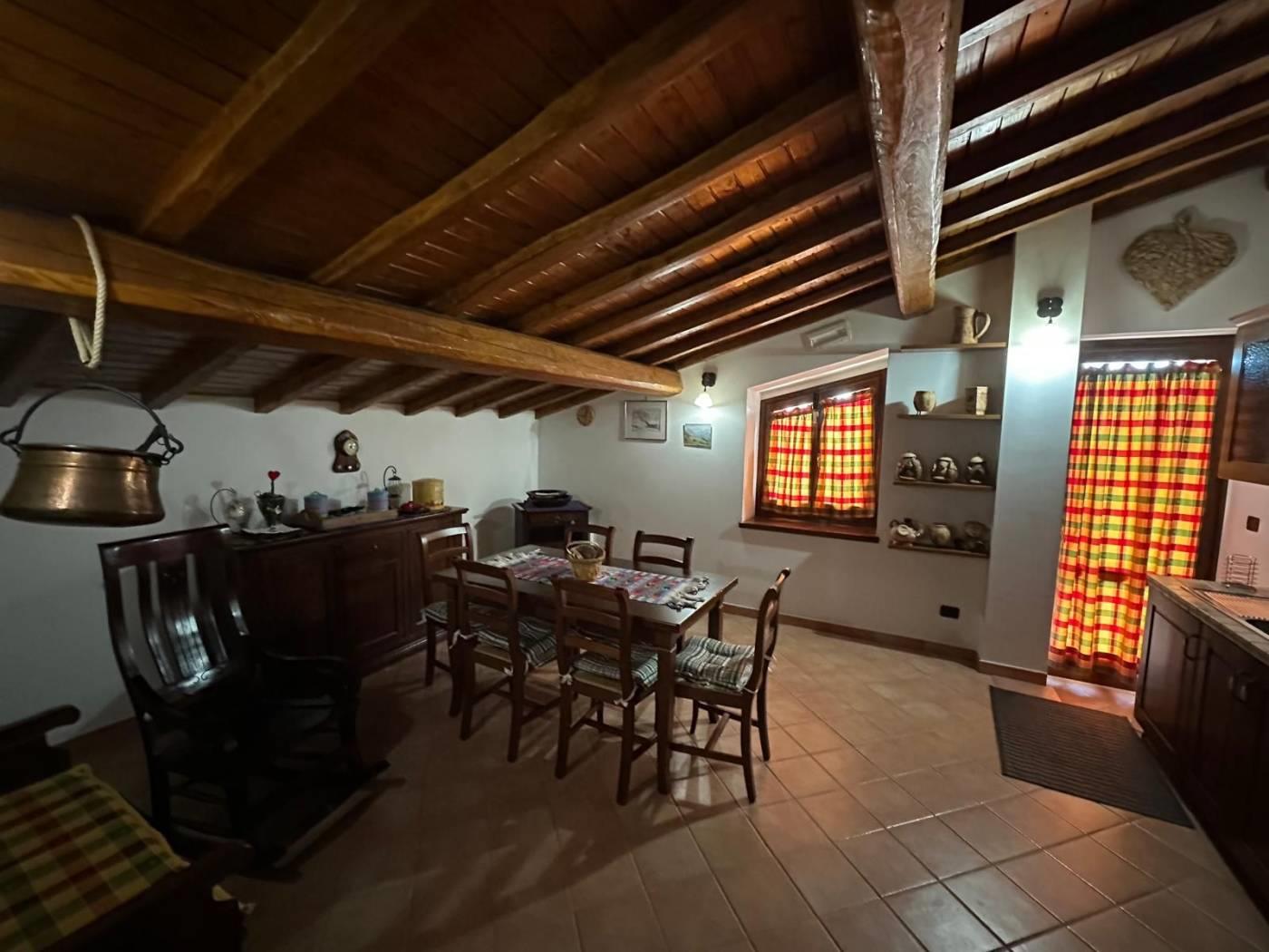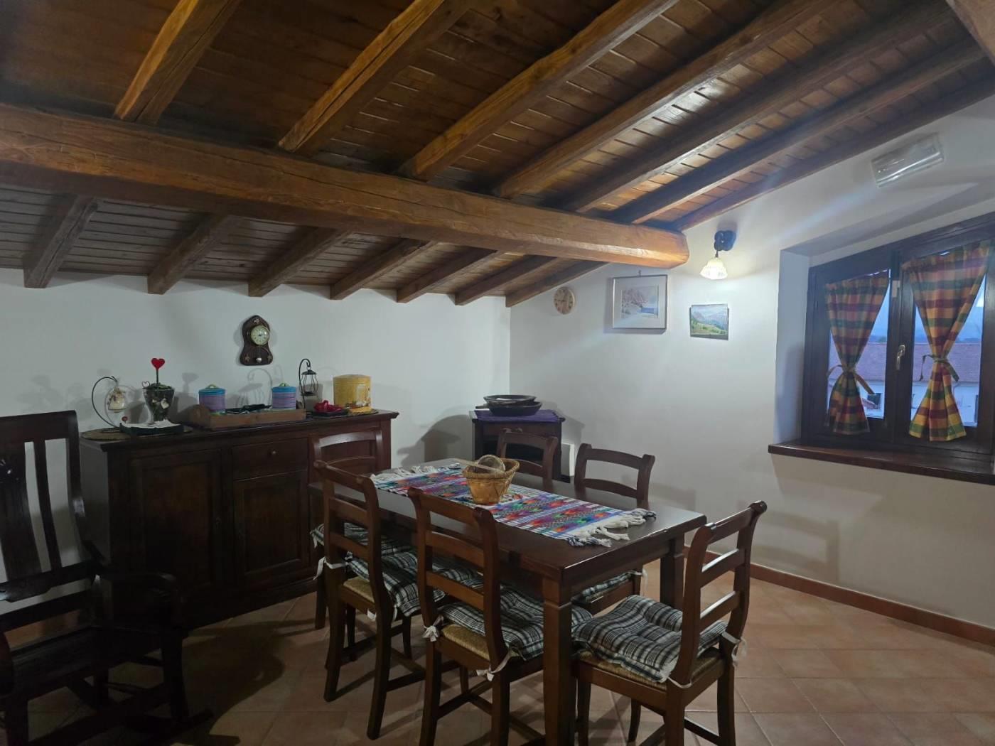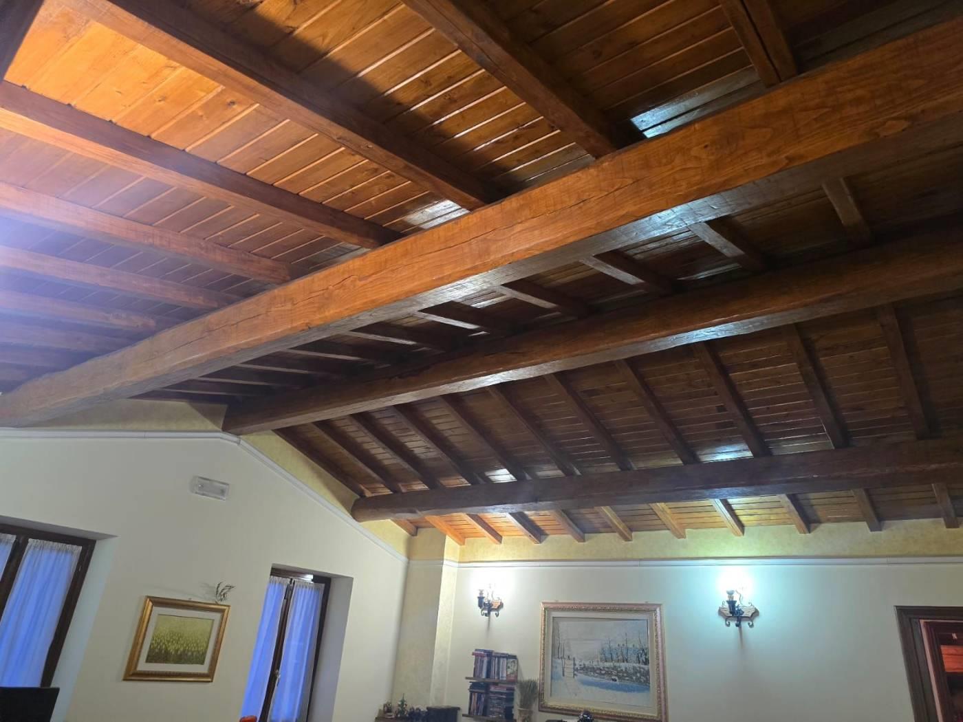 Gli infissi e le porte sono in legno massello e inoltre vi è impianto di filodiffusione e d'allarme. Il soffitto è in travi di castagno.
