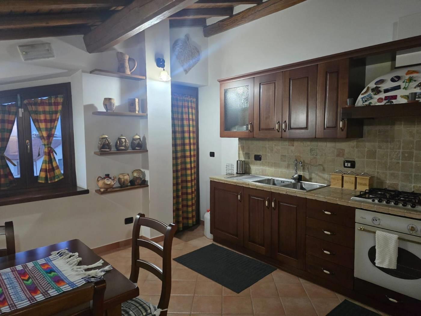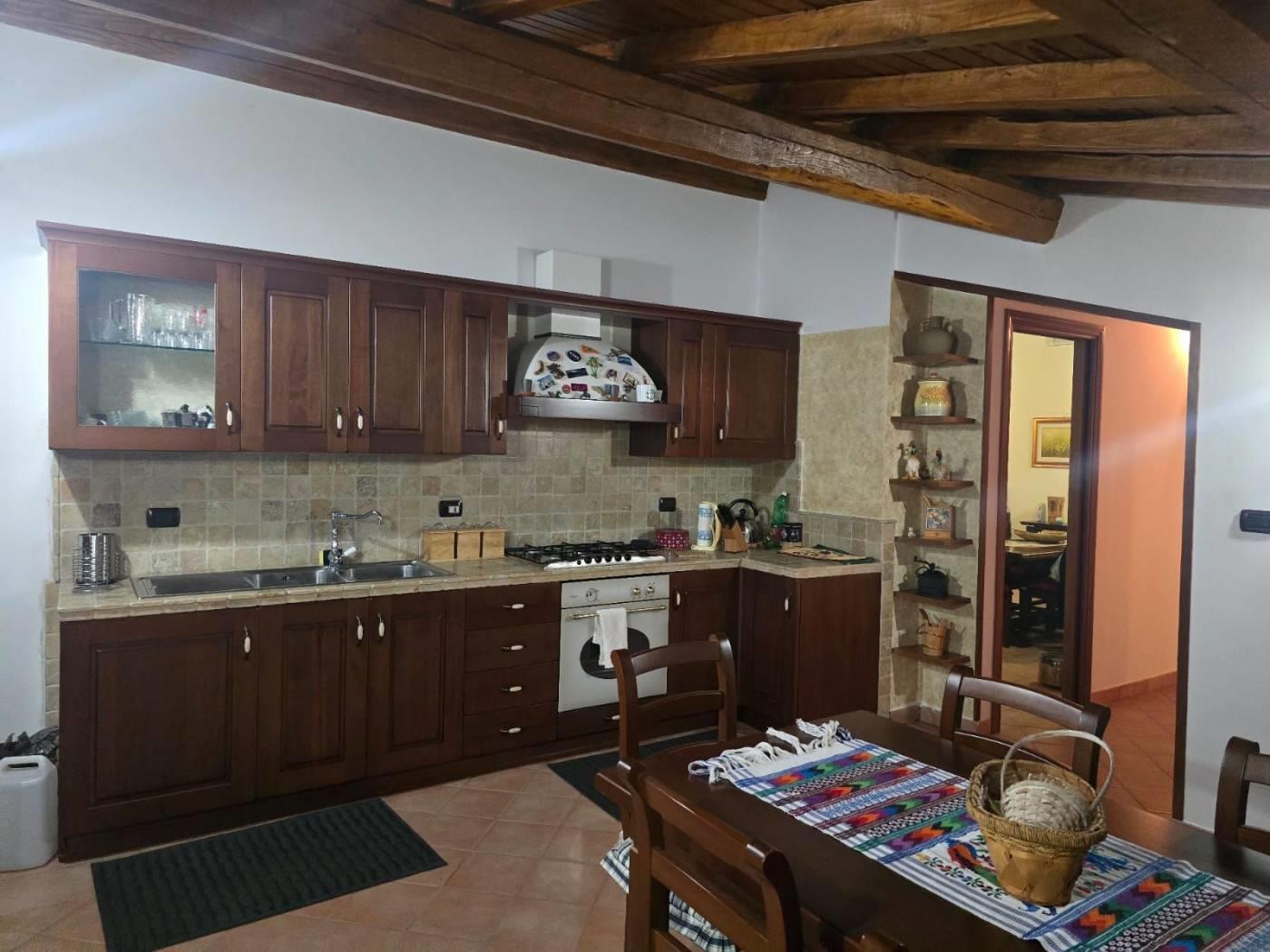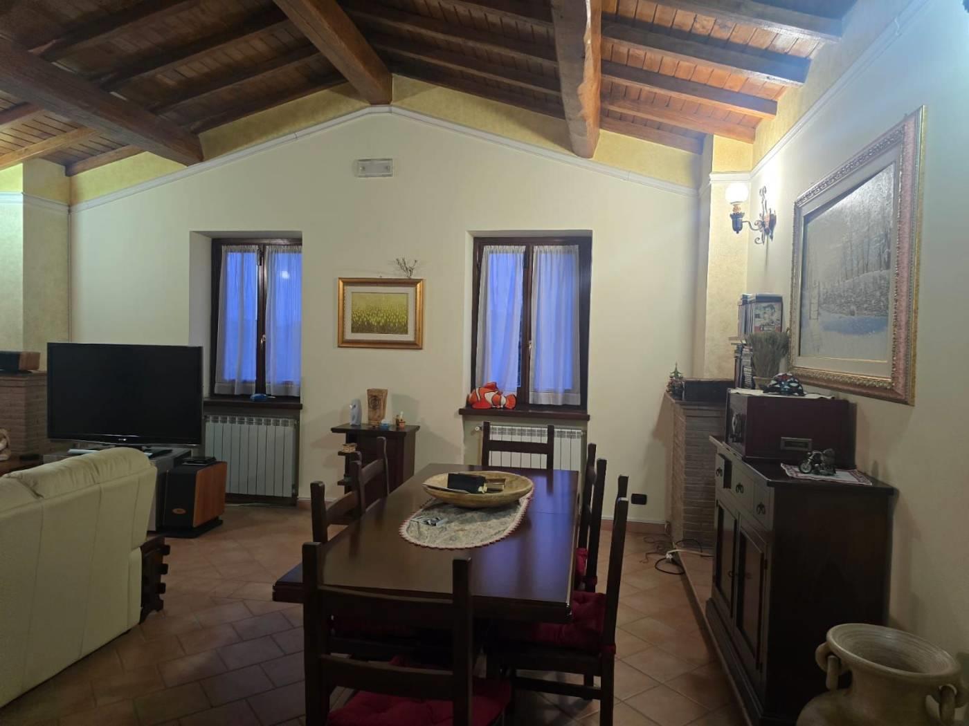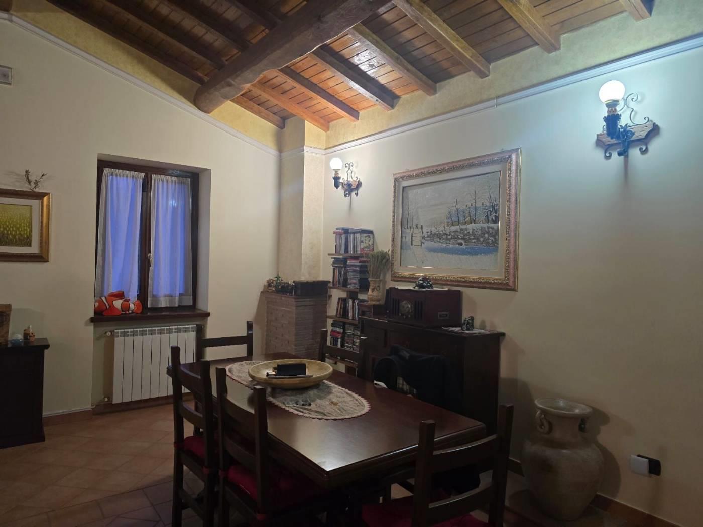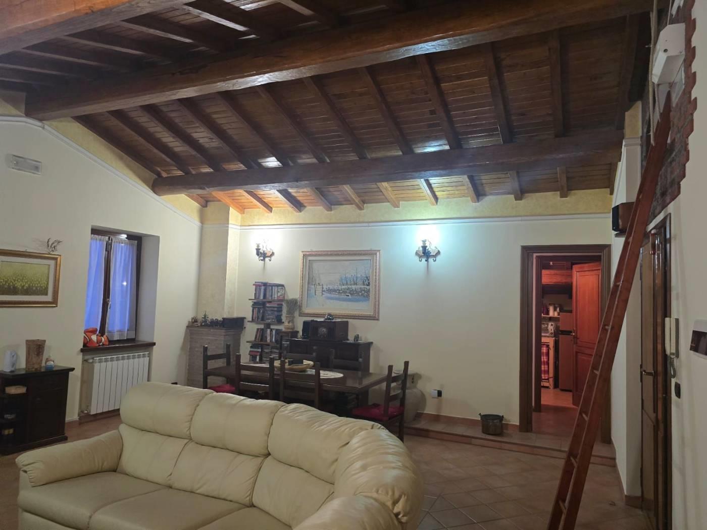 Gli infissi e le porte sono in legno massello e inoltre vi è impianto di filodiffusione e d'allarme. Il soffitto è in travi di castagno.