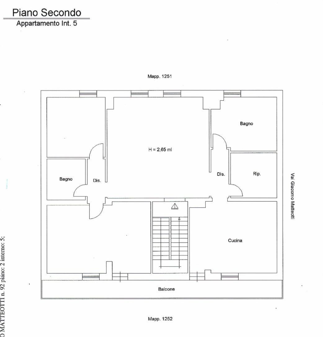 Appartamento al secondo piano, 150 mq, salone, cucina, due camere, due bagni, lavanderia e balcone.
