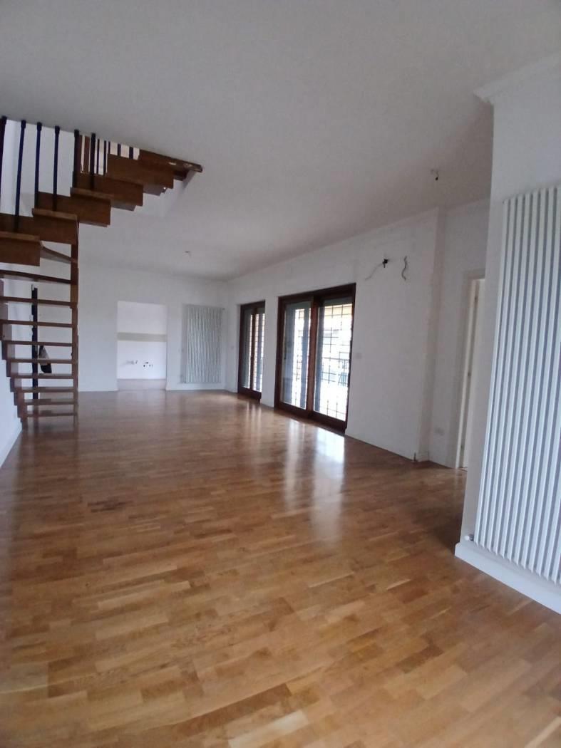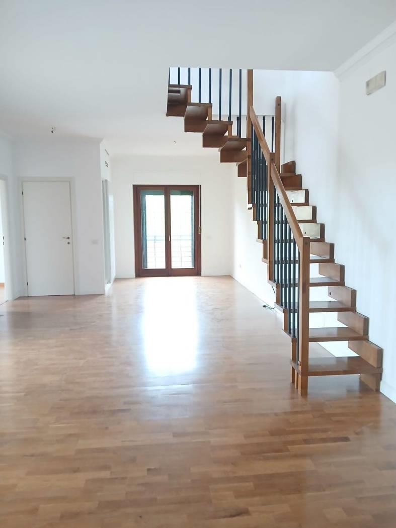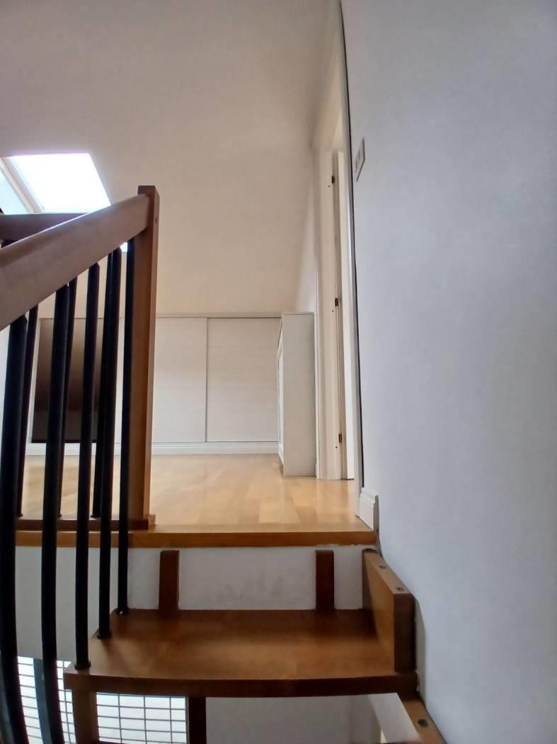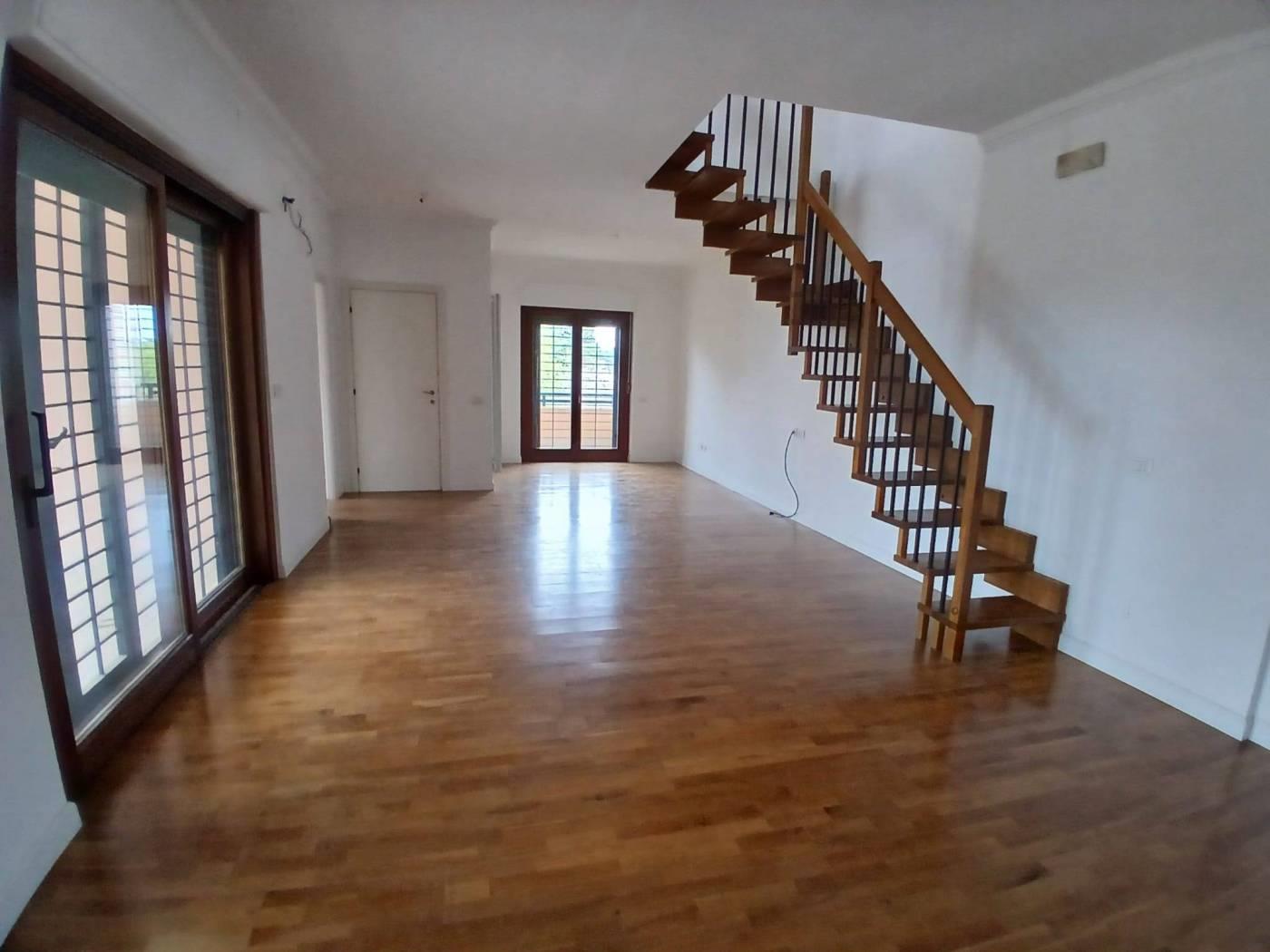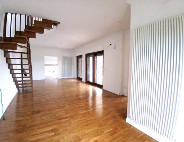 Secondo piano composto da : salone triplo, bagno ospiti finestrato, cucina abitabile, camera da letto con bagno en suite finestrato, ampio terrazzo loggiato; tramite scala in legno si accede al piano superiore dove troviamo due grandi camere, bagno con doccia finestrato, terrazzo che circonda l'appartamento.