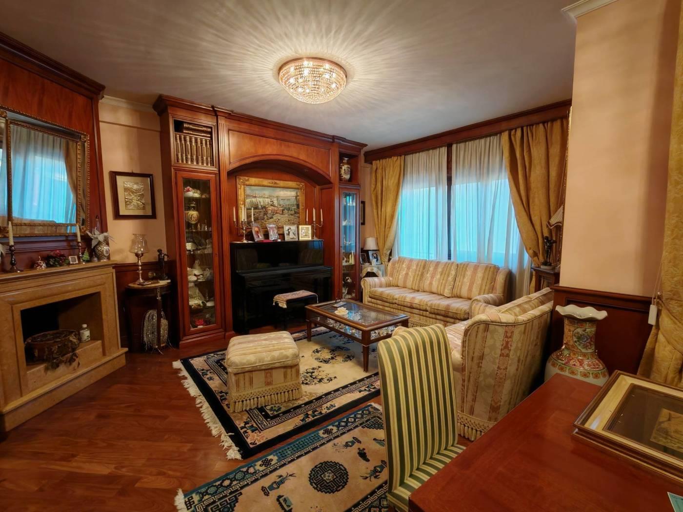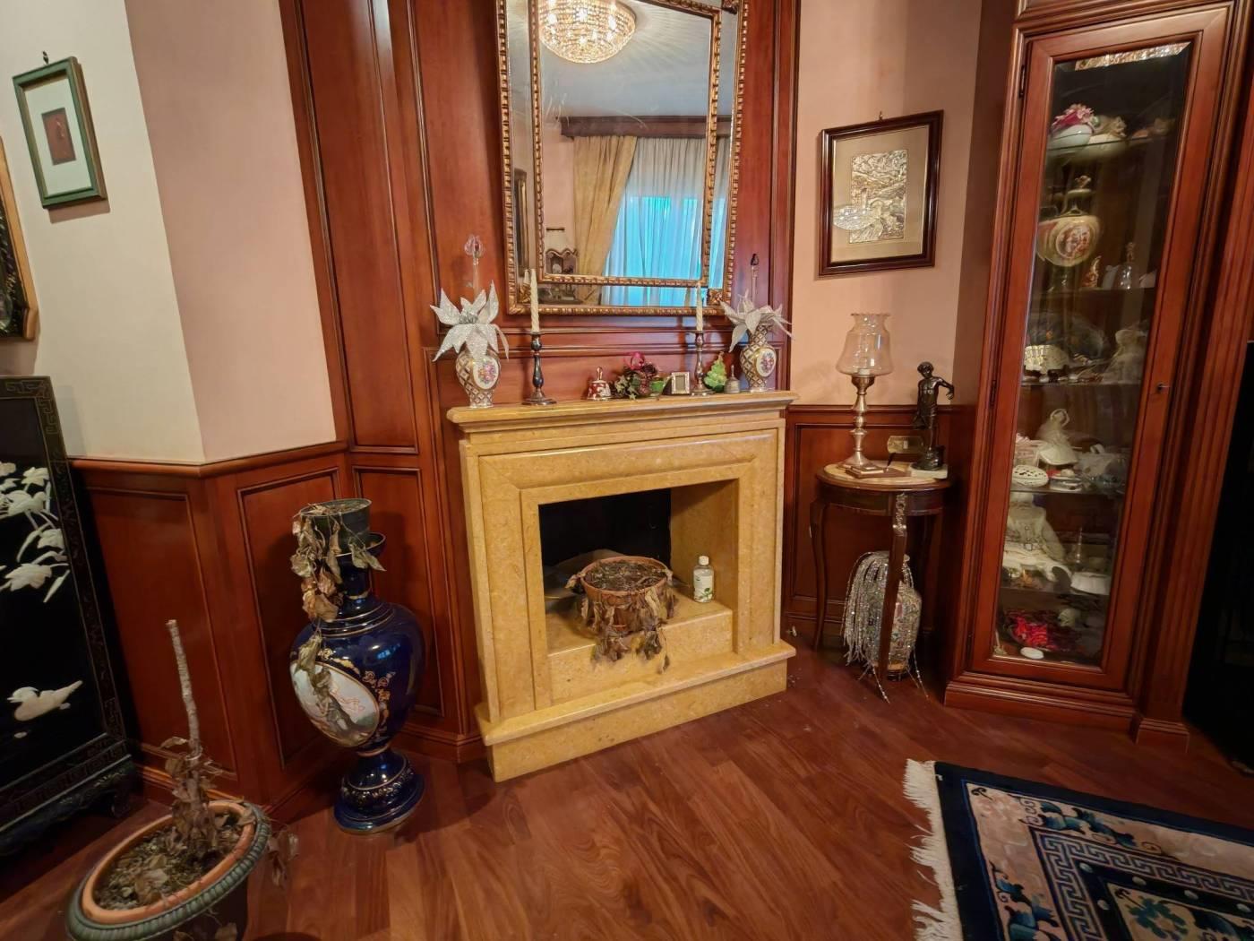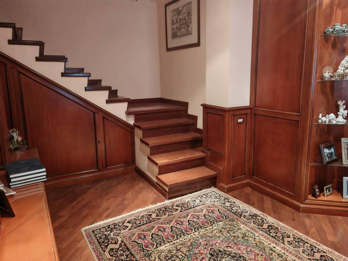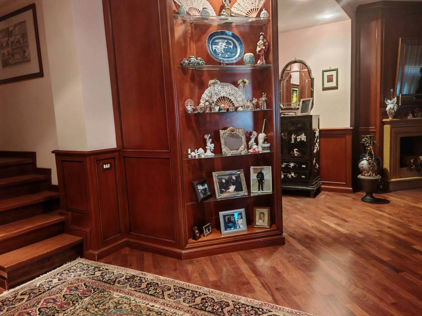 L'immobile ha una pavimentazione in parquet afrormosia, camino in pietra rosa con rivestimento in legno, infissi in Pvc doppio vetro con bassa trasmittanza installate nel 2021 ed in ottime condizioni, serrande elettriche, antifurto, aria condizionata, bagno della zona giorno al piano terzo in muratura con ceramiche VERSACE, il legno delle boiserie è stato importato dal Veneto ed installato da artigiani con posa su misura.