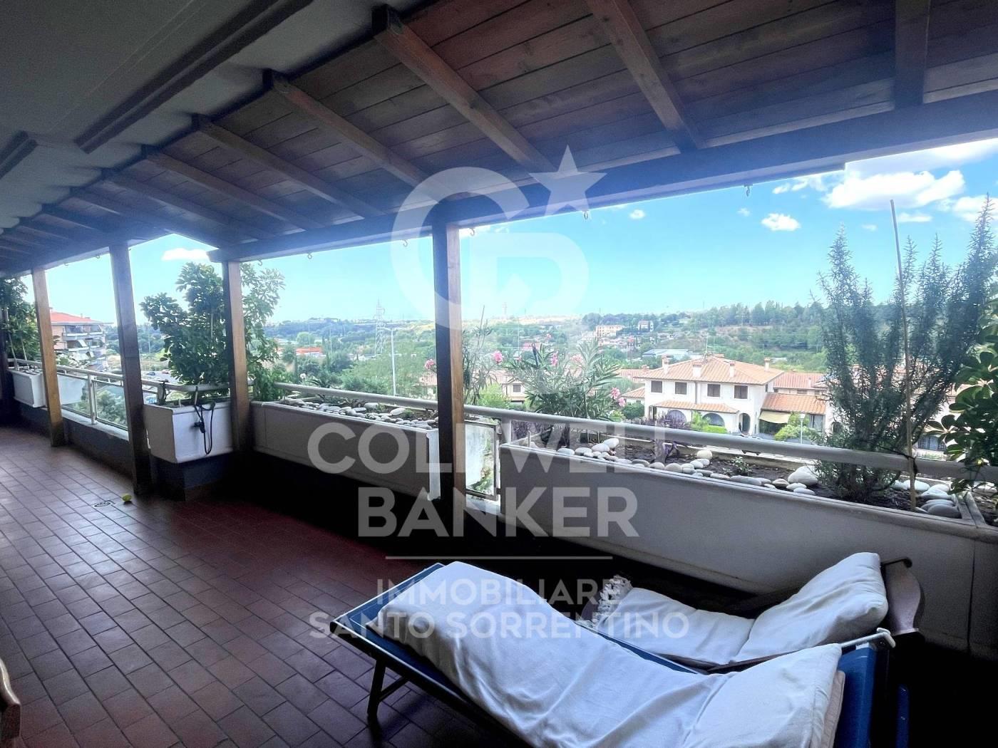 Collina delle Muse in via Pietro Ubaldo Angeletti, con splendida e luminosa vista proponiamo in vendita ATTICO in ottime condizioni interne posto al terzo ed ultimo piano di stabile del 2004. L'immobile ha un'ottima distribuzione degli spazi interni ed attualmente si compone di ingresso un grande salone ed una cucina abitabile, entrambi hanno un accesso diretto ad un ampio ed attrezzato terrazzo a livello con una meravigliosa vista sul verde. La zona notte si divide in tre camere da letto, due servizi ed un comodo balcone. L'appartamento gode di una luminosa e tripla esposizione. La pavimentazione è in parquet in tutti gli ambienti della casa, il riscaldamento è autonomo ed è presente l'aria condizionata. Completa la proprietà un'utilissima cantina ed un box auto.