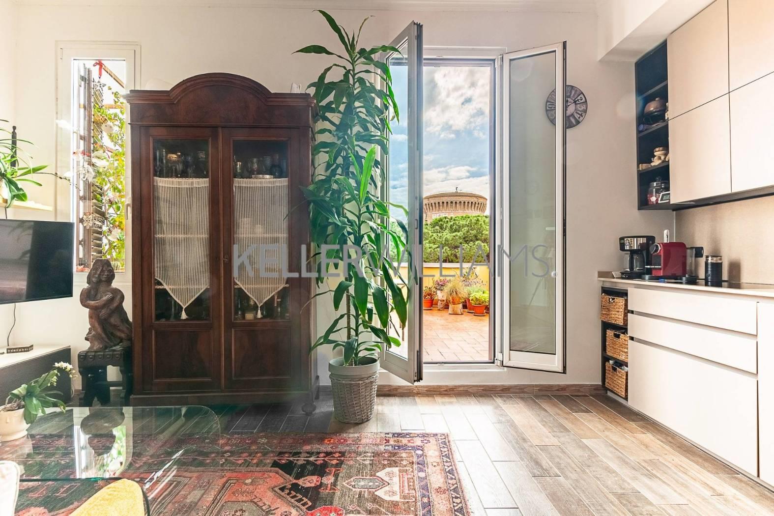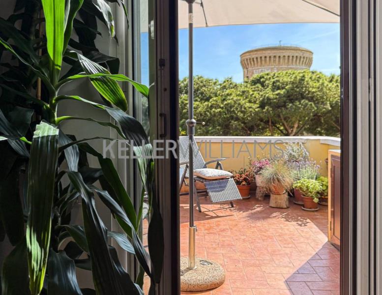 L’ingresso conduce direttamente al soggiorno con cucina a vista, uno spazio conviviale e funzionale che si affaccia direttamente sulla splendida terrazza privata, regala un affaccio suggestivo sul borgo di Ostia Antica e sul maestoso Castello di Giulio II, offrendo scorci unici e un’atmosfera senza tempo. Ideale per pranzi all’aperto, momenti di relax o cene con amici nelle stagioni più miti.