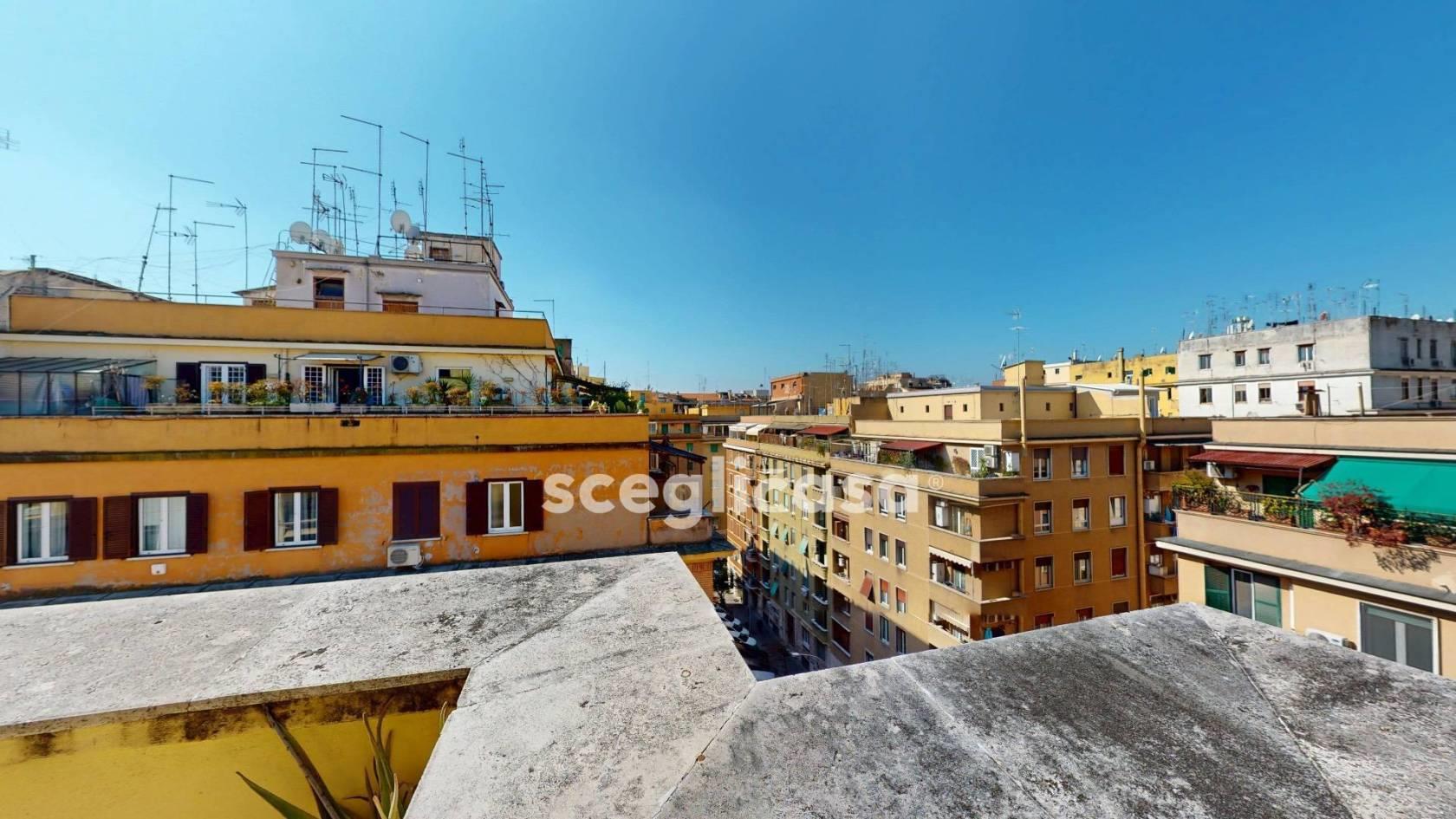 La casa ha tripla esposizione ed è attraversata dalla luce grazie a ampie vetrate sulla terrazza, offrendo visuali sui tetti circostanti, con una piacevole sensazione di respiro. La terrazza, ampia e sfruttabile, si presta alla realizzazione di una zona pranzo esterna, un’area relax o uno spazio verde privato, diventando una vera estensione della zona giorno.