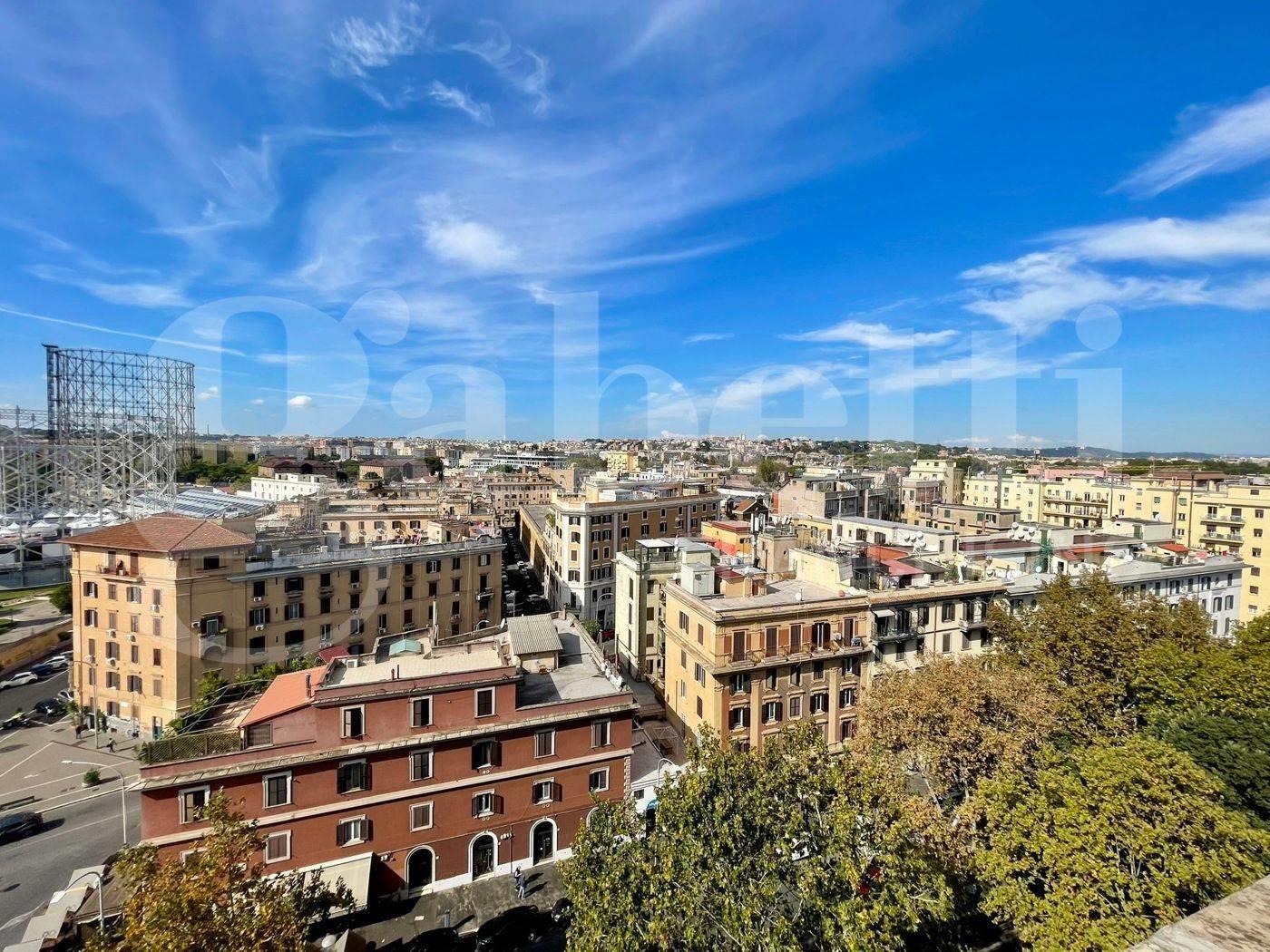 All'interno di uno stabile in cortina dotato di servizio di portineria situato a breve distanza dalle fermate della Metro B Piramide e Garbatella, proponiamo in locazione un luminoso e silenzioso attico, appena ristrutturato ed ancora mai abitato, posto al decimo piano con ascensore fino al nono piano, caratterizzato da doppio affaccio e dalla presenza di un'ampia terrazza vivibile con suggestiva vista sul Gazometro.