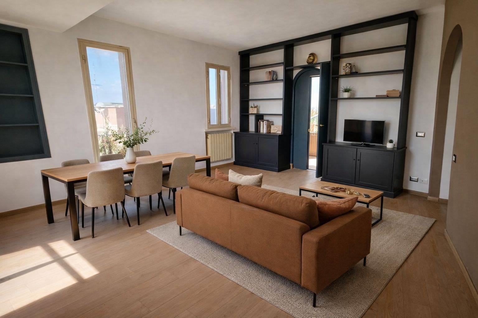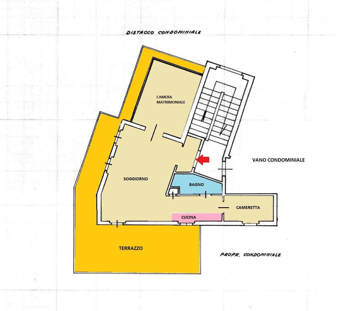 Il punto di forza della proprietà è il terrazzo panoramico vivibile ricco di piante con impianto di irrigazione automatico, che garantisce luminosità e uno sfogo esterno raro per la zona. Sullo stesso pianerottolo è inoltre presente un vano condominiale coperto, particolarmente comodo da utilizzare come zona lavanderia e spazio per stendere.