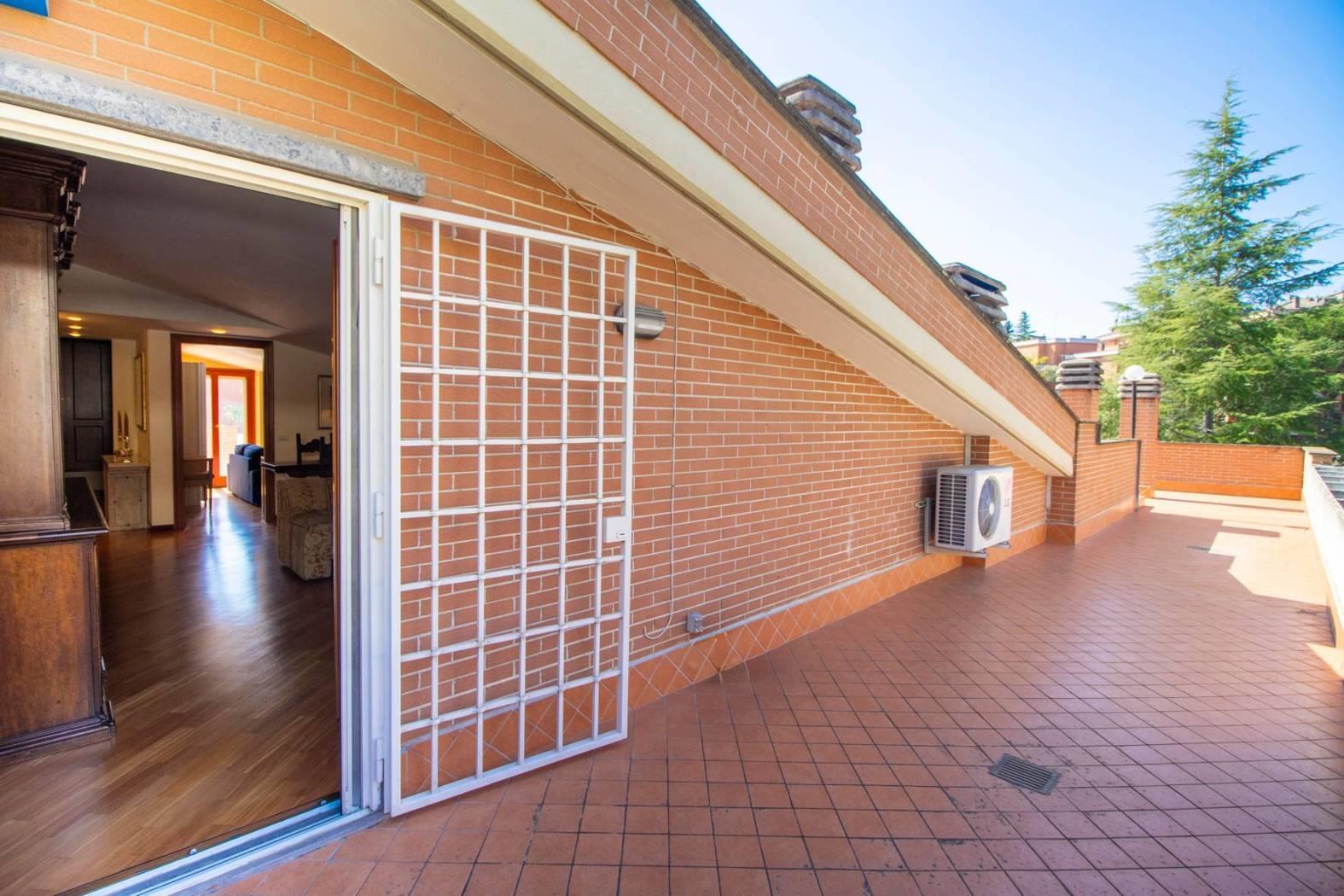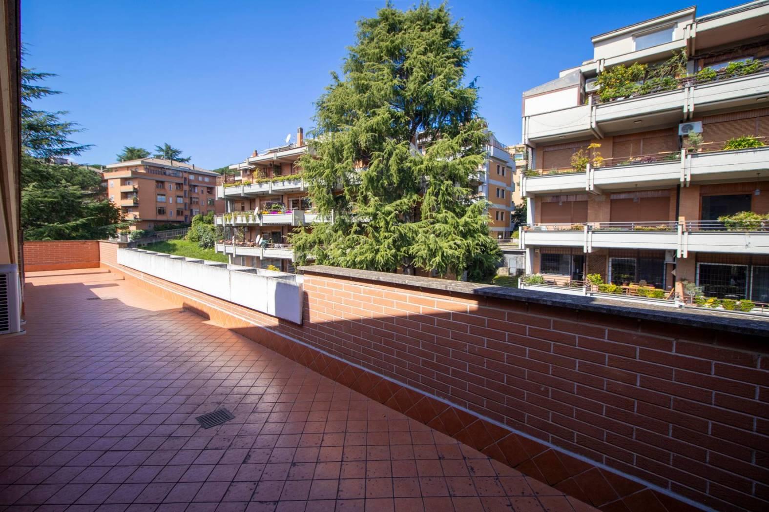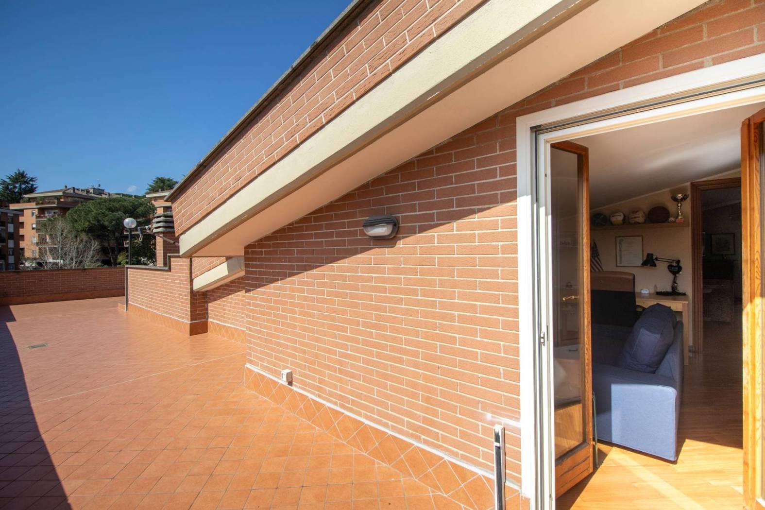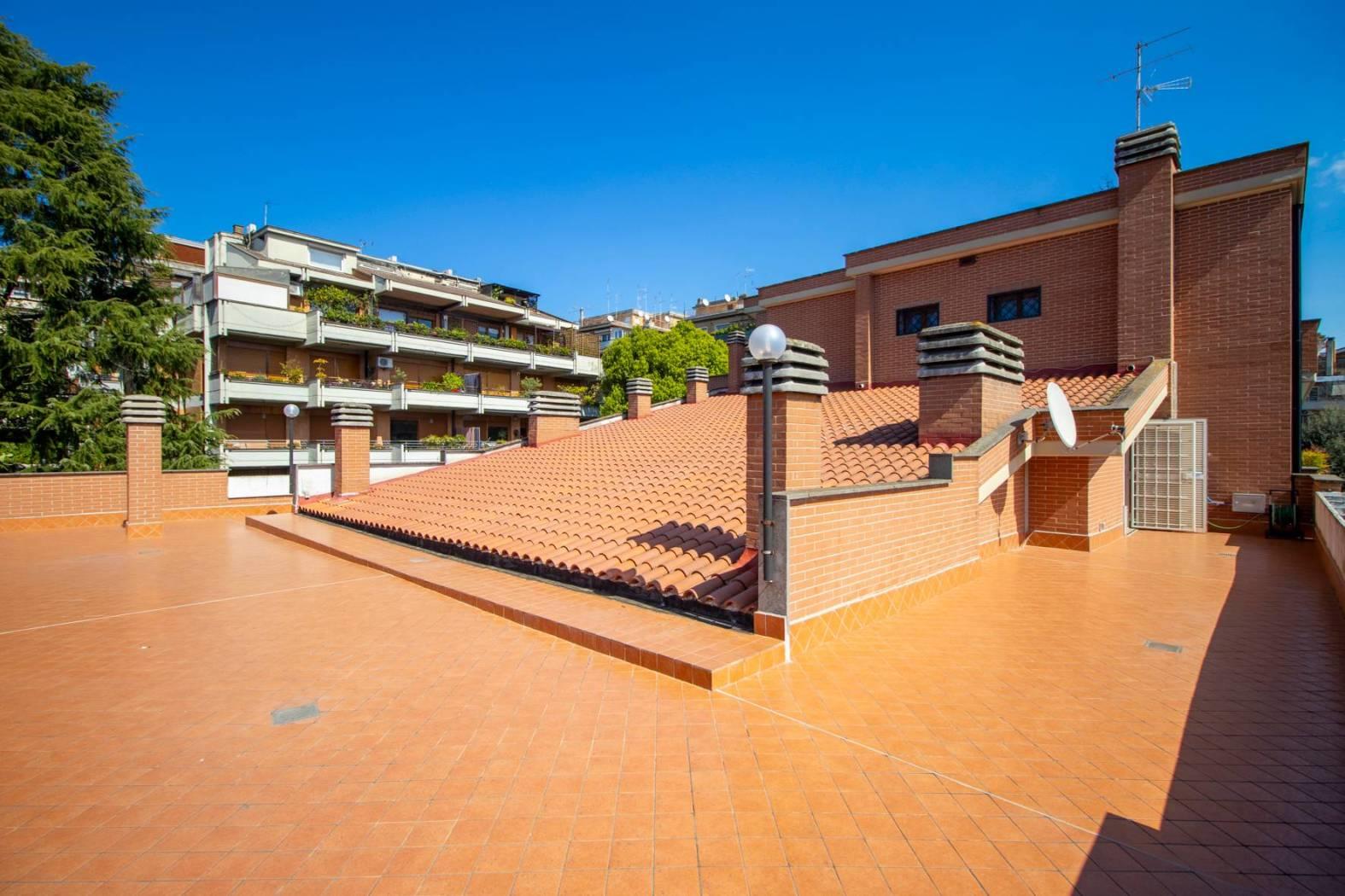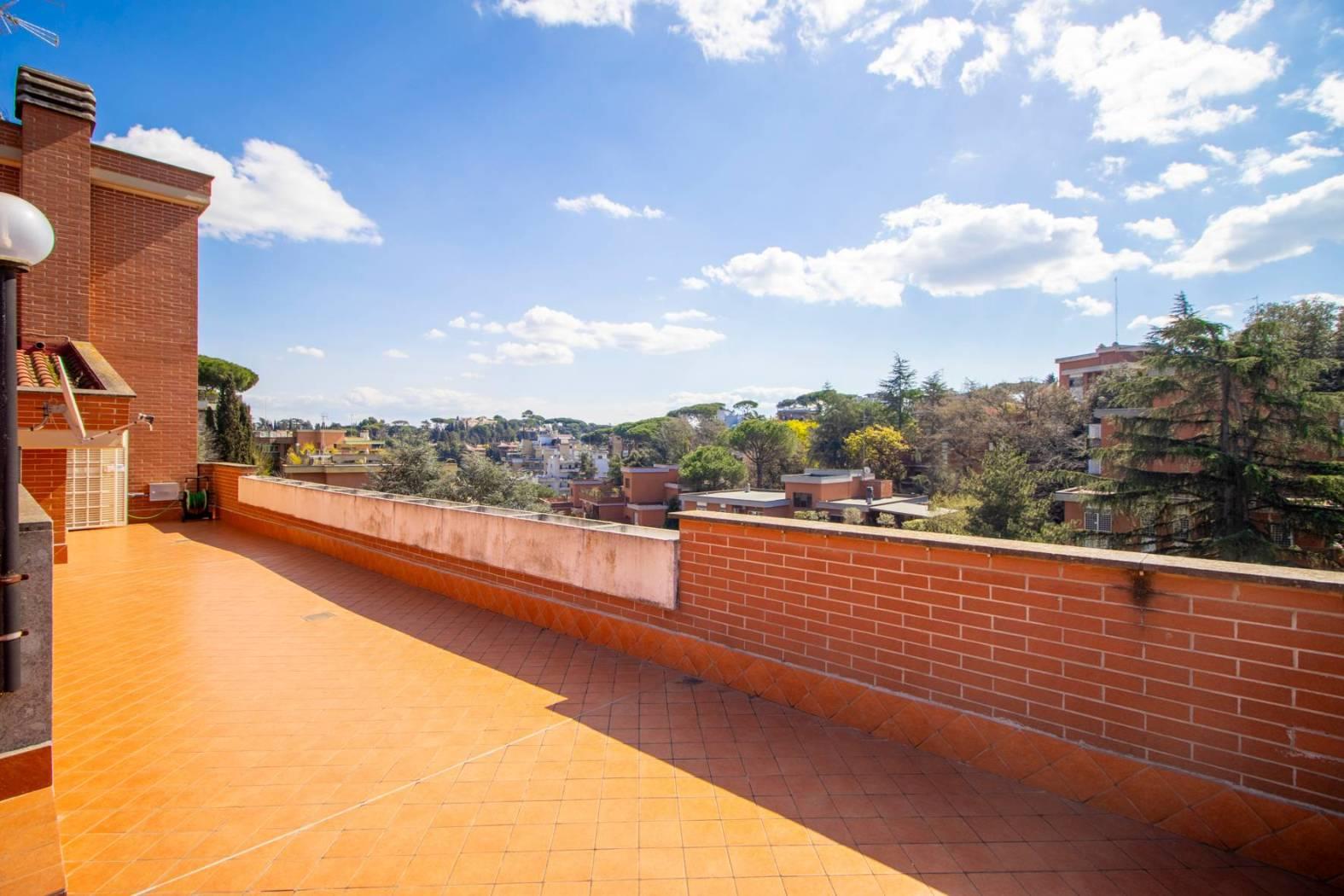 All’interno dell’esclusivo Comprensorio Cortina, nel cuore di Roma Nord, e più precisamente in Via della Mendola, siamo lieti di proporre in vendita un elegante attico finemente ristrutturato, immerso nel verde e caratterizzato da un magnifico terrazzo a livello di circa 120 mq che circonda l’abitazione.