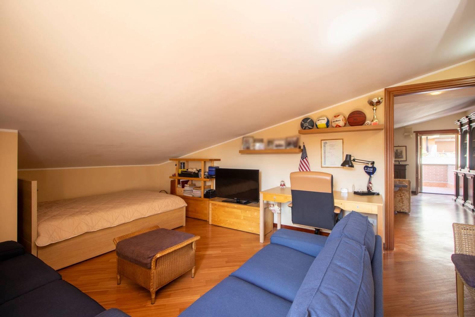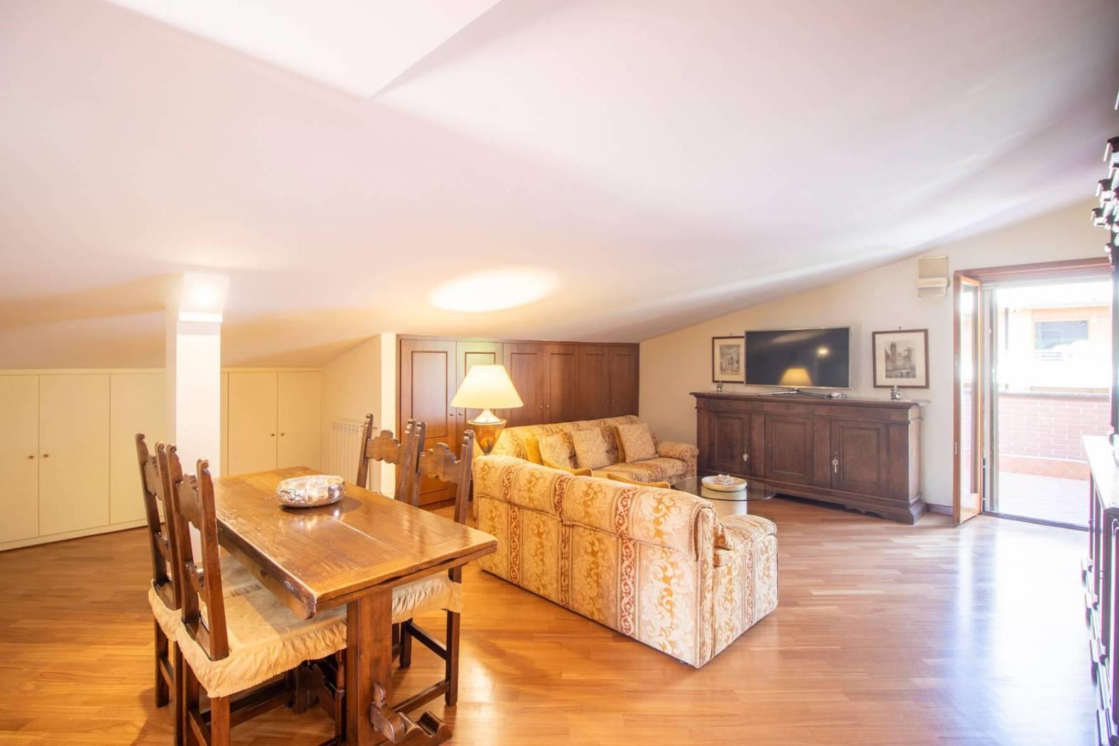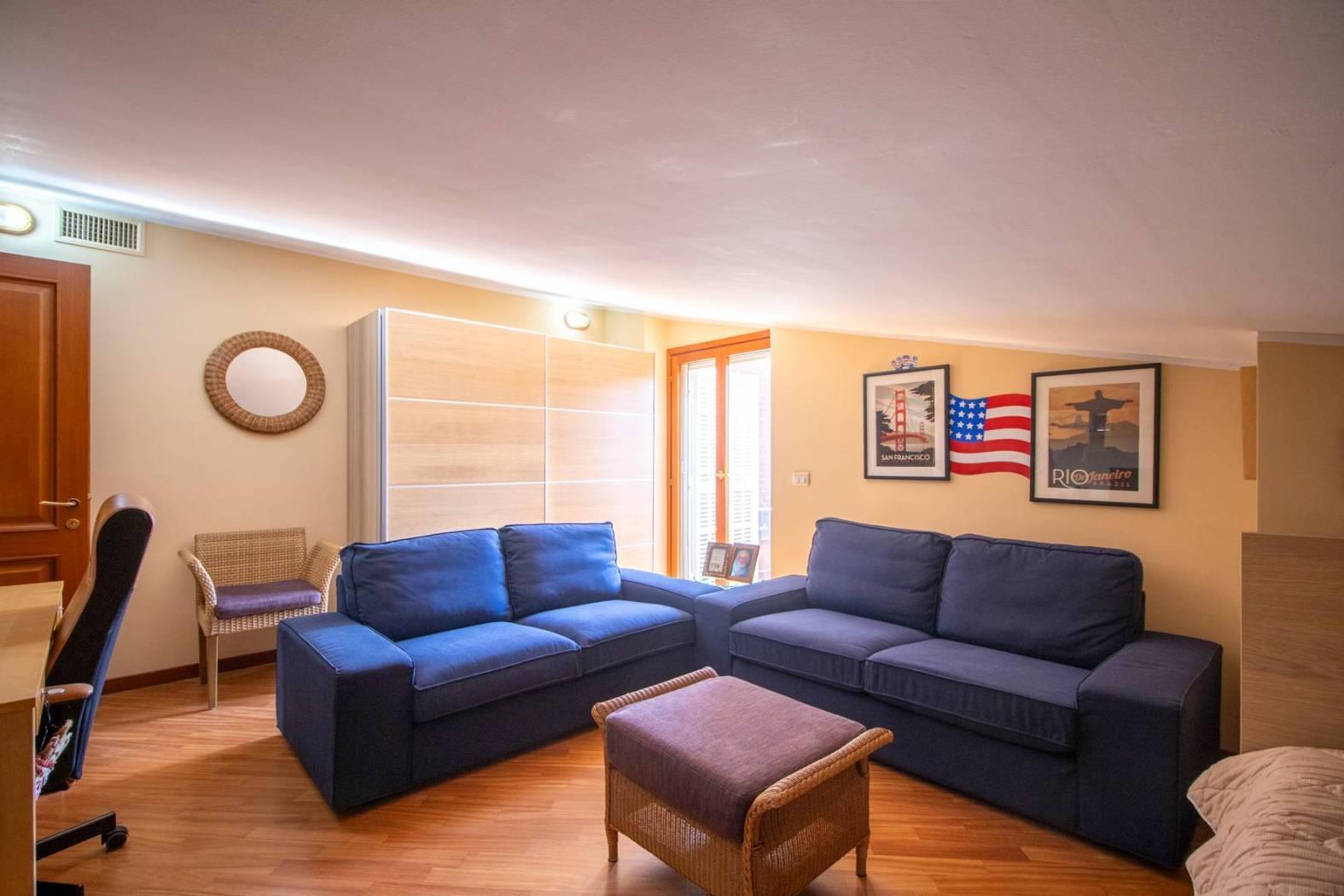 L’appartamento è parzialmente mansardato, ma le altezze dei soffitti consentono di vivere gli spazi con grande comfort; sono stati inoltre realizzati pratici armadi a muro perfettamente integrati.