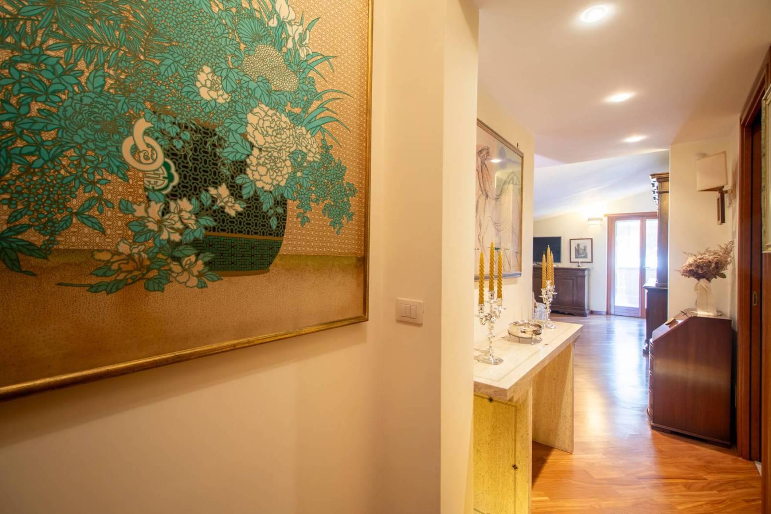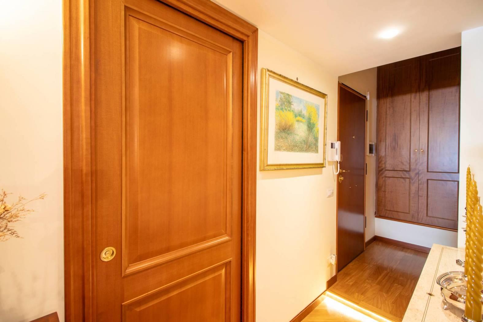 Gli interni sono caratterizzati da finiture eleganti e materiali di qualità: parquet uniforme in tutta la casa, porte in noce chiaro e tonalità calde che conferiscono grande armonia agli ambienti.