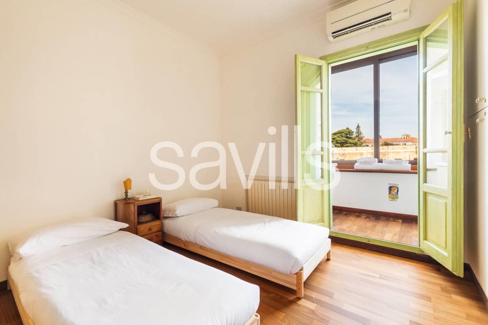 L’immobile è particolarmente luminoso durante tutto l’arco della giornata grazie alla doppia esposizione e gode di una vista davvero rara per la zona. È dotato di parquet, riscaldamento autonomo e aria condizionata.
