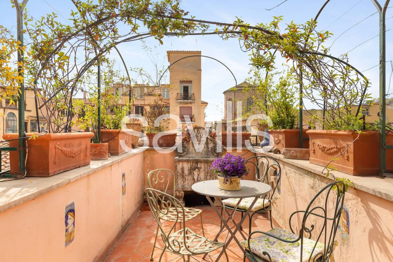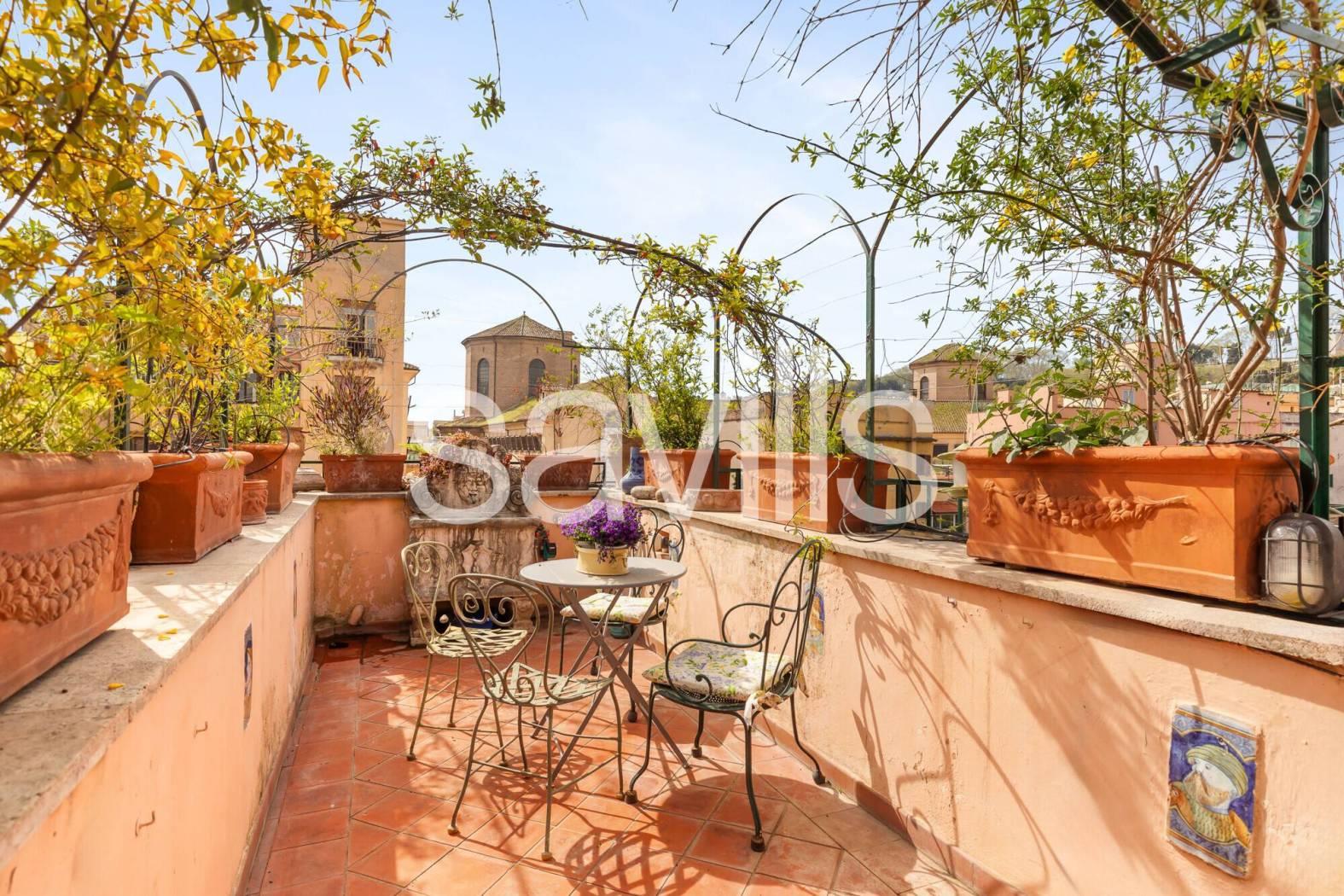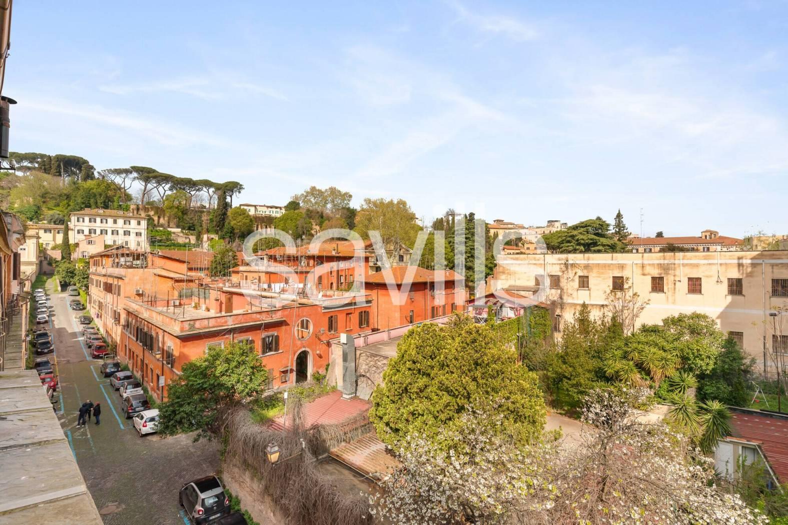 Elemento di assoluto pregio della proprietà è lo splendido terrazzo a livello, particolarmente suggestivo, con una vista aperta e affascinante sul Gianicolo, ideale per momenti di relax in un contesto unico.