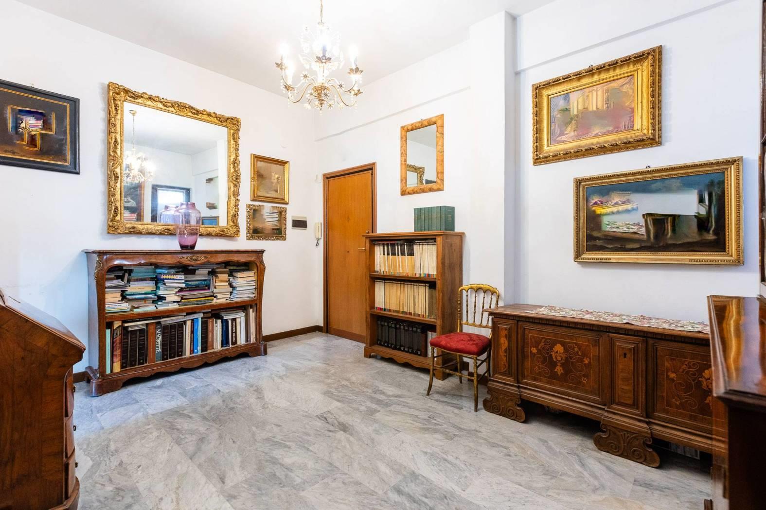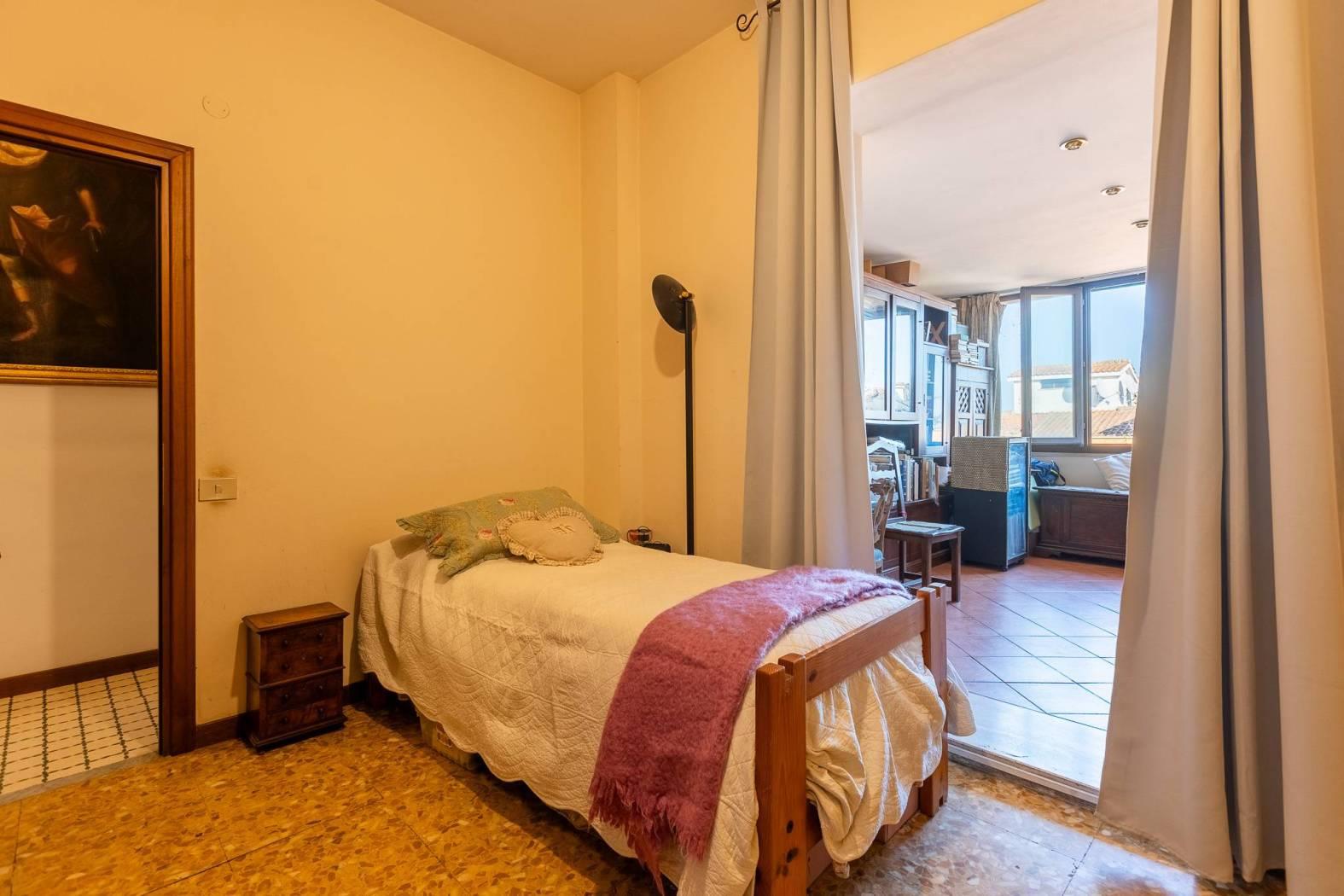 La zona notte è composta da due ampie camere di cui una ha un annesso e spazioso studio che affaccia sulla terrazza, facilmente trasformabile in una terza camera. Il bagno, con finestra e vasca, si trova nel corridoio di fronte alle camere da letto. Grazie alla generosa metratura, l’immobile si presta a diverse soluzioni di personalizzazione, inclusa la possibilità di realizzare un secondo bagno.