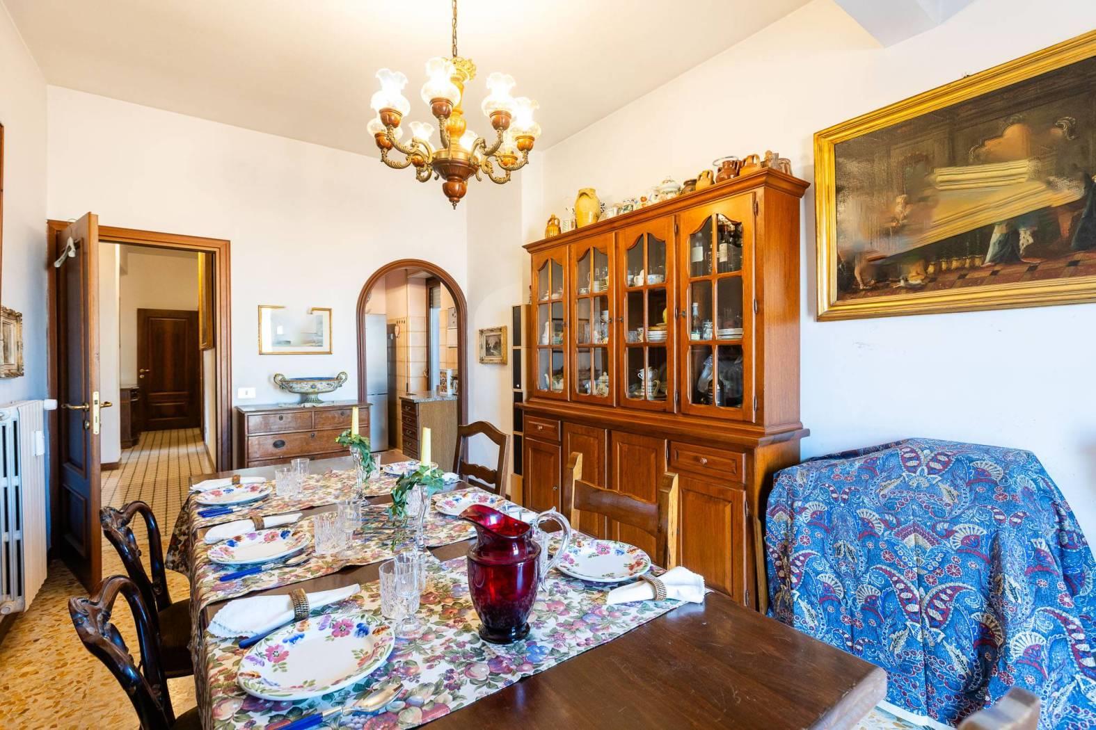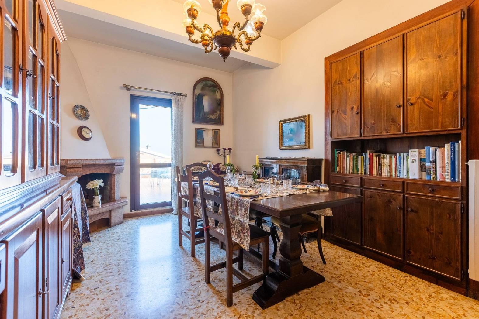 L’ingresso finestrato introduce a una zona giorno accogliente, caratterizzata da un ampio salone con affaccio su un balcone vivibile, perfetto per rilassarsi all’aria aperta. La cucina, spaziosa e funzionale, è arricchita da una balconata con ampio ripostiglio e collegata a una splendida sala da pranzo con camino, che dona un’atmosfera calda e conviviale. Da qui si accede direttamente al terrazzo, un vero angolo di quiete con una vista aperta sulla città esposta a sud est e dotata di una casetta per gli attrezzi in legno.