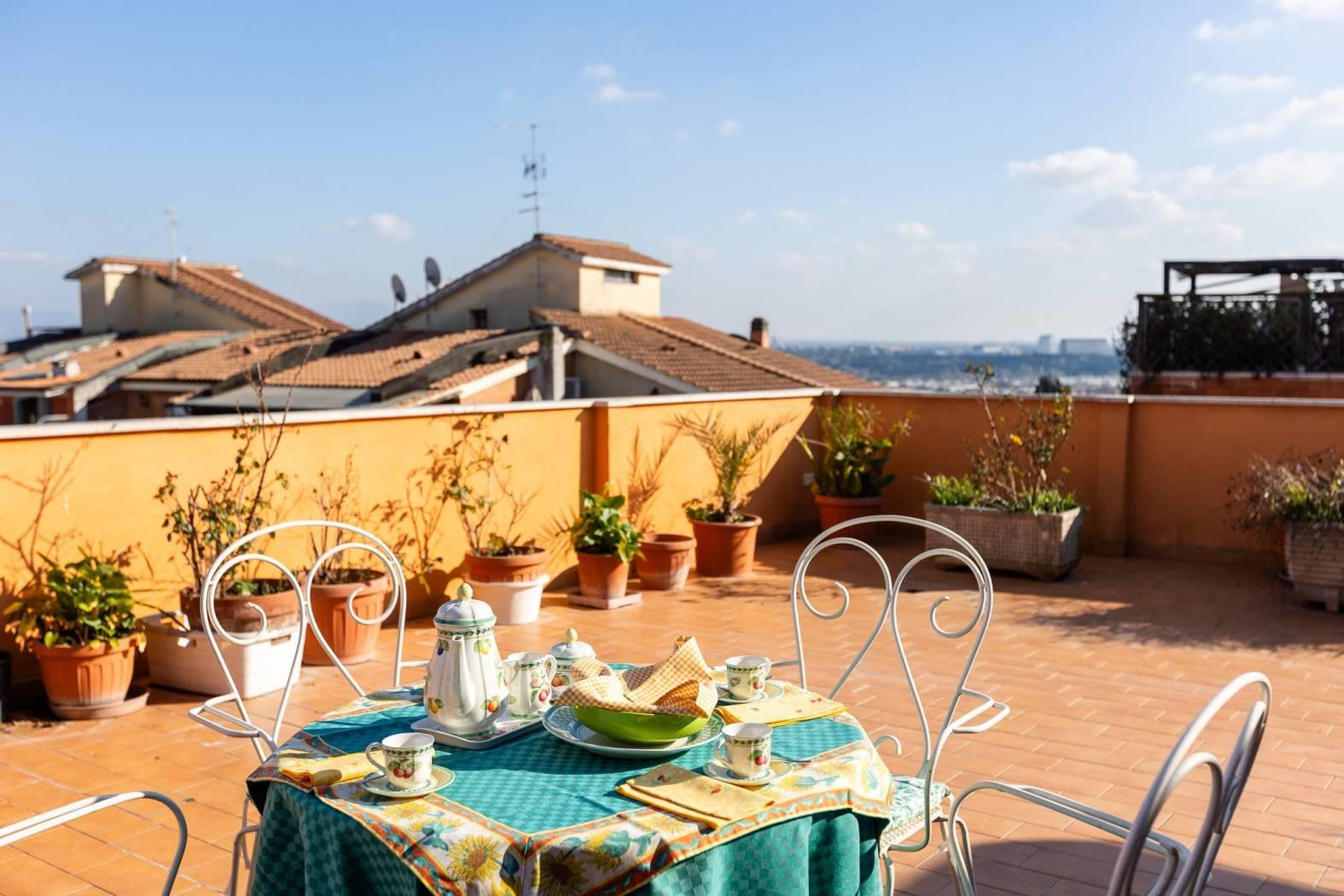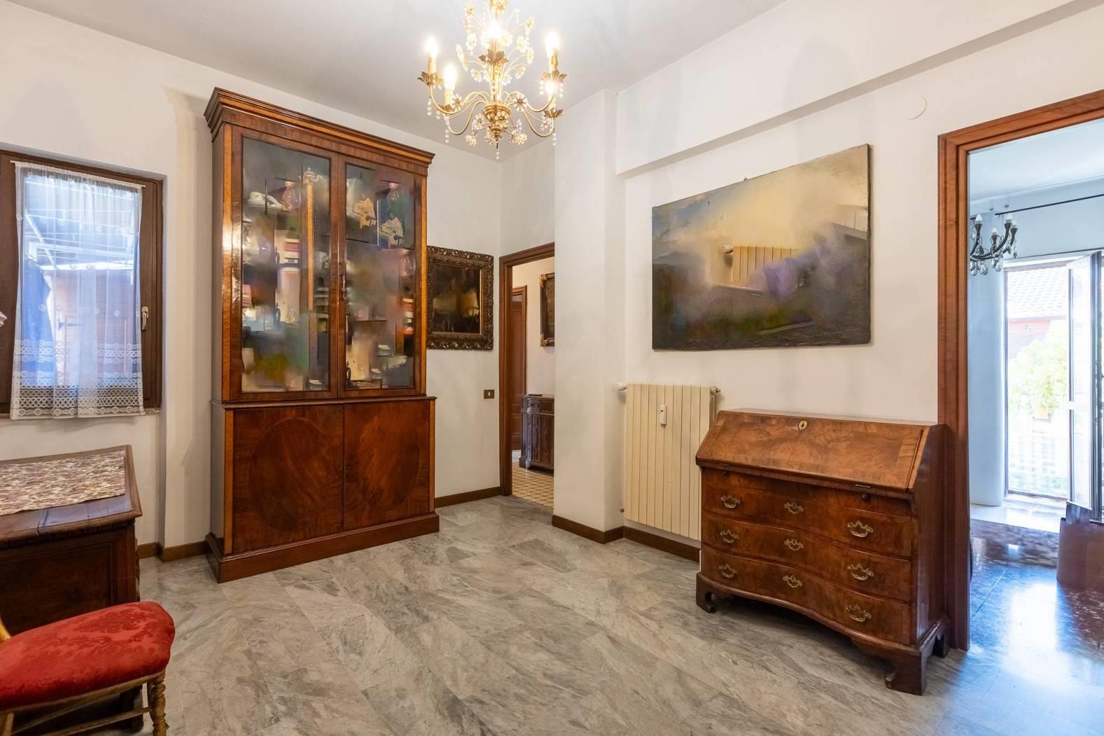 L’attico è dotato di riscaldamento centralizzato con contabilizzatori di calore e impianto di aria condizionata con split autonomi, garantendo così il massimo comfort in ogni stagione. Infine, dal soffitto in corridoio, si accede ad un grande sottotetto come ampio ripostiglio.