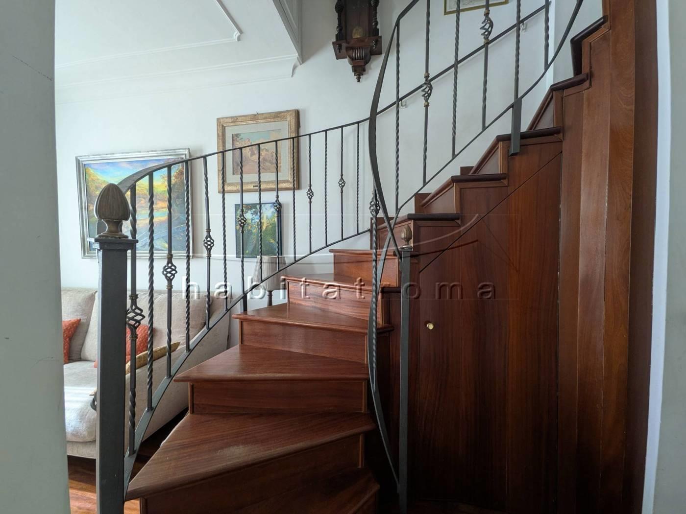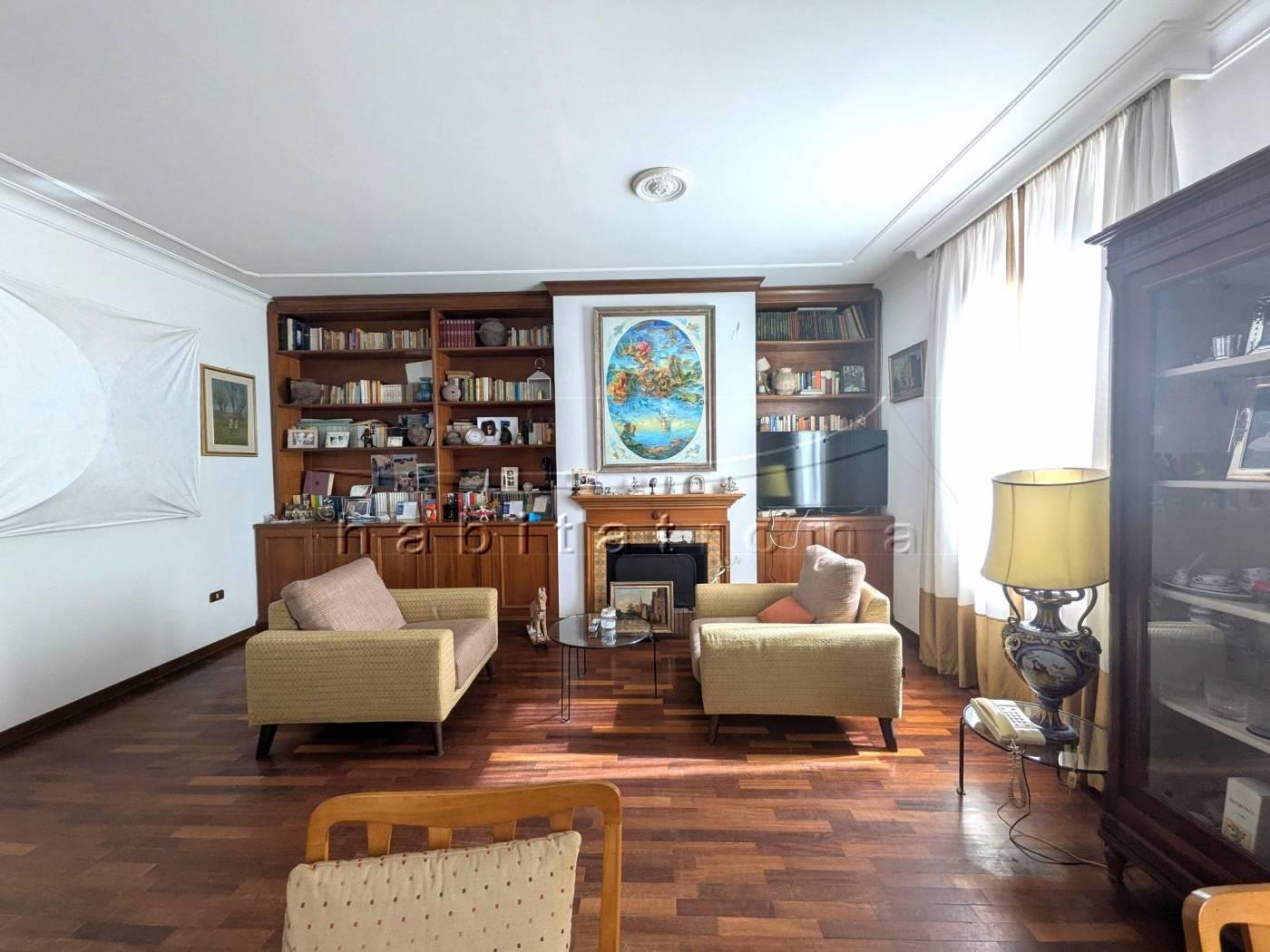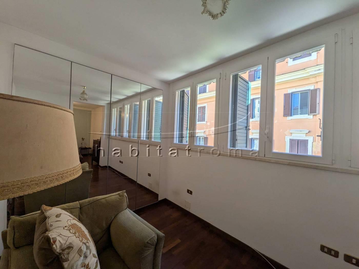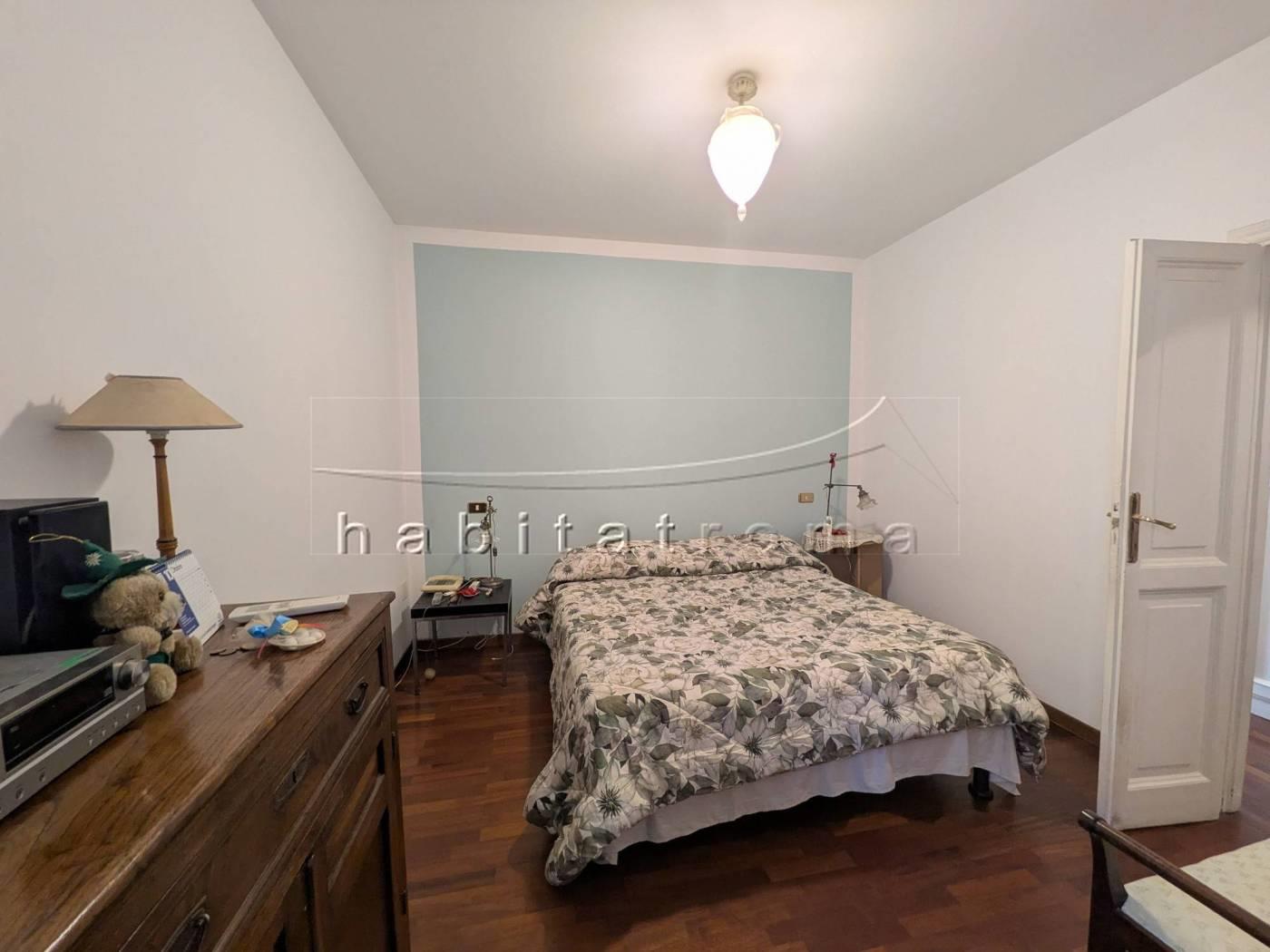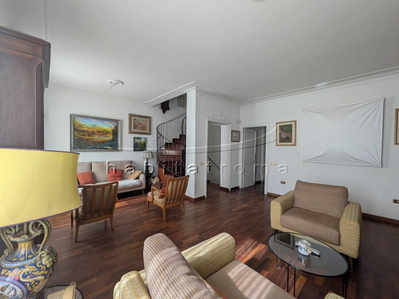 L’ingresso dell’abitazione si trova al primo piano ammezzato, che tramite una scala porta direttamente al piano secondo dello stabile nel quale troviamo il salone con camino, la zona notte composta da una comoda camera da letto con adiacente vano adibito ad armadiature/vestiaire; uno studio, utilizzabile anche come seconda camera da letto, e due bagni.