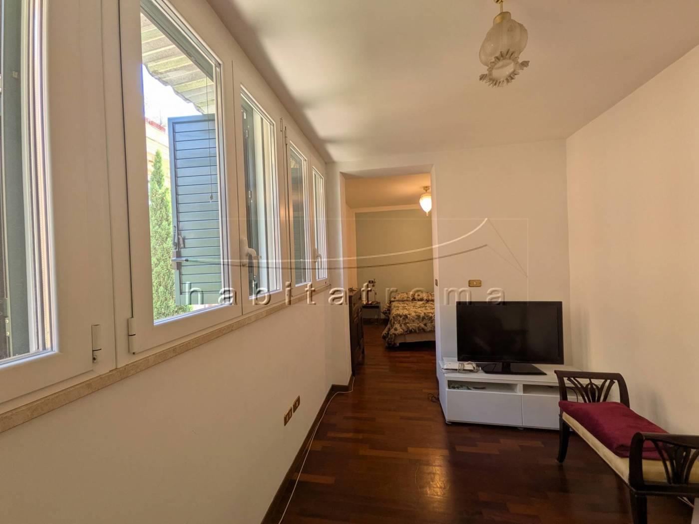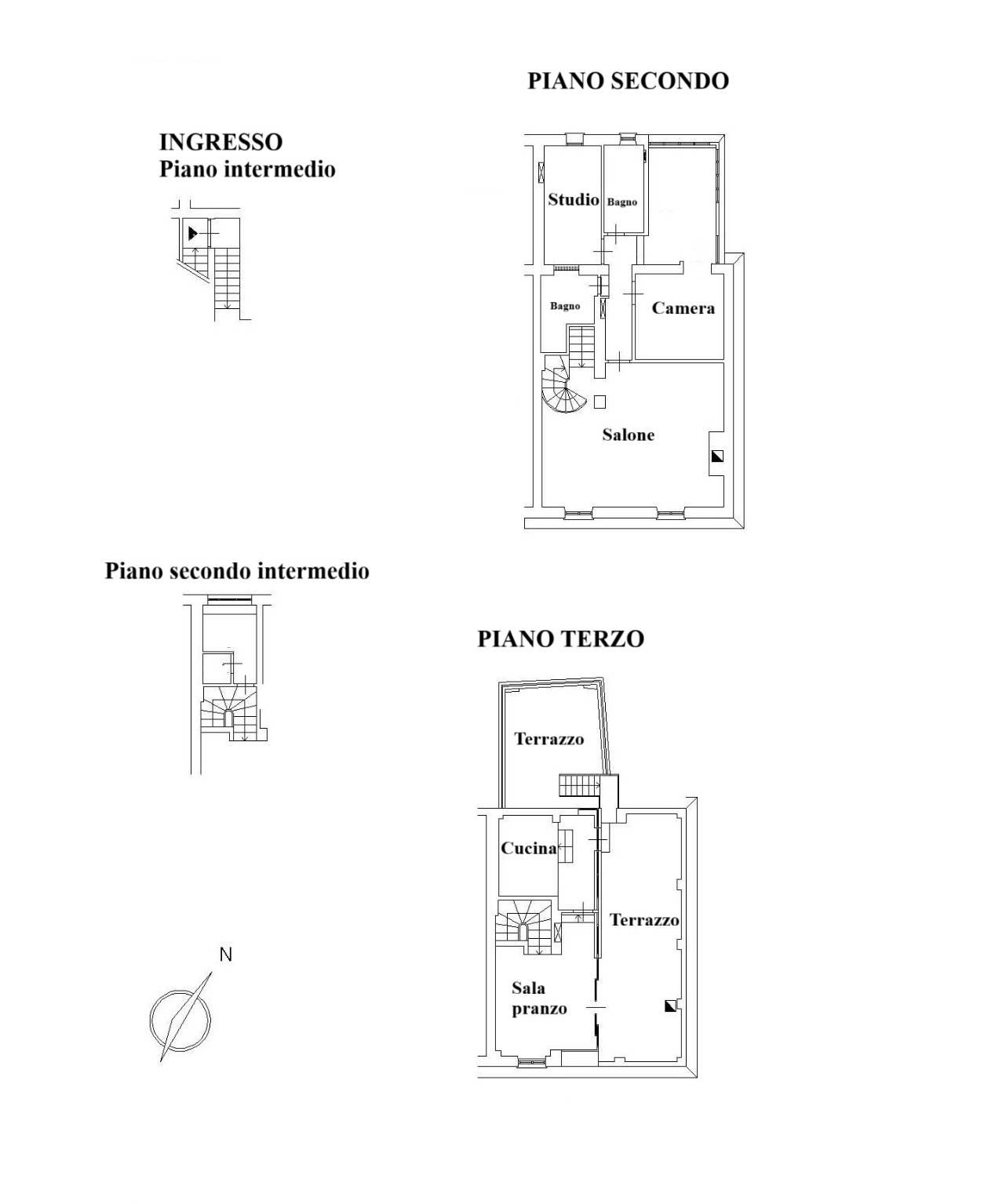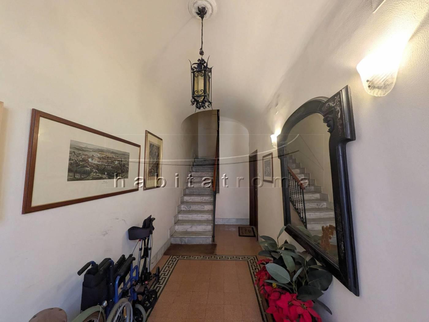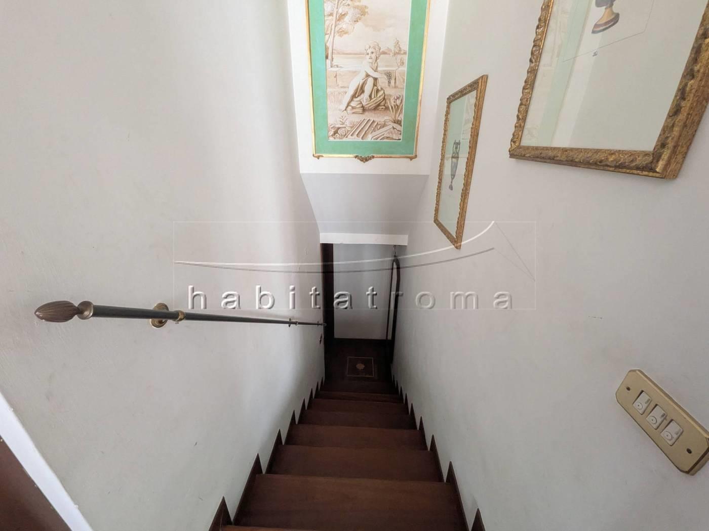 Dal salone si accede al piano ammezzato superiore, dove si trovano una cameretta di servizio ed un piccolo bagno.