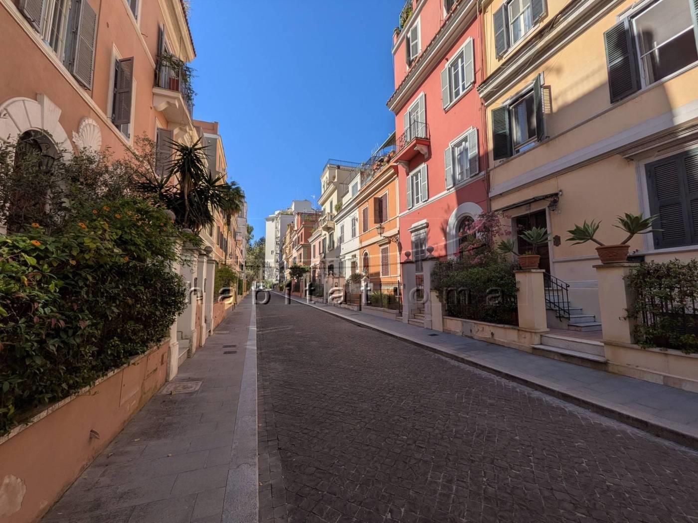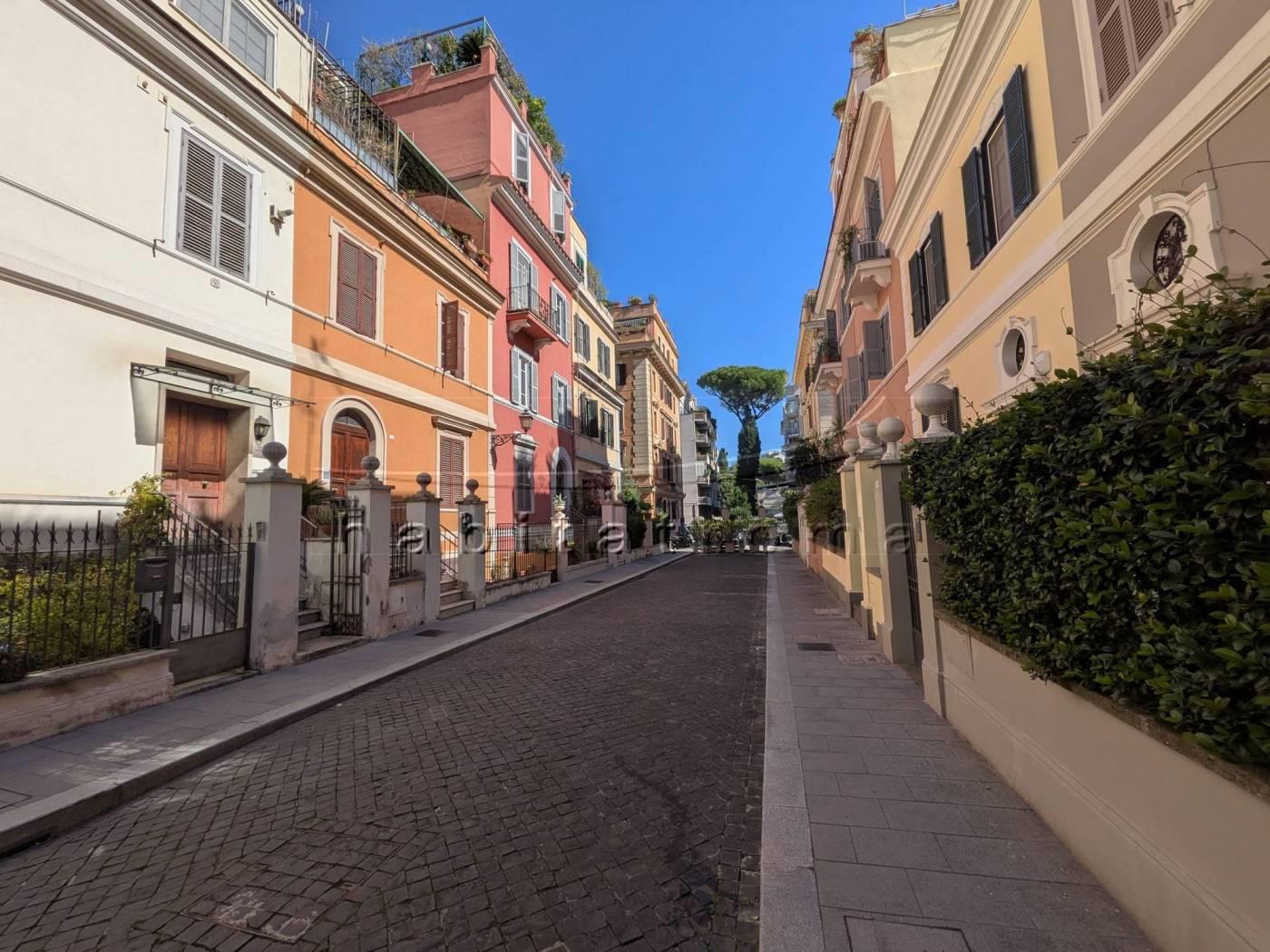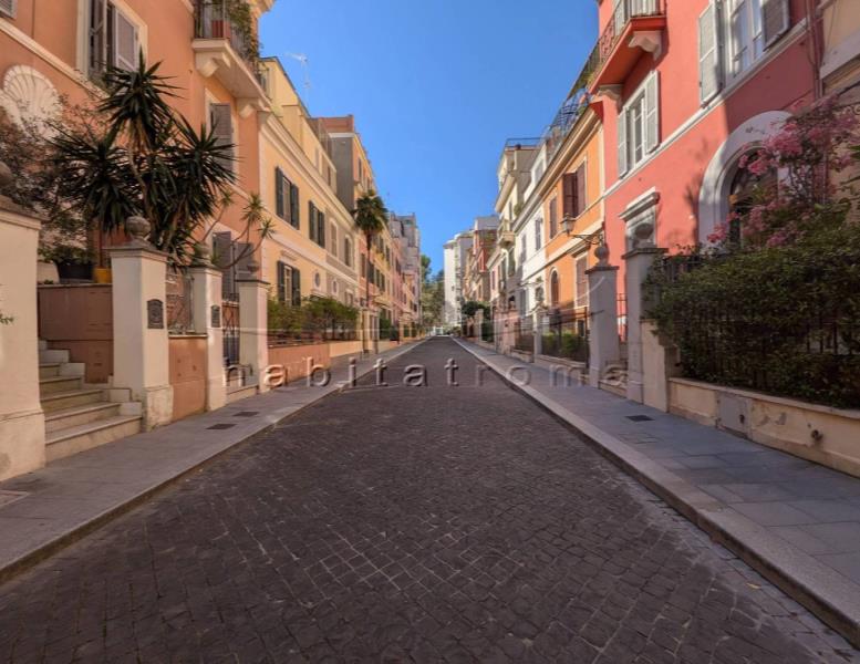 Quartiere Flaminio, tra via del Vignola e via Flaminia; ci troviamo all’interno di una stradina privata e pedonale, fatta di villini bassi e colorati e chiusa da due cancelli in ferro che la proteggono dal caos cittadino.