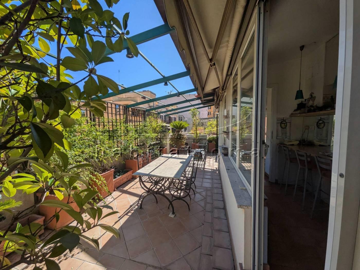 All’ultimo livello si trovano la zona pranzo, la cucina, la splendida terrazza a livello di oltre 25mq, collegata tramite scala esterna ad un’altra terrazza di 20mq, posta al piano ammezzato inferiore.