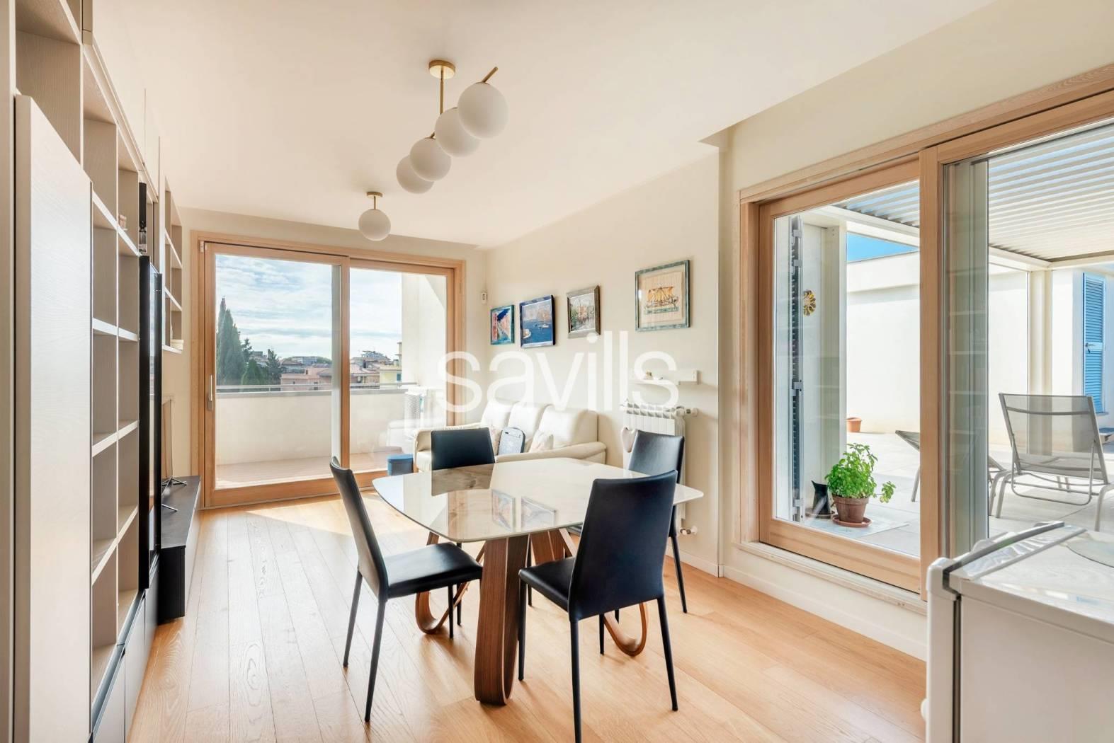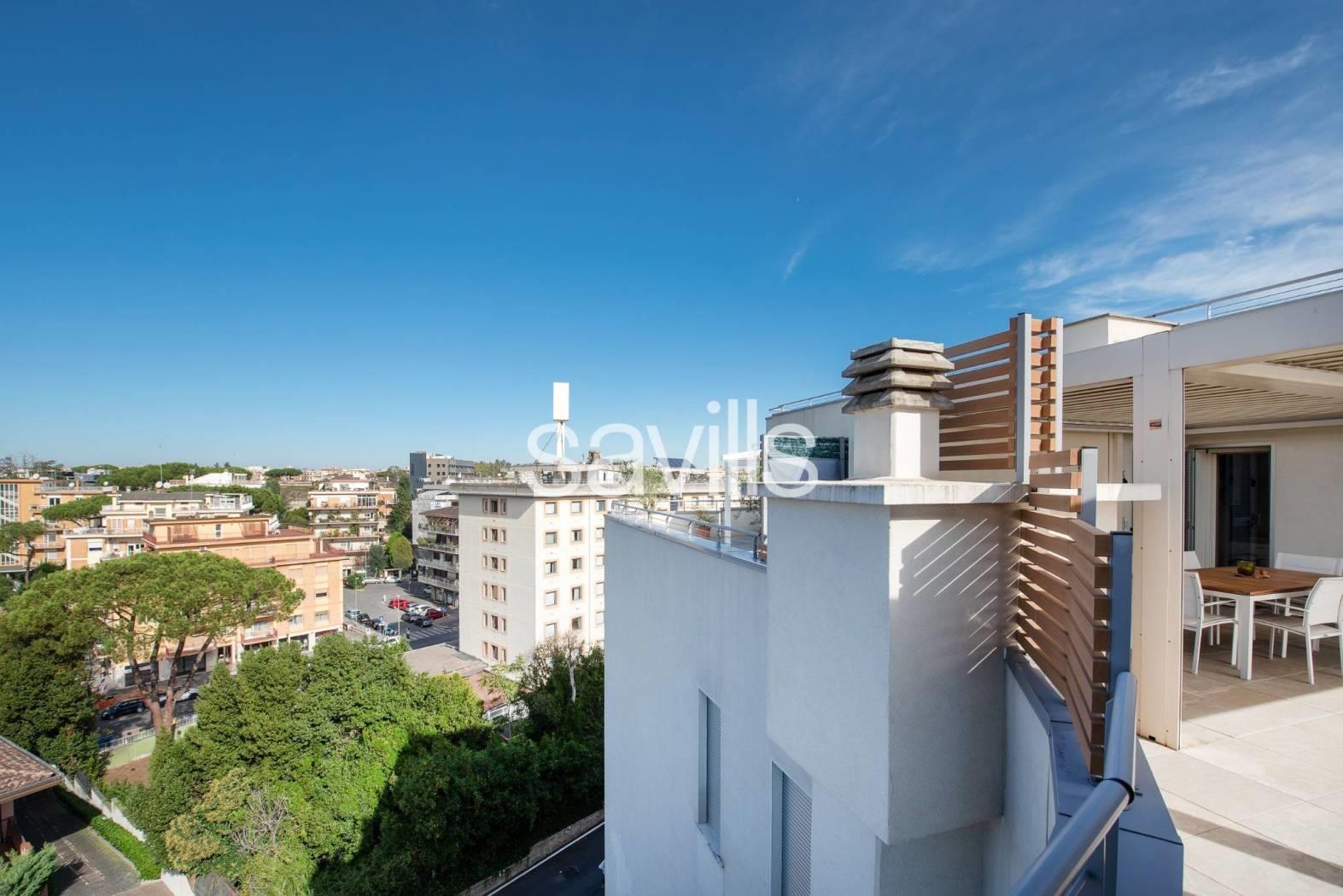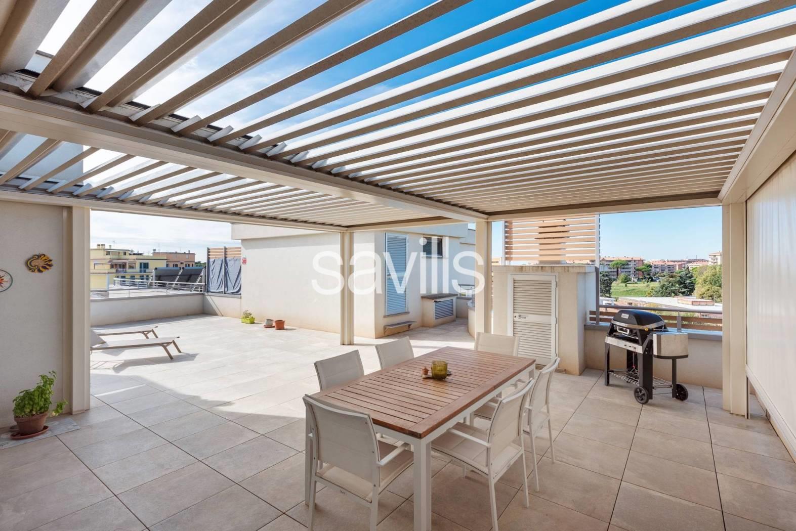 Questo delizioso attico posto al quinto piano con ascensore si trova all’interno dell’esclusivo complesso residenziale “Aurelia Green Park”, a pochi passi da Villa Carpegna e Piazza Irnerio.