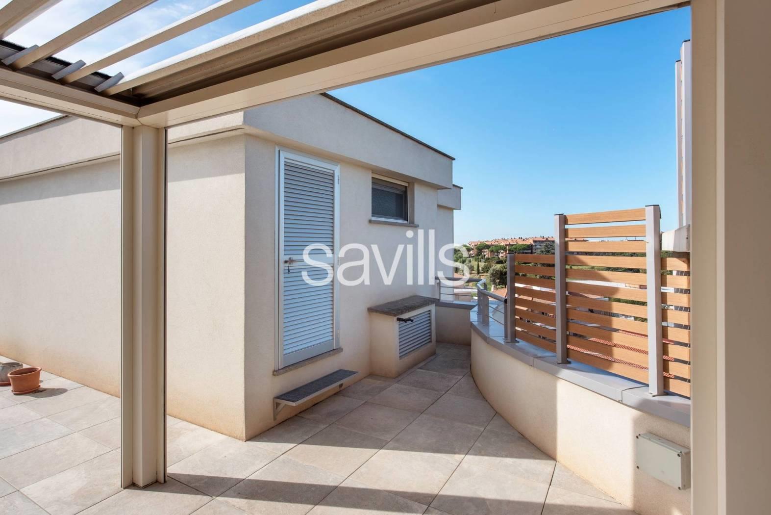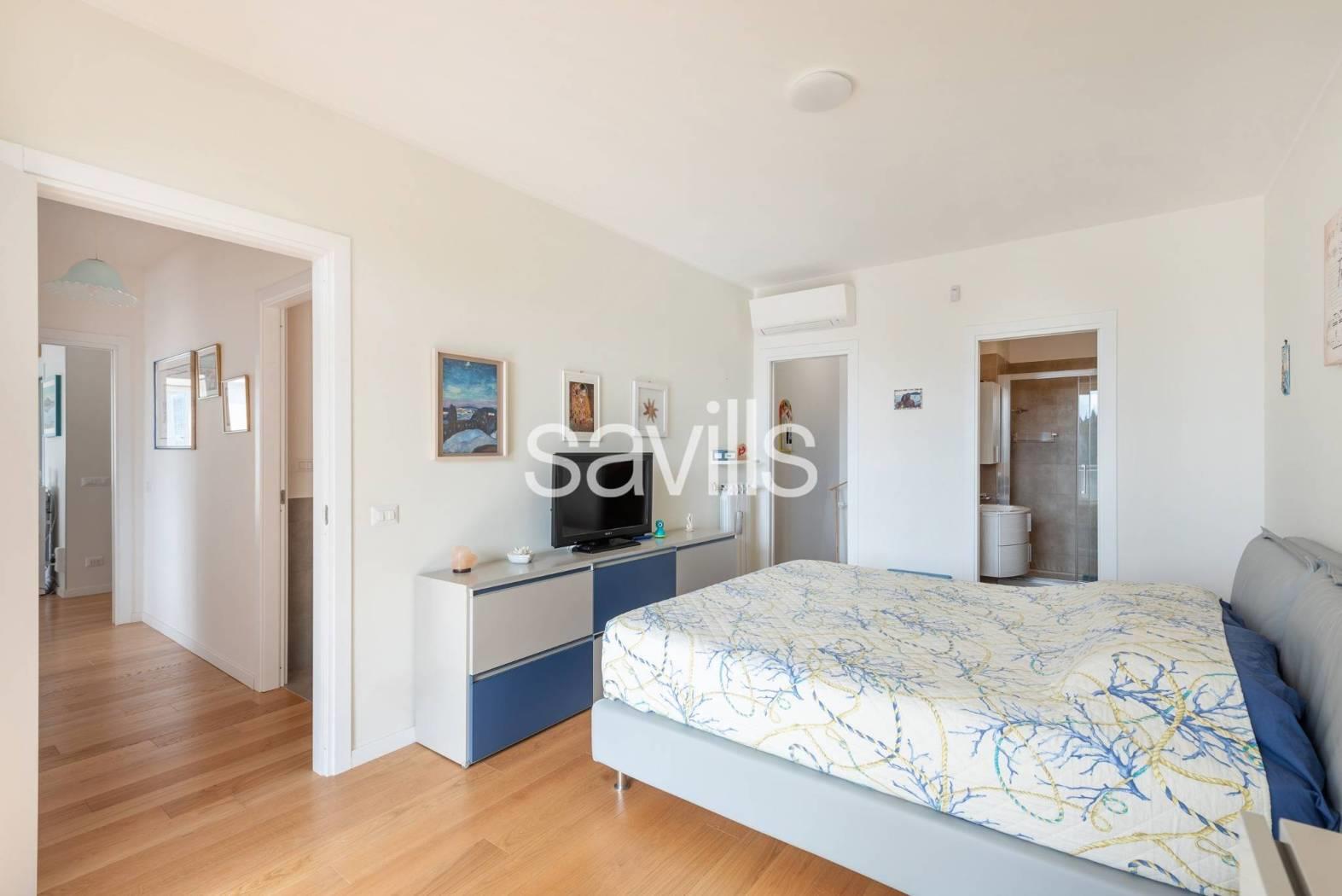 La terrazza panoramica, vero punto di forza della proprietà, offre una vista aperta sul verde circostante. È arricchita da una pergola che consente di vivere appieno gli spazi esterni in ogni stagione, perfetta per momenti di relax o convivialità. Nella stessa terrazza si trova inoltre un’ampia stanza di servizio, ideale come spazio hobby o per uso deposito.