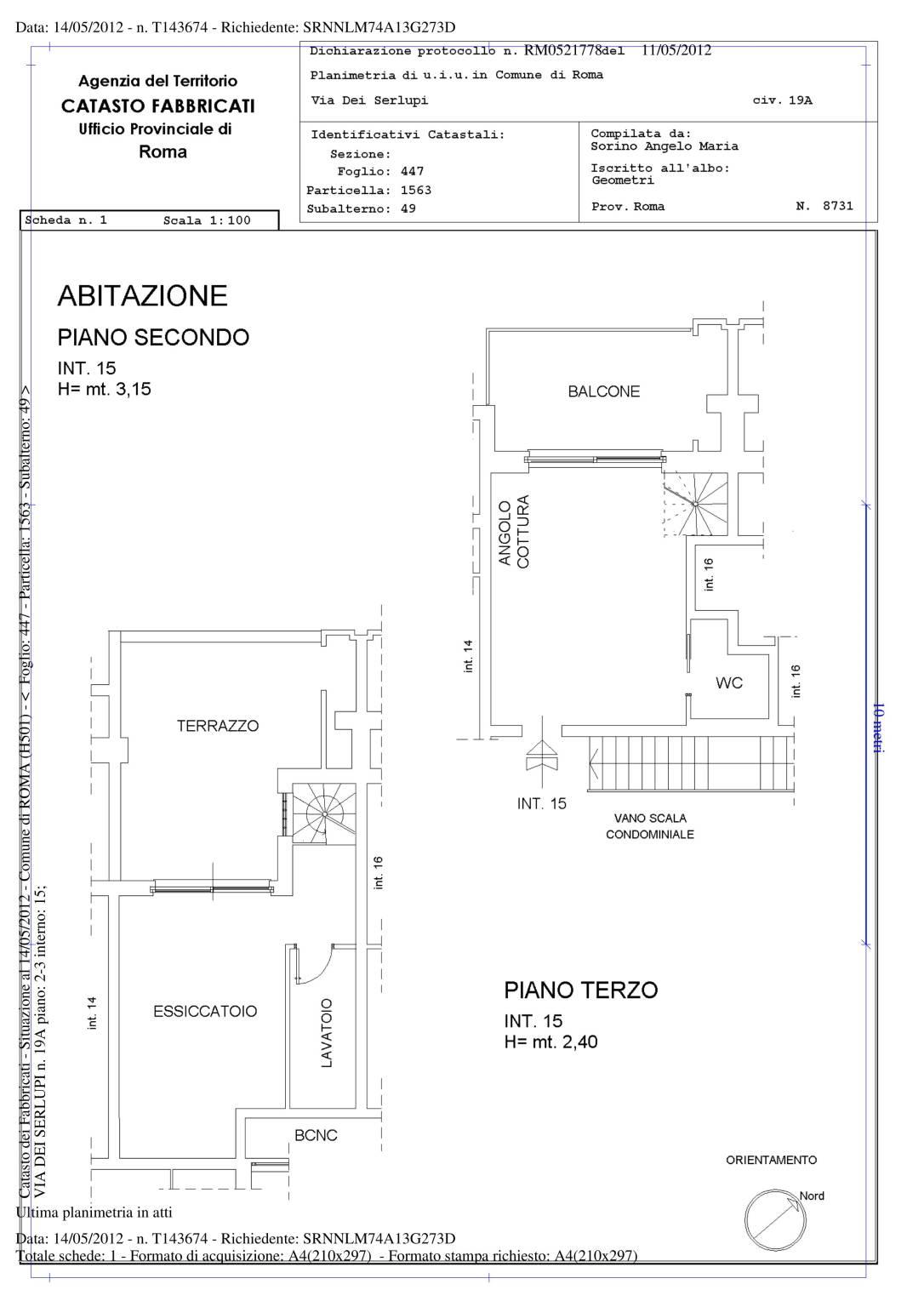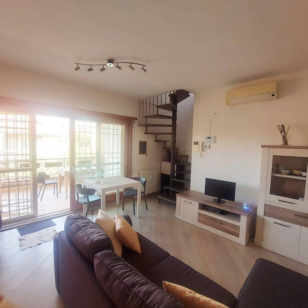 Via dei Serlupi, in comprensorio di recente costruzione nel verde della valle dei Casali, proponiamo la vendita di un appartamento su due livelli: piano attico composto da salone con cucina a vista compresa di arredo, bagno e terrazzo panoramico 25 mq; piano sovrastante, collegato con comoda scala a chiocciola, della stessa metratura con altro terrazzo di 30 mq e lavatoio completa la proprietà un BOX AUTO in garage, collegato con ascensore, 20 mq. L'appartamento è ottimamente rifinito e finemente arredato: Finestre con Infissi in legno, vetro termico e serrande elettriche Ceramiche di pregio Riscaldamento centralizzato con gestione autonoma e climatizzazione Fornitura di acqua calda condominiale h. 24 Armadi a muro Impianto antifurto e porta blindata Classe energetica B