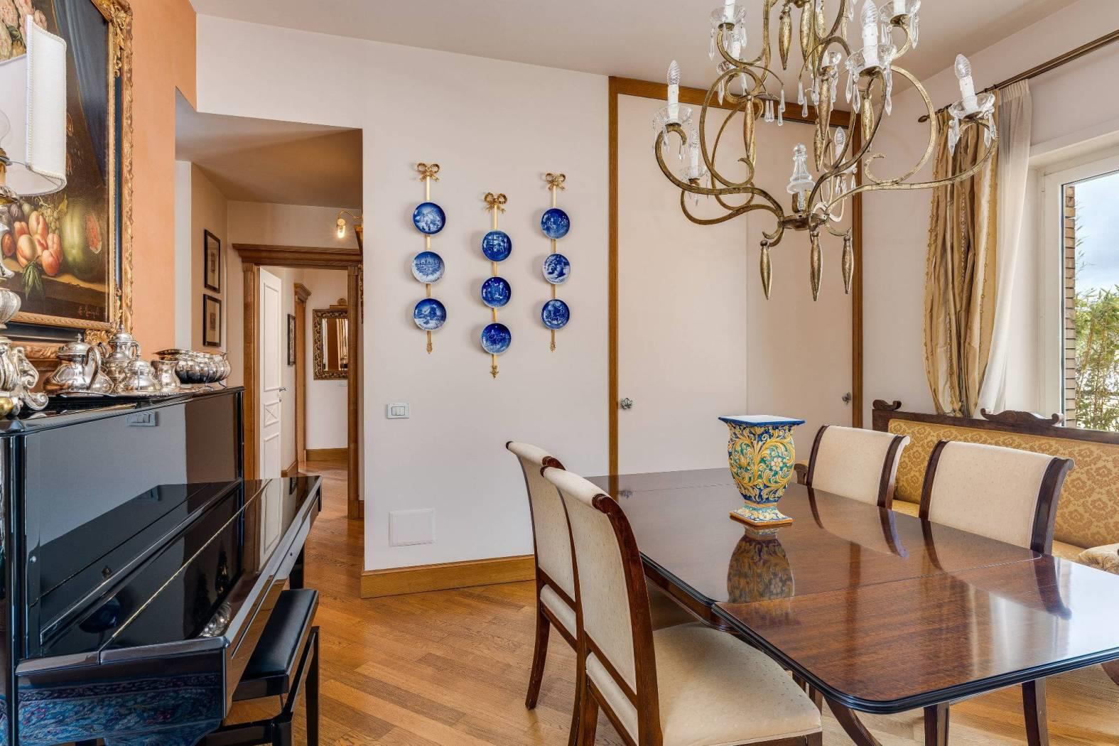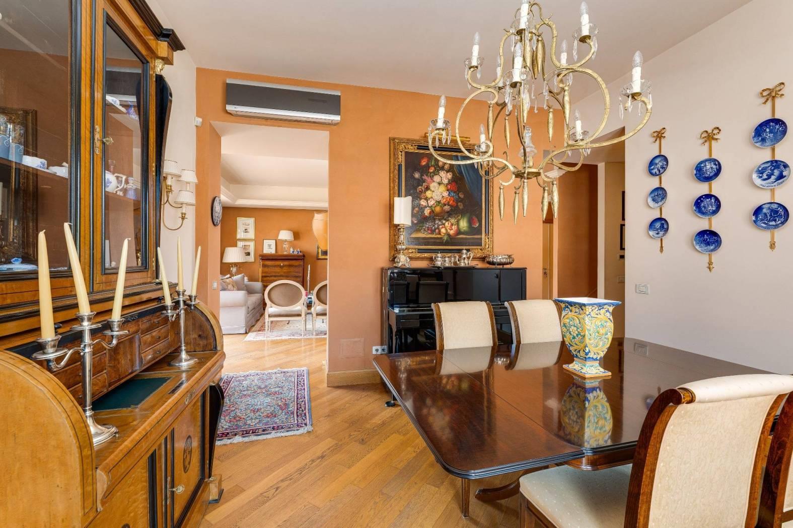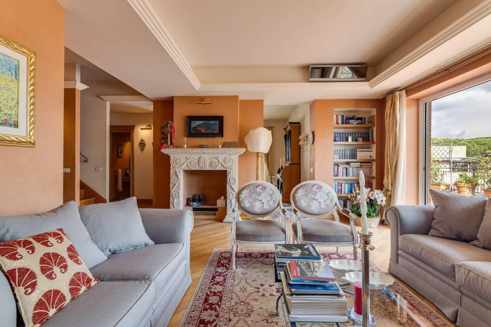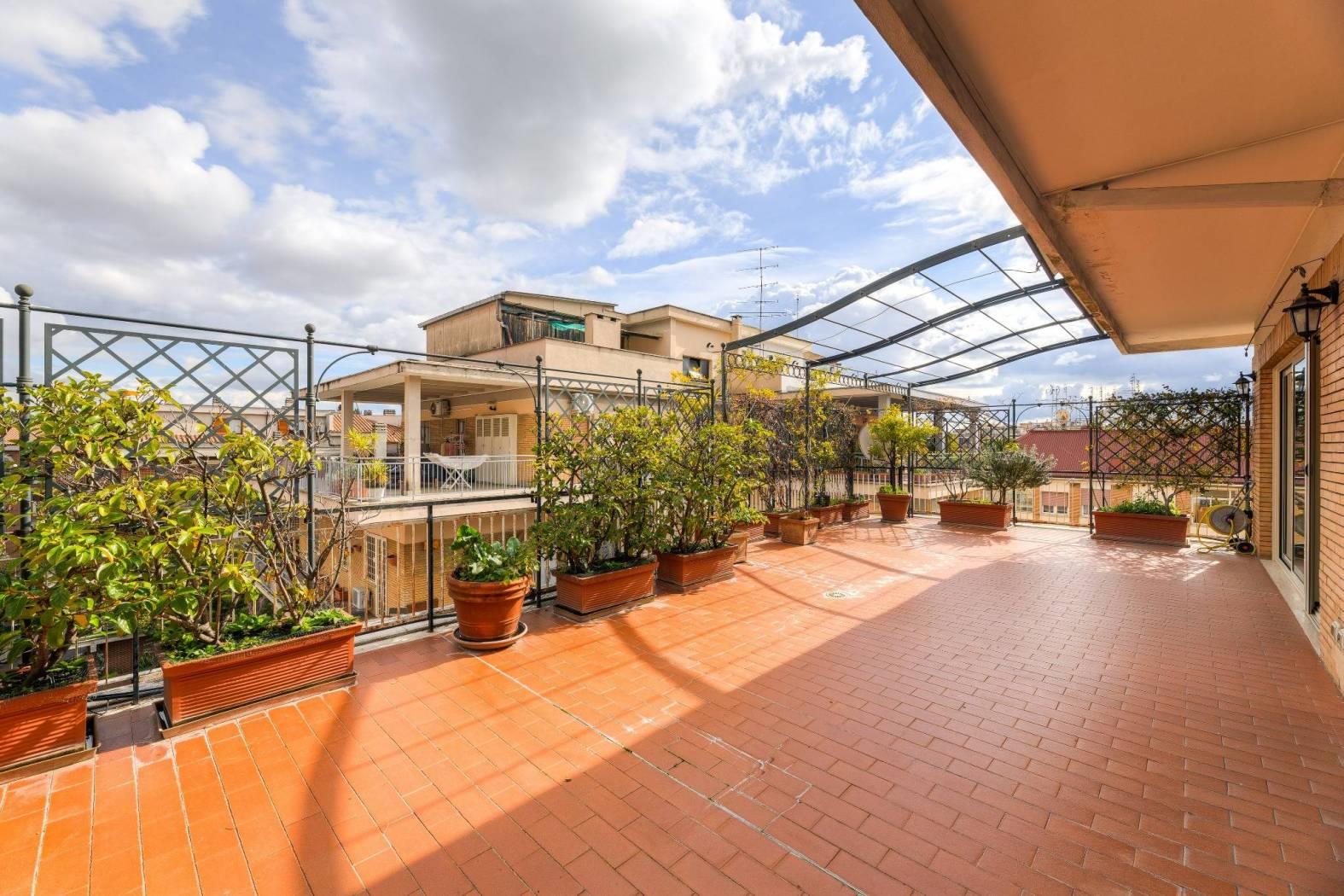 Nel cuore di una delle aree più riservate e ambite del quartiere Aurelio, in Via Enrico Besta, proponiamo in vendita un prestigioso attico e superattico di rappresentanza, inserito in una signorile palazzina in cortina, ai piani quarto e quinto. La proprietà si estende su una superficie di circa 247 mq, offrendo ambienti ampi, eleganti e perfettamente distribuiti, pensati per chi desidera un’abitazione di alto profilo, dove comfort e stile si incontrano. Il quarto piano accoglie con un doppio ingresso che conduce a un importante soggiorno di rappresentanza, impreziosito da un raffinato camino con cornice originale in marmo bianco di Ragusa del ’700, vera opera d’arte che conferisce unicità e carattere all’ambiente. Seguono una luminosa sala da pranzo, due camere da letto, due bagni, una grande cucina abitabile con zona lavanderia e balcone, oltre a un comodo ripostiglio. Dal soggiorno si accede a uno splendido terrazzo vivibile, elegantemente attrezzato con tende parasole, ideale per ricevimenti, cene all’aperto e momenti di assoluto relax. Le camere da letto godono entrambe di accesso agli spazi esterni. Il quinto piano, collegato da una comoda scala interna, ospita un’ampia zona disimpegno con area studio, due ulteriori camere da letto, due bagni di cui uno en suite con vasca idromassaggio – un locale tecnico, un grande ripostiglio e un balcone riservato. Grazie alla distribuzione degli spazi, il piano superiore si presta anche a un eventuale frazionamento rispetto al resto della proprietà, rappresentando una soluzione ideale per chi desideri creare un’unità indipendente, uno spazio per ospiti o uno studio professionale. L’immobile è rifinito con materiali di altissimo livello: parquet in tutti gli ambienti, armadi realizzati su misura, infissi di nuova generazione, serrande elettriche e zanzariere. Il comfort è garantito da riscaldamento autonomo e aria condizionata. La tripla esposizione e gli ampi terrazzi, che abbracciano l’abitazione, regalano una straordinaria luminosità naturale, valorizzando ogni ambiente e creando una continuità perfetta tra interno ed esterno; i terrazzi saranno inoltre oggetto di completa ristrutturazione a cura e spese della proprietà. La posizione, in una via privata e silenziosa, rappresenta un perfetto equilibrio tra riservatezza e comodità: a pochi passi si trovano collegamenti, fermate metro e tutti i principali servizi. La vicinanza con strutture di eccellenza come il Policlinico Gemelli e l’IDI rende questa soluzione ideale anche per professionisti e dirigenti. Una residenza esclusiva, pensata per chi ricerca spazio, eleganza e qualità assoluta, in uno dei contesti più apprezzati della zona. Per info contattare il numero 06.32.65.06.95 / 331.77.90.963.