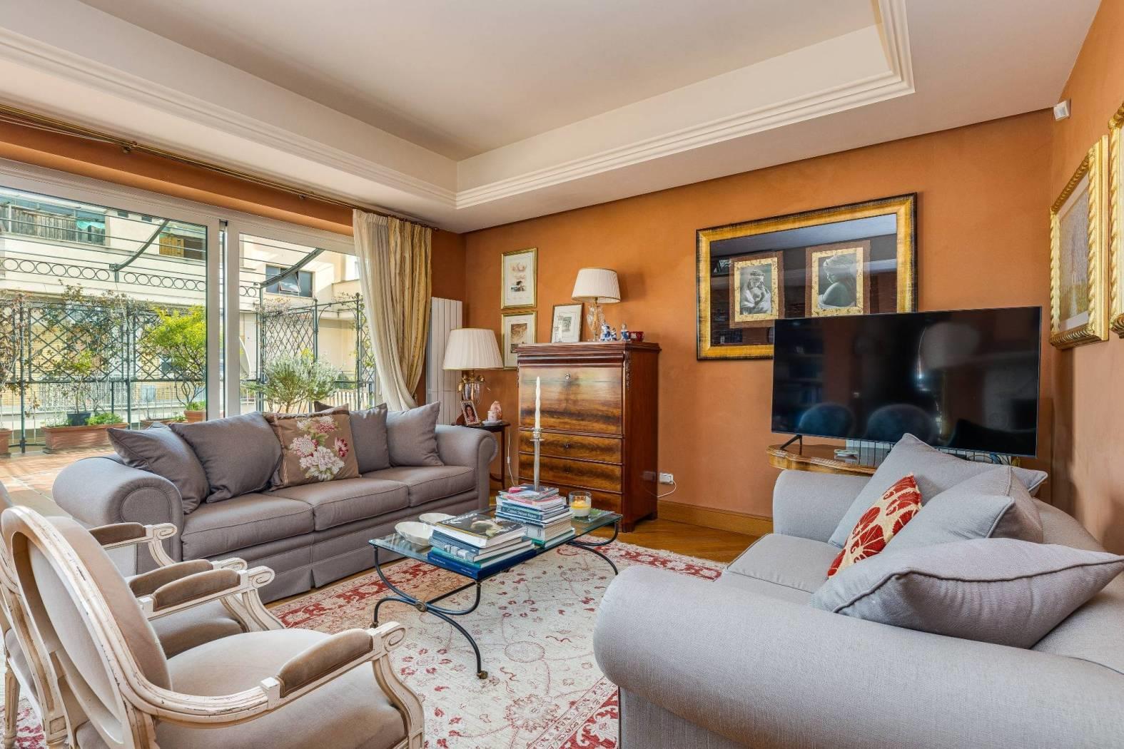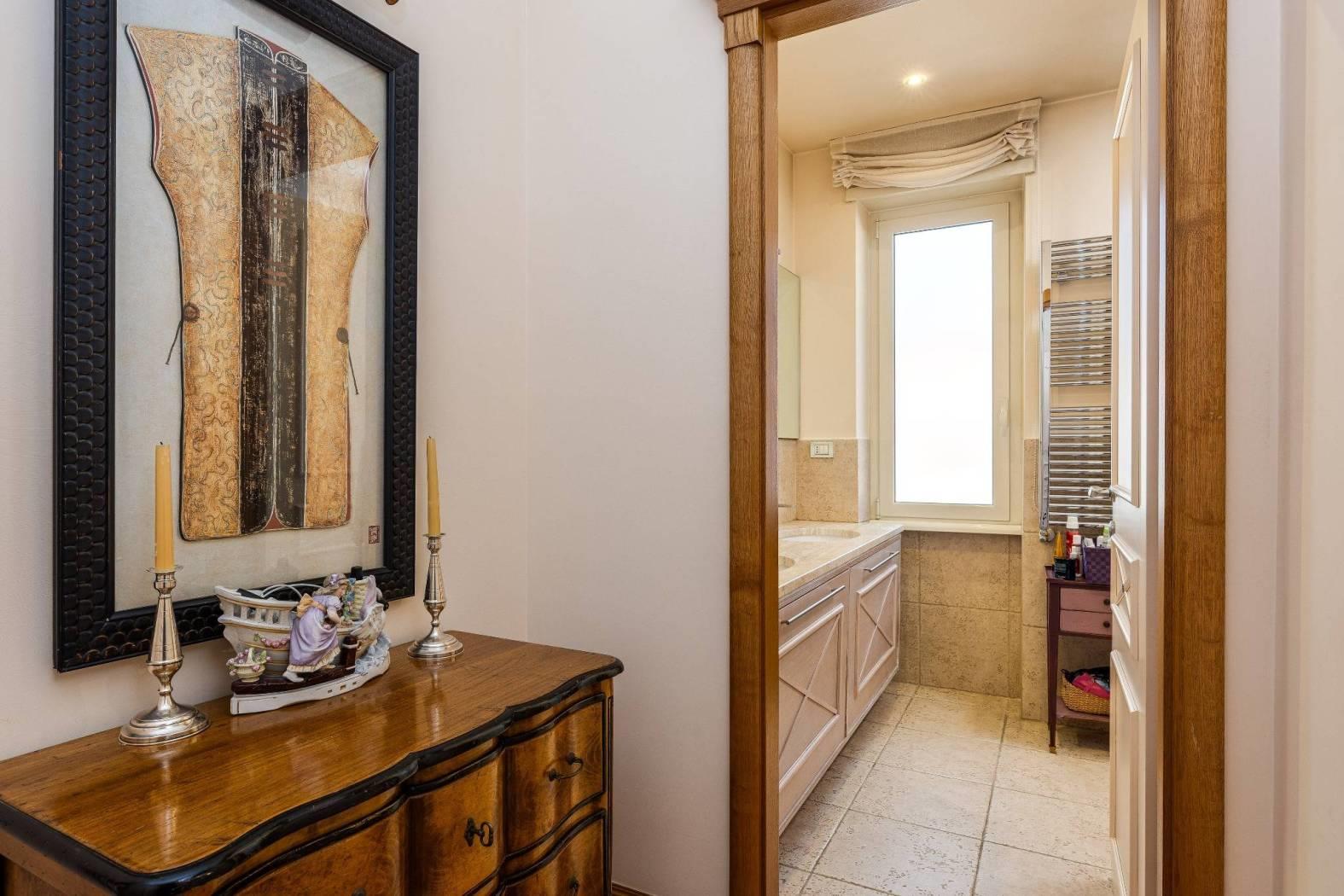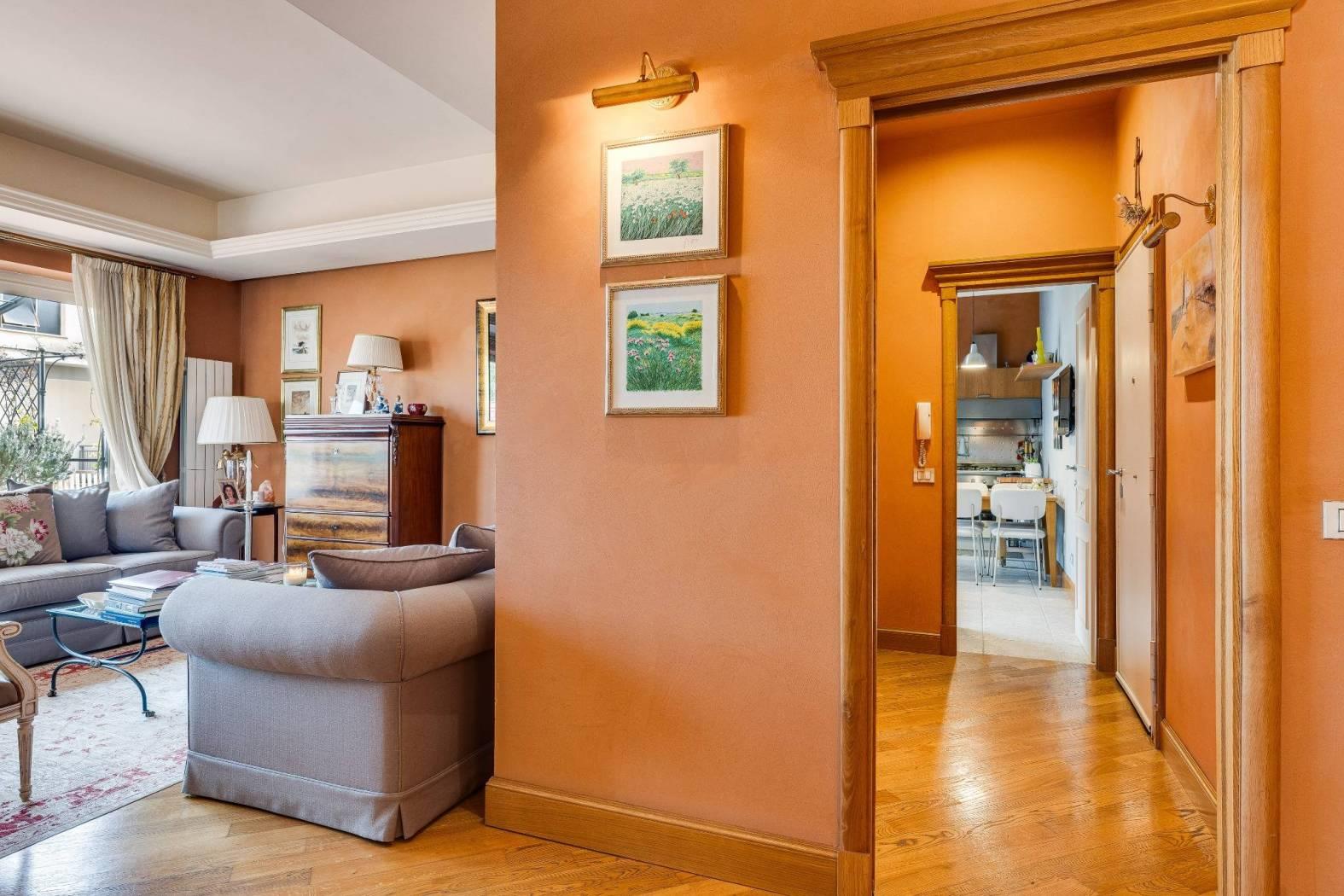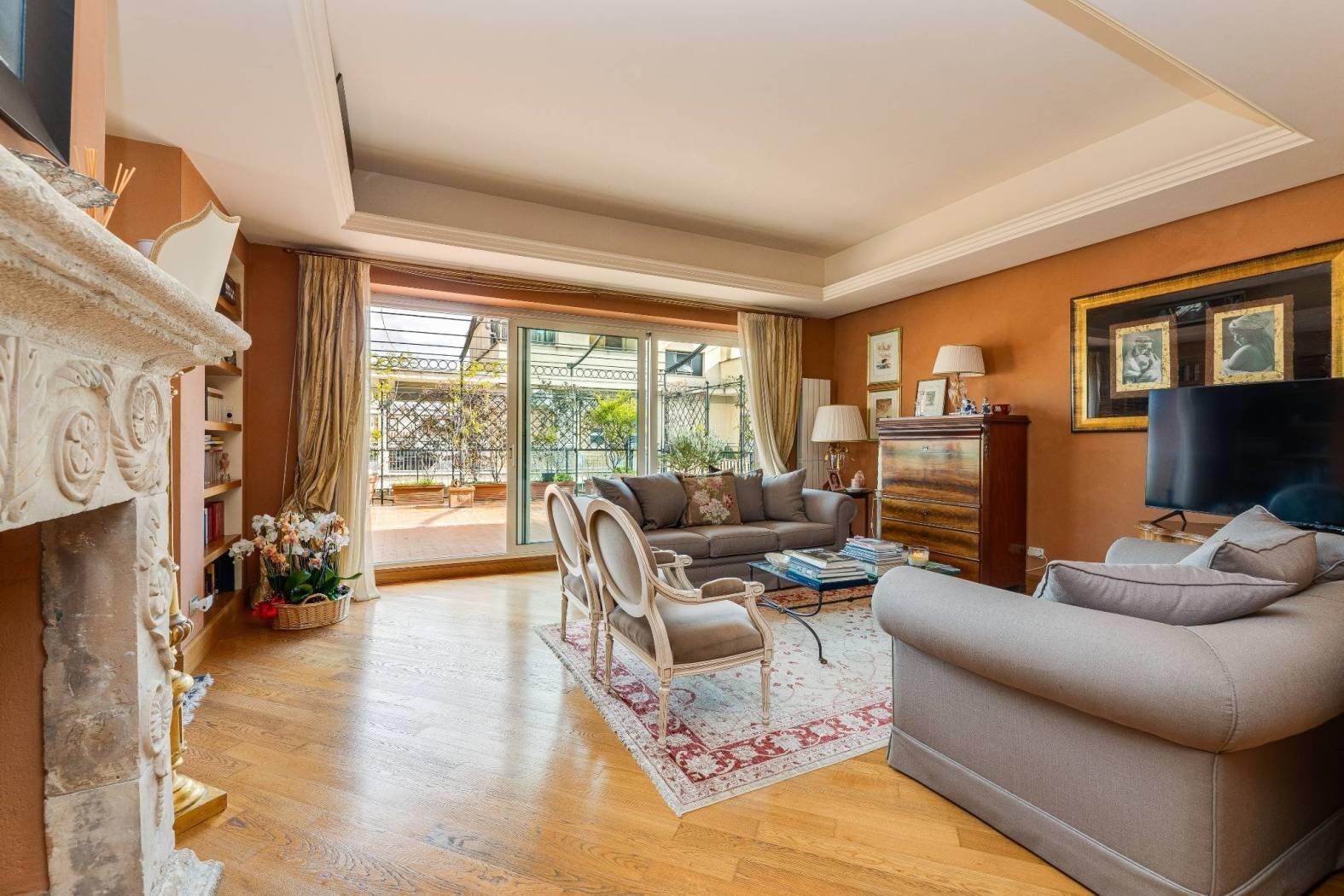 Nel cuore di una delle aree più riservate e ambite del quartiere Aurelio, in Via Enrico Besta, proponiamo in vendita un prestigioso attico e superattico di rappresentanza, inserito in una signorile palazzina in cortina, ai piani quarto e quinto. La proprietà si estende su una superficie di circa 247 mq, offrendo ambienti ampi, eleganti e perfettamente distribuiti, pensati per chi desidera un’abitazione di alto profilo, dove comfort e stile si incontrano. Il quarto piano accoglie con un doppio ingresso che conduce a un importante soggiorno di rappresentanza, impreziosito da un raffinato camino con cornice originale in marmo bianco di Ragusa del ’700, vera opera d’arte che conferisce unicità e carattere all’ambiente. Seguono una luminosa sala da pranzo, due camere da letto, due bagni, una grande cucina abitabile con zona lavanderia e balcone, oltre a un comodo ripostiglio. Dal soggiorno si accede a uno splendido terrazzo vivibile, elegantemente attrezzato con tende parasole, ideale per ricevimenti, cene all’aperto e momenti di assoluto relax. Le camere da letto godono entrambe di accesso agli spazi esterni. Il quinto piano, collegato da una comoda scala interna, ospita un’ampia zona disimpegno con area studio, due ulteriori camere da letto, due bagni di cui uno en suite con vasca idromassaggio – un locale tecnico, un grande ripostiglio e un balcone riservato. Grazie alla distribuzione degli spazi, il piano superiore si presta anche a un eventuale frazionamento rispetto al resto della proprietà, rappresentando una soluzione ideale per chi desideri creare un’unità indipendente, uno spazio per ospiti o uno studio professionale. L’immobile è rifinito con materiali di altissimo livello: parquet in tutti gli ambienti, armadi realizzati su misura, infissi di nuova generazione, serrande elettriche e zanzariere. Il comfort è garantito da riscaldamento autonomo e aria condizionata. La tripla esposizione e gli ampi terrazzi, che abbracciano l’abitazione, regalano una straordinaria luminosità naturale, valorizzando ogni ambiente e creando una continuità perfetta tra interno ed esterno; i terrazzi saranno inoltre oggetto di completa ristrutturazione a cura e spese della proprietà. La posizione, in una via privata e silenziosa, rappresenta un perfetto equilibrio tra riservatezza e comodità: a pochi passi si trovano collegamenti, fermate metro e tutti i principali servizi. La vicinanza con strutture di eccellenza come il Policlinico Gemelli e l’IDI rende questa soluzione ideale anche per professionisti e dirigenti. Una residenza esclusiva, pensata per chi ricerca spazio, eleganza e qualità assoluta, in uno dei contesti più apprezzati della zona. Per info contattare il numero 06.32.65.06.95 / 331.77.90.963.