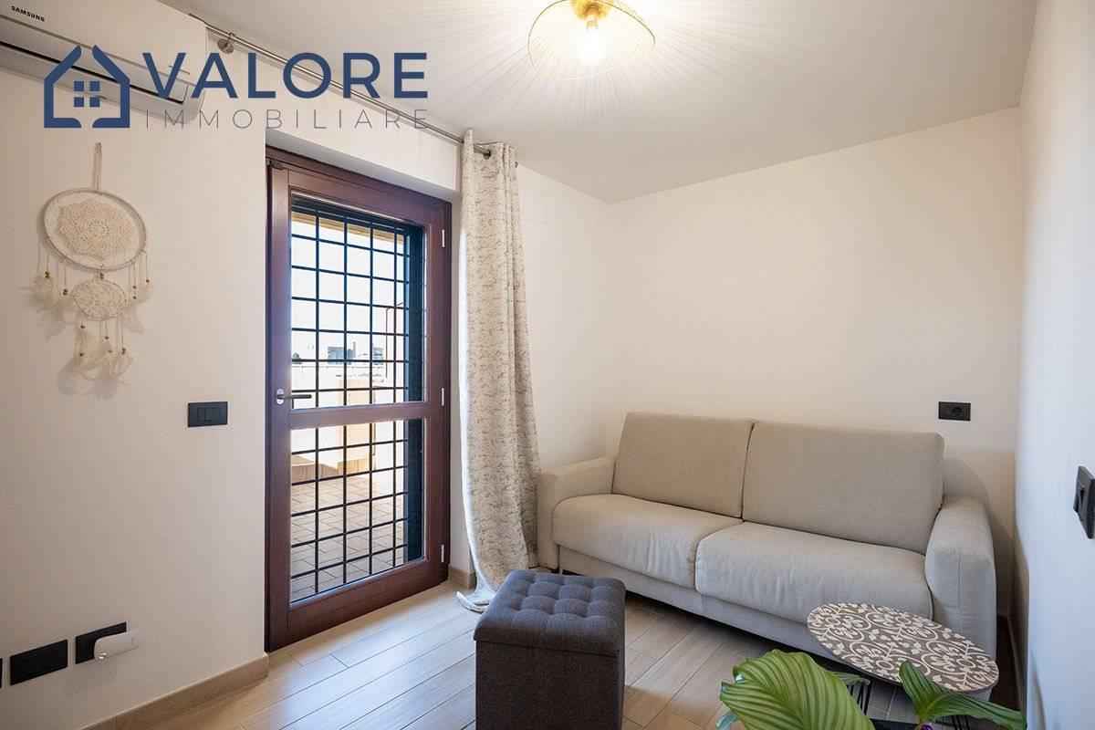 L'immobile è così composto: Piano attico: soggiorno con cucina a vista, disimpegno, camera matrimoniale, bagno finestrato e terrazzo.