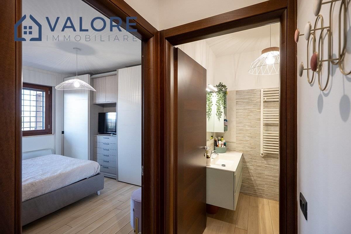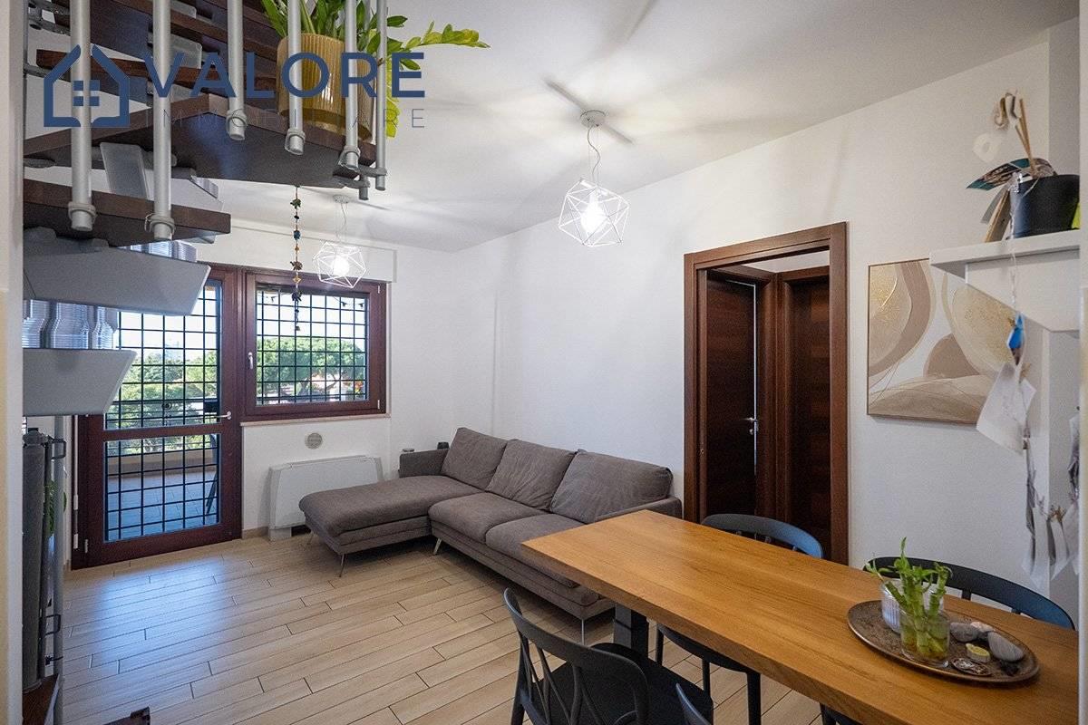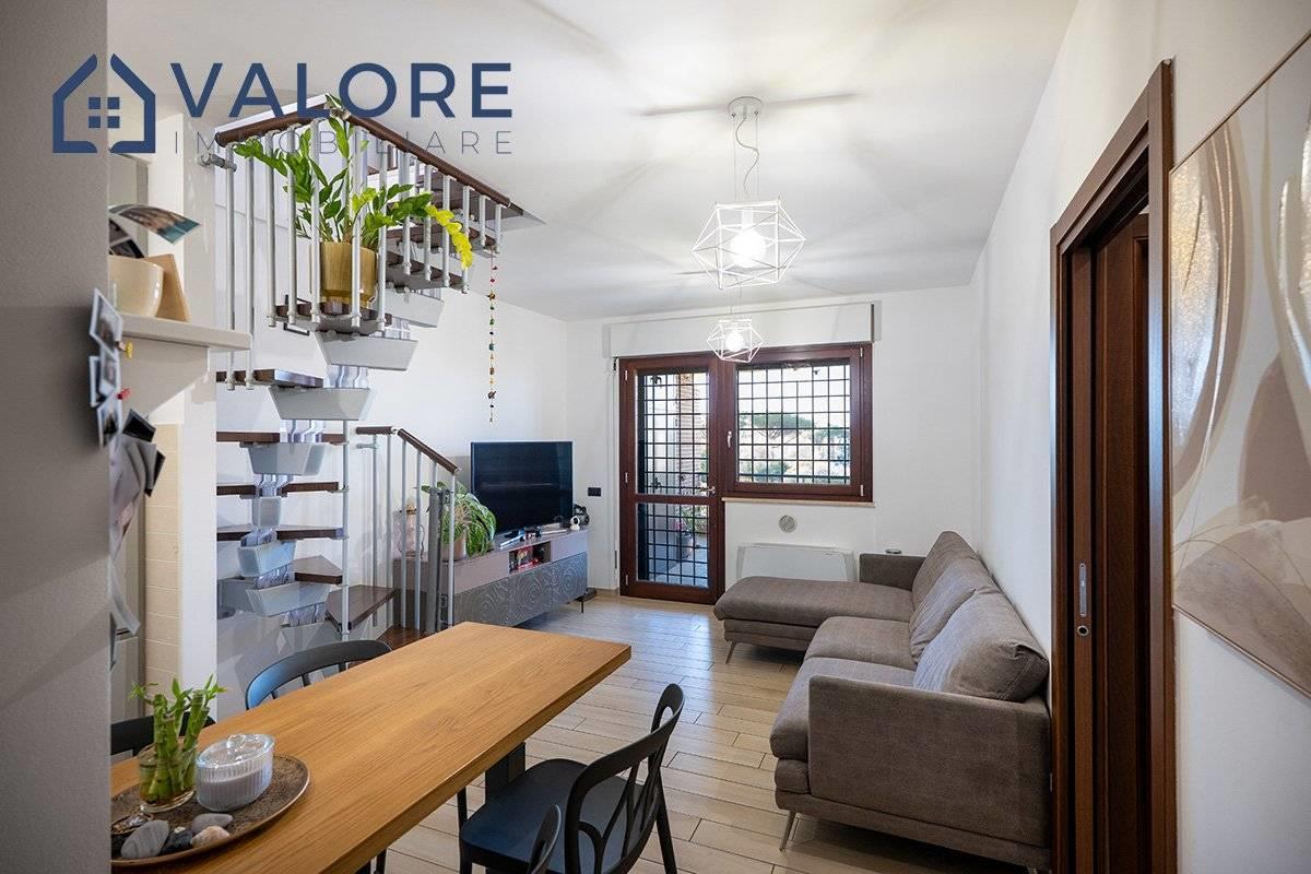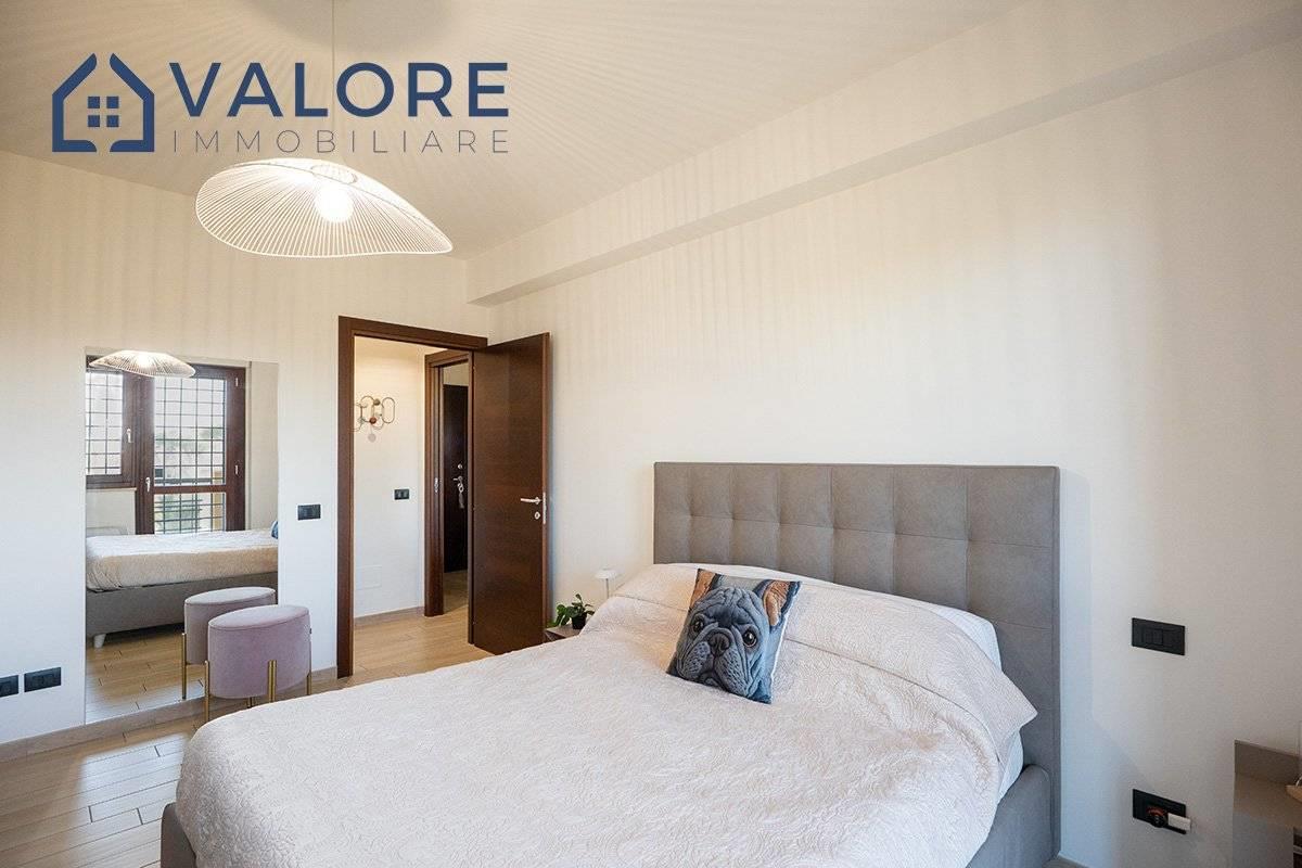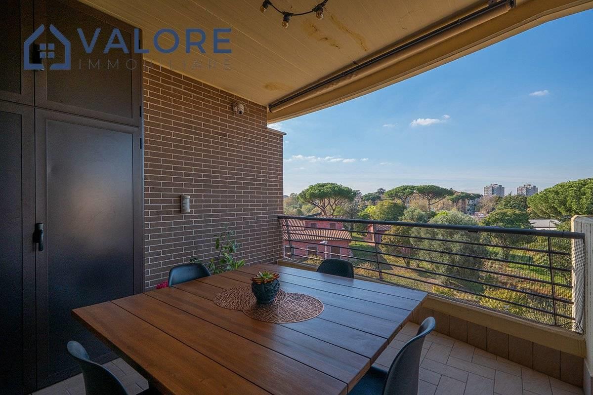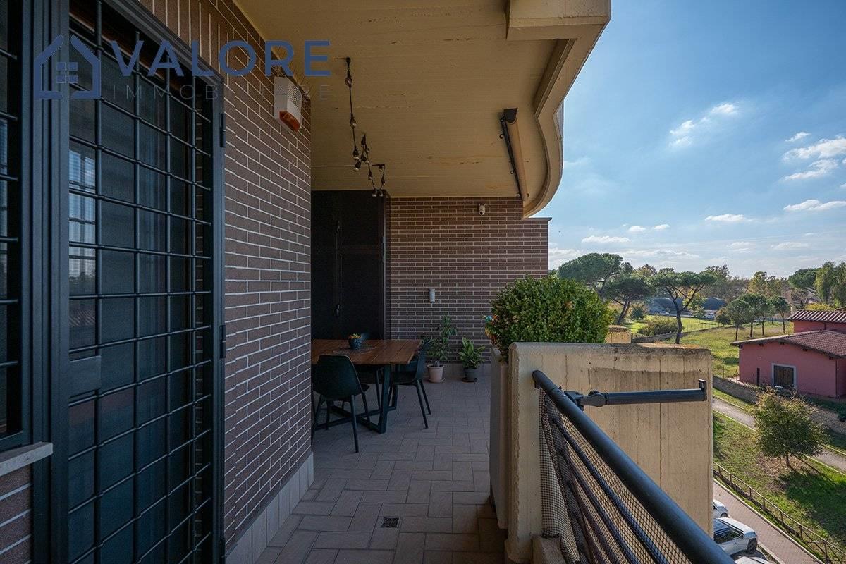 Roma - Bufalotta - Giardino di Faonte - via Passo del Turchino - All'interno dell'esclusivo comprensorio di recente costruzione denominato "Giardino di Faonte", circondato da aree verdi e da curatissimi giardini condominiali, proponiamo la vendita di un rifinito attico e superattico disposto al quarto e quinto piano di una palazzina in cortina dotata di ascensore.
